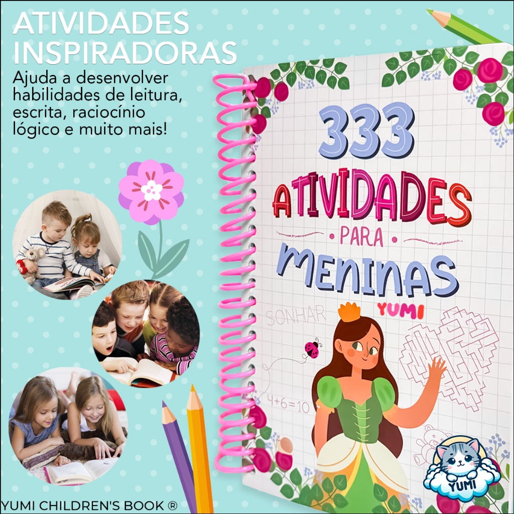 Livro Infantil 333 Atividades Para Meninas Livro Educativo, Atividades E Desafios Livro Rosa
