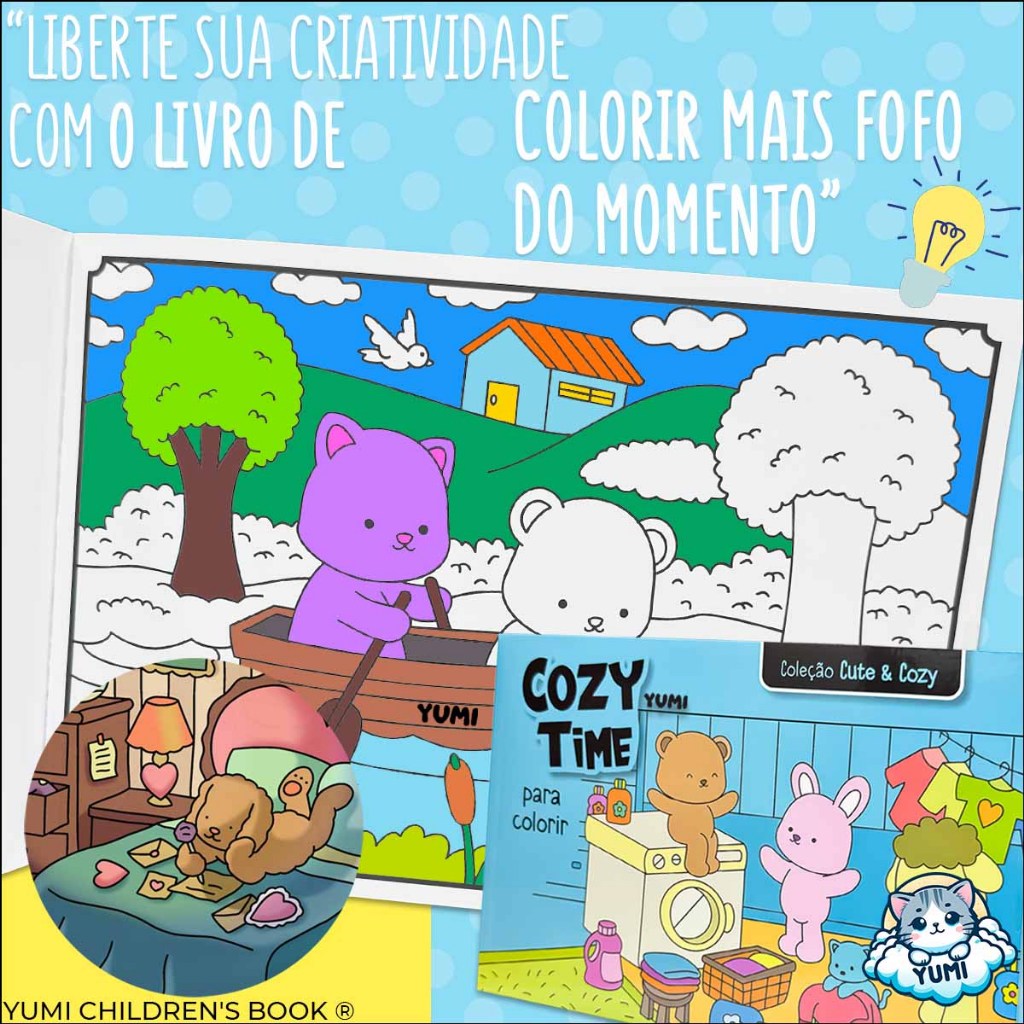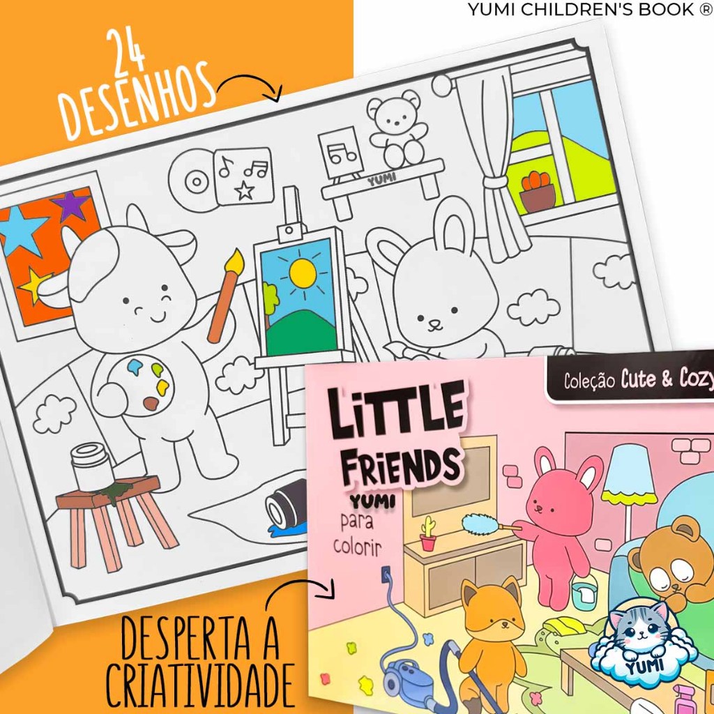 Livros de Colorir Cozy Time Little Friends 180G Desenhos Fofos Para Crianças E Adultos