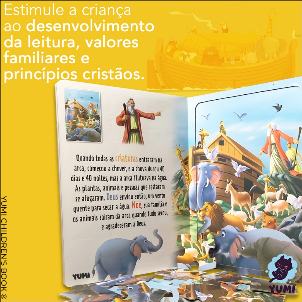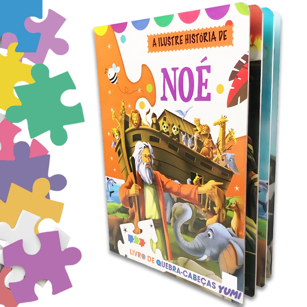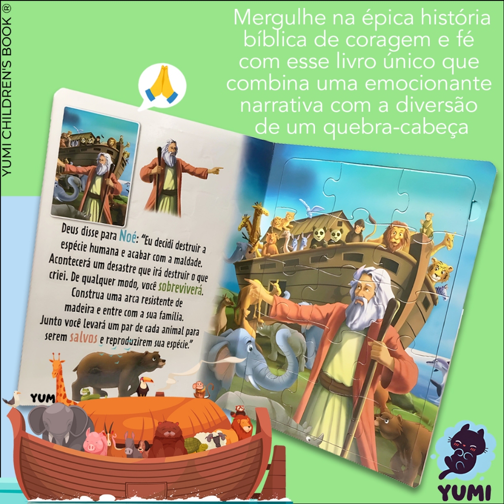 Livro Infantil Aventuras Bíblicas em Quebra-Cabeça: A Arca de Noé | Ensinamentos Bíblia Leia e Divirta-se 3 a 12 anos