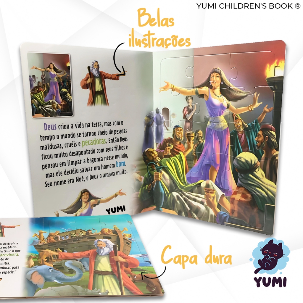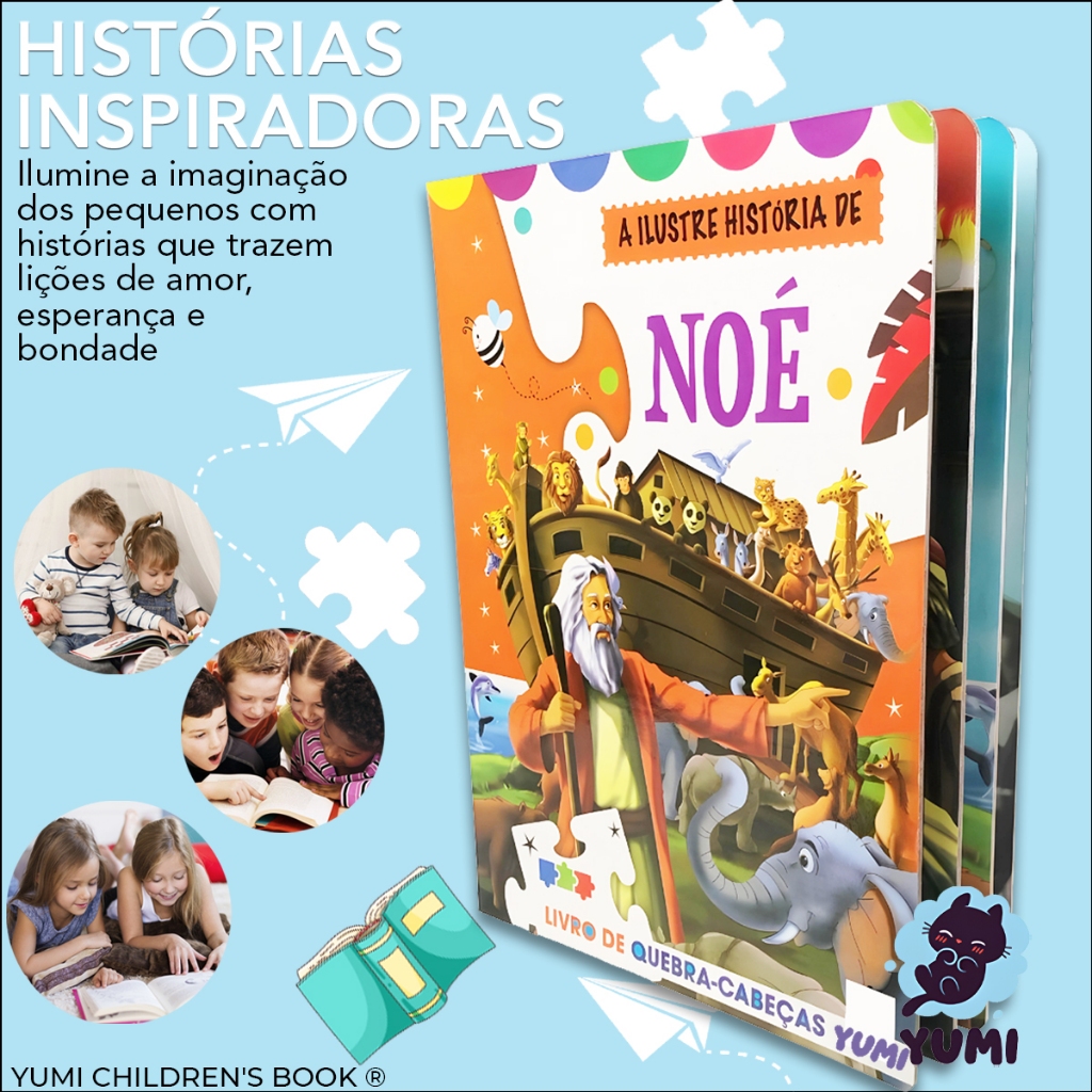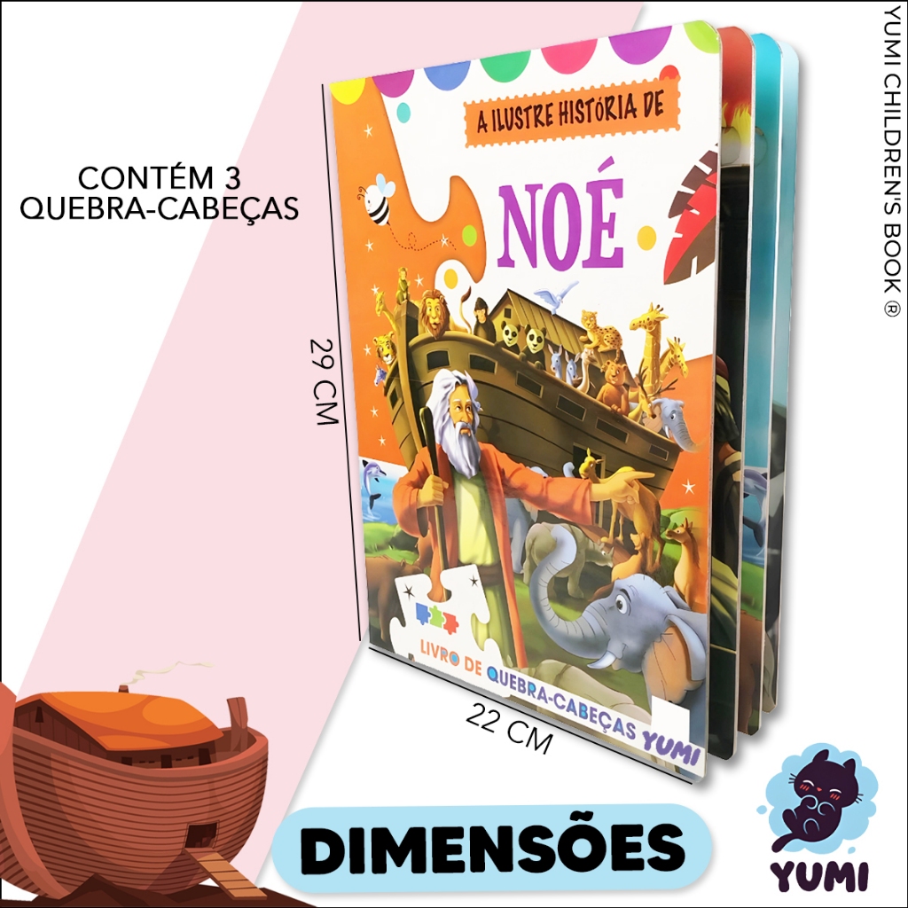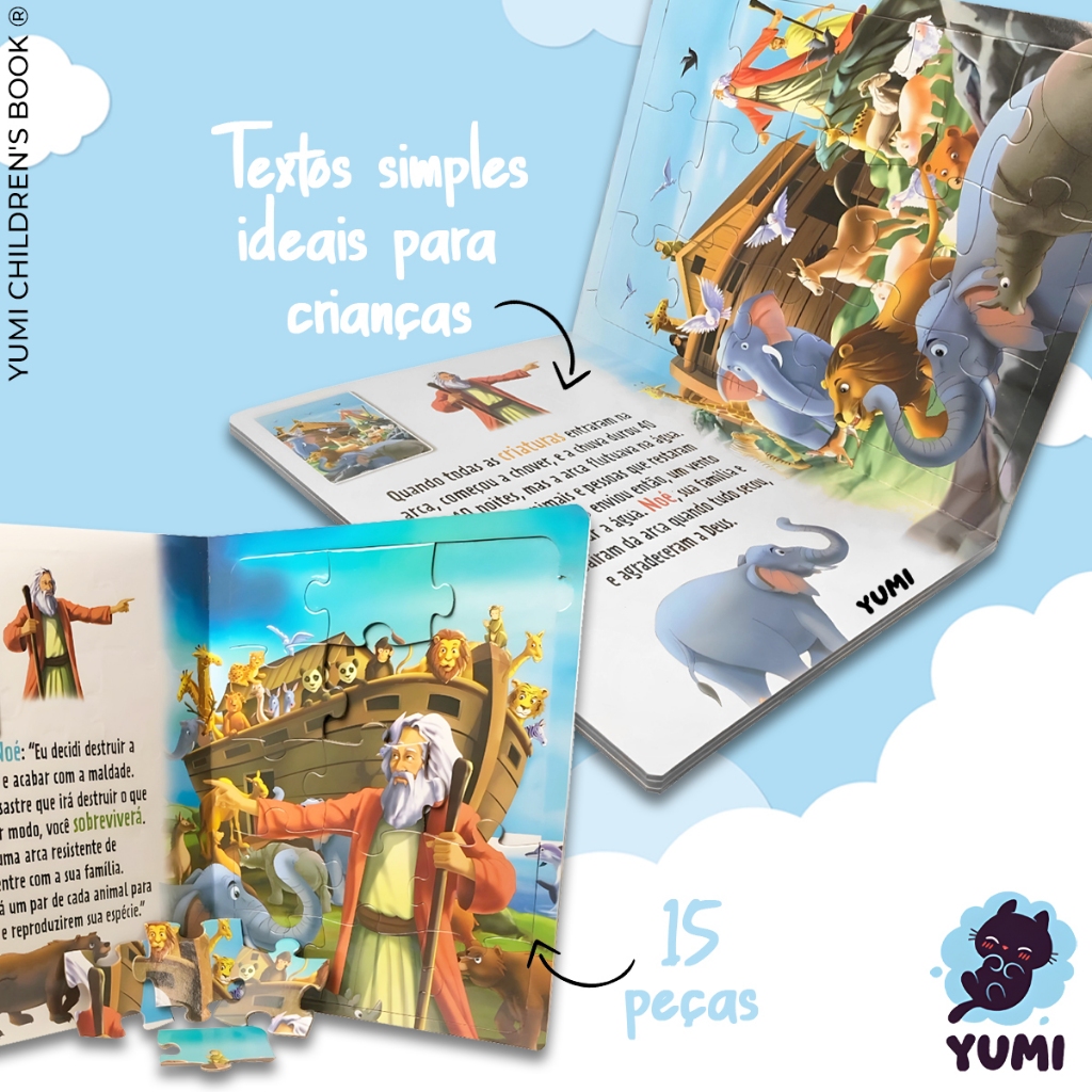 Livro Infantil Aventuras Bíblicas em Quebra-Cabeça: A Arca de Noé | Ensinamentos Bíblia Leia e Divirta-se 3 a 12 anos