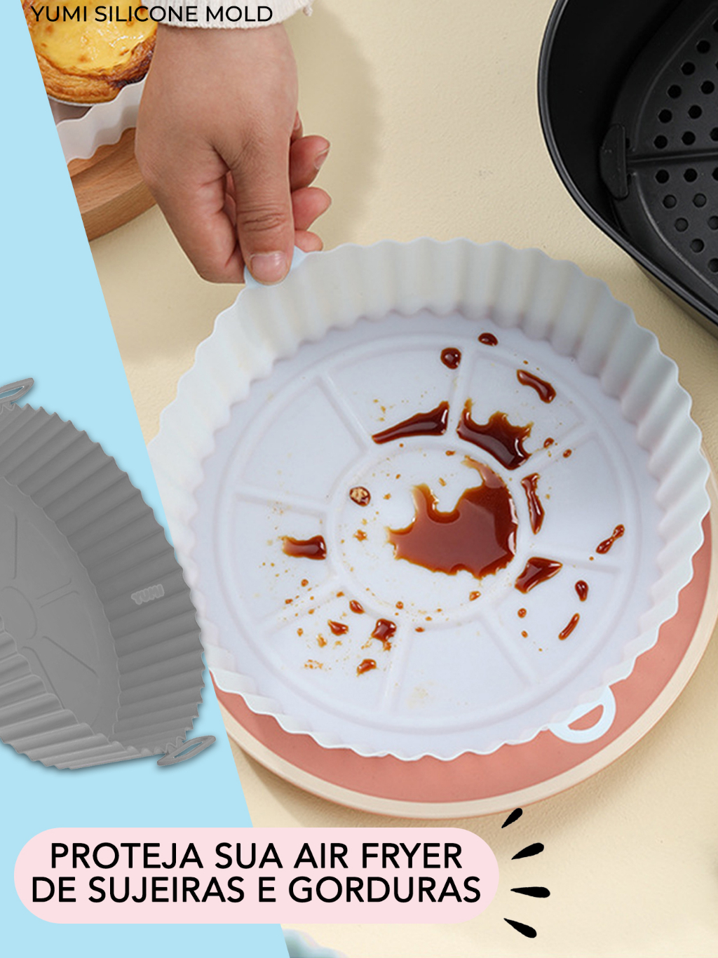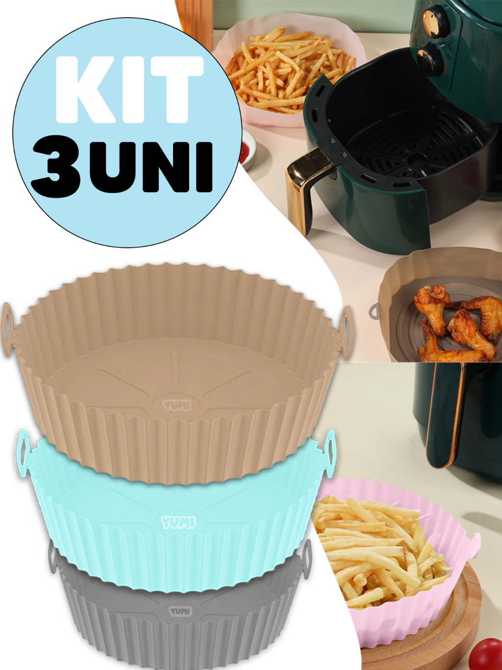 Kit 3 Cesto de Silicone Redondo Air Fryer e Forno Forma para Fritadeira Elétrica com Alça Grossa 80g + Resistente + Durável