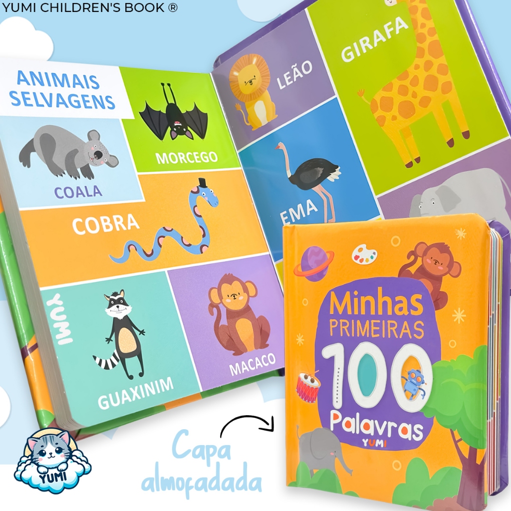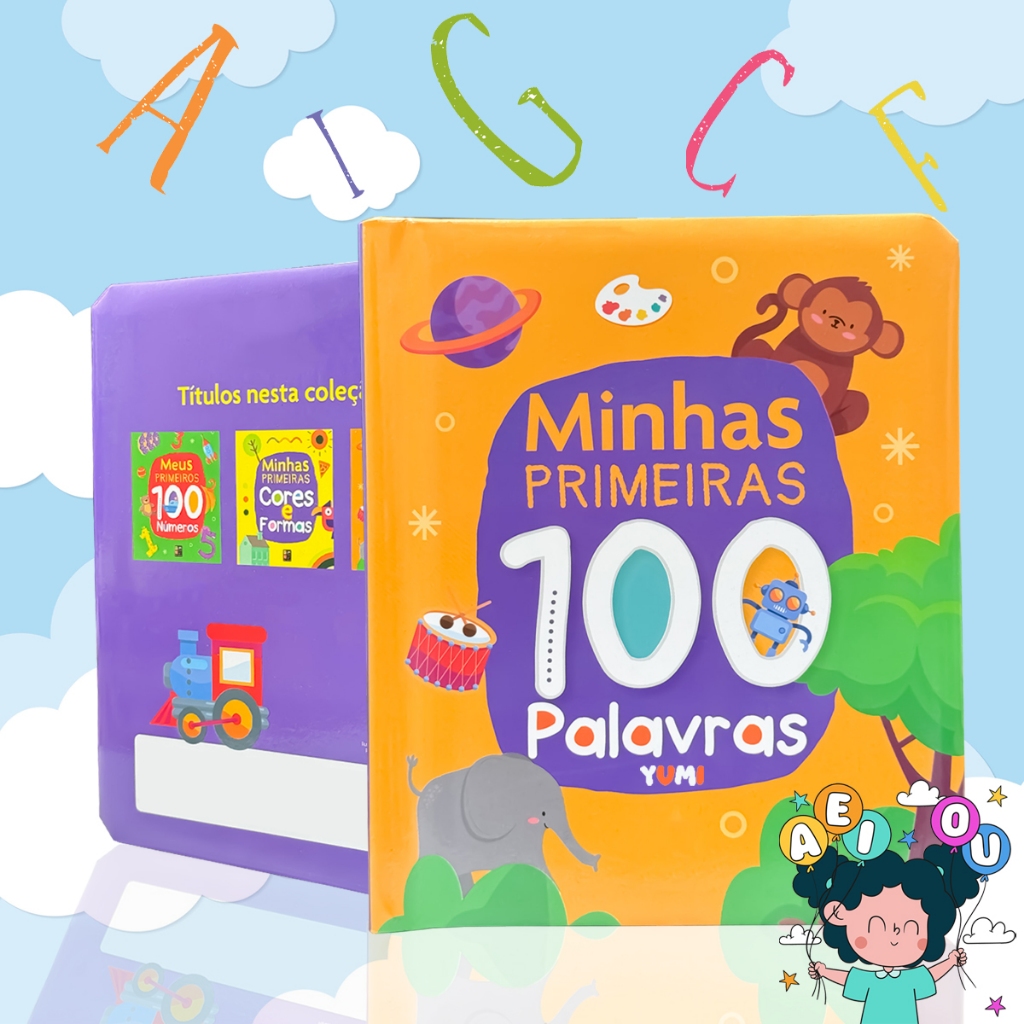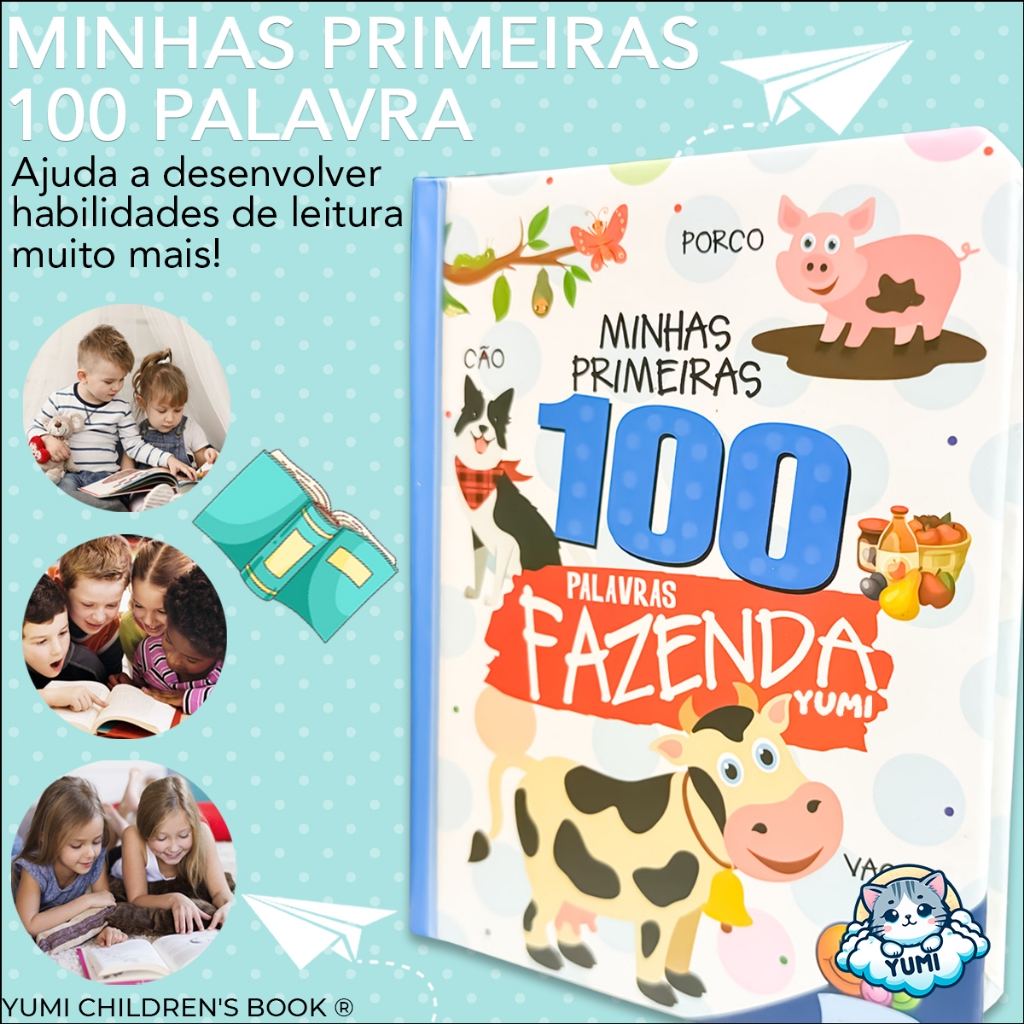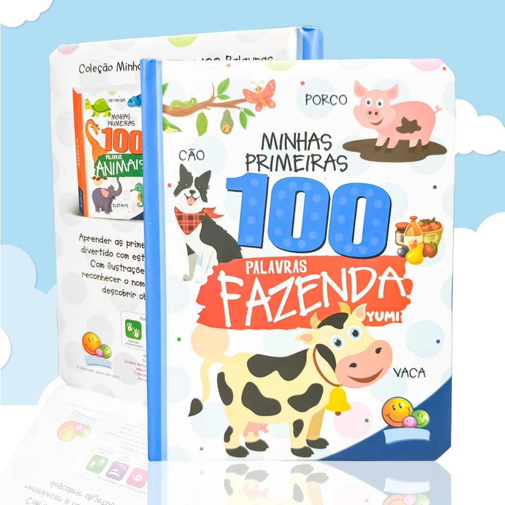 Coleção Livro Infantil Bebê Minhas Primeiras 100 Palavras Números Fazenda Animais Capa Dura Premium