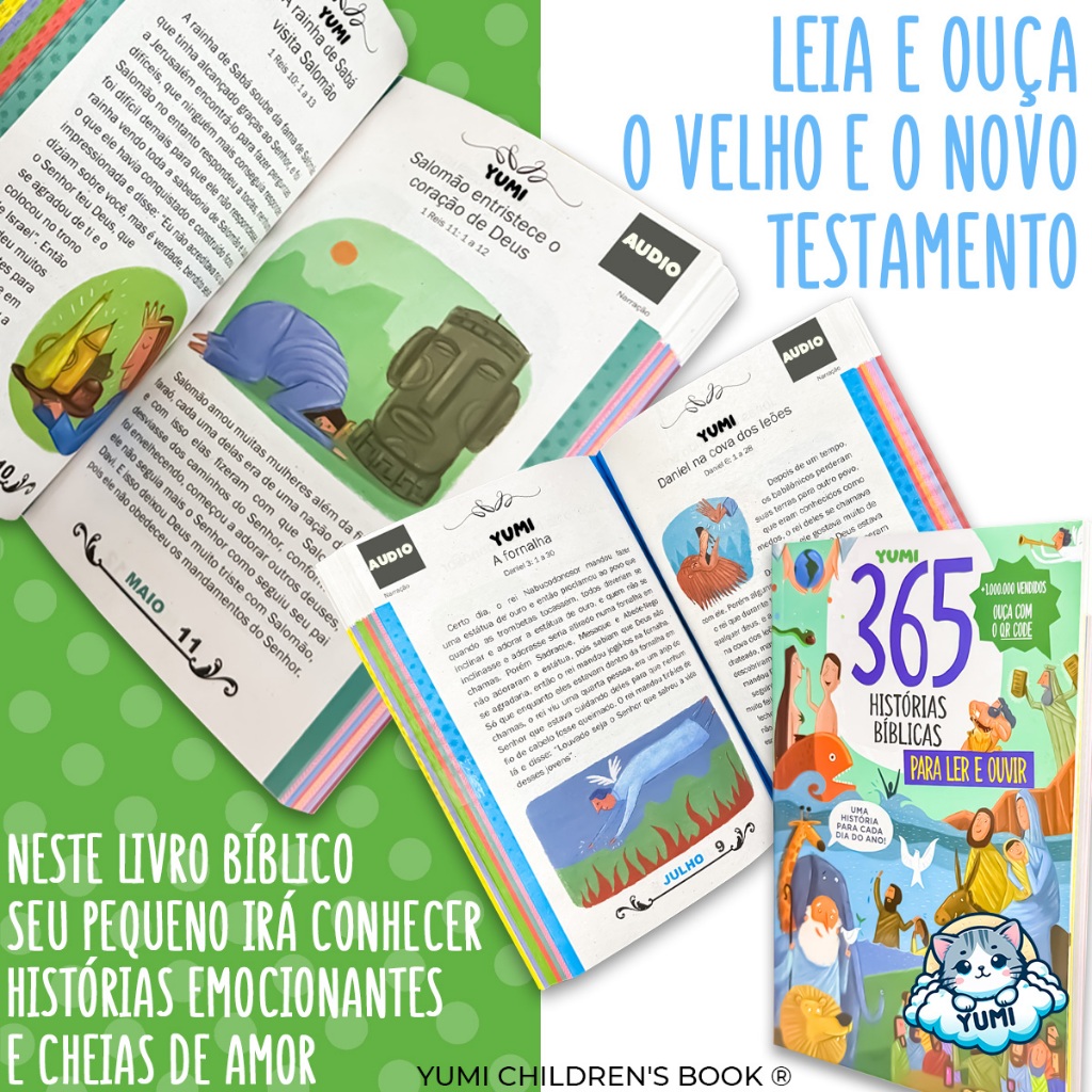 Livro Infantil 365 Histórias Bíblicas Para Ler E Ouvir Áudio - Com Qr Code E Lindas Ilustrações