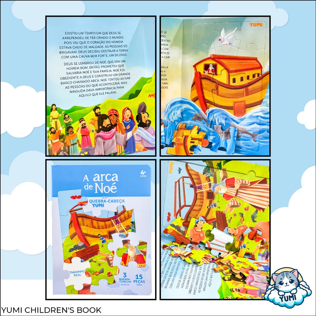 Livro Infantil A Arca De Noé Em Quebra-cabeça | Bíblia Infantil Leia E Divirta-se 4 A 12 Anos 45 Peças