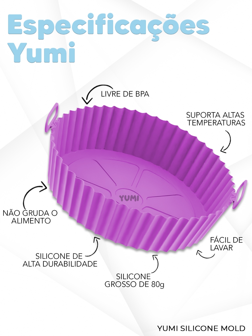 6 Peças/Conjunto Forma Cesto Assadeira Redonda Silicone Air Fryer Fritadeira Alça Yumi Garantia 1 Ano Vários Tamanhos