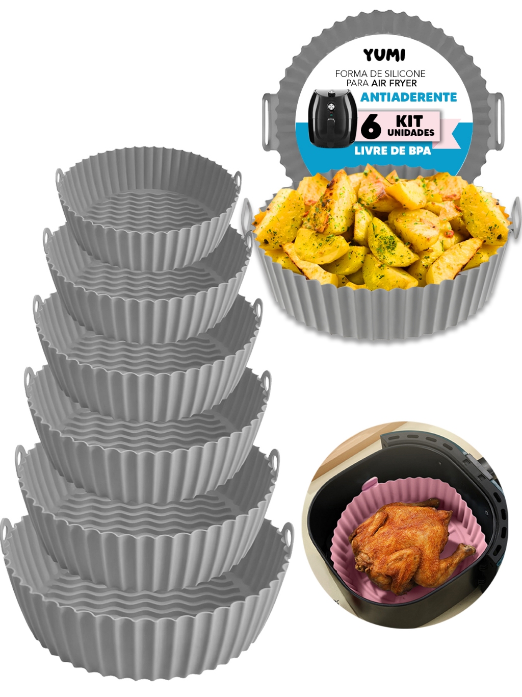 Forma Assadeira Para Fritadeira Air Fryer Em Silicone 6 Peças/Conjunto Flexível Lavável Grossa + Resistente + Duravel