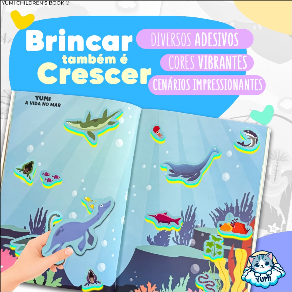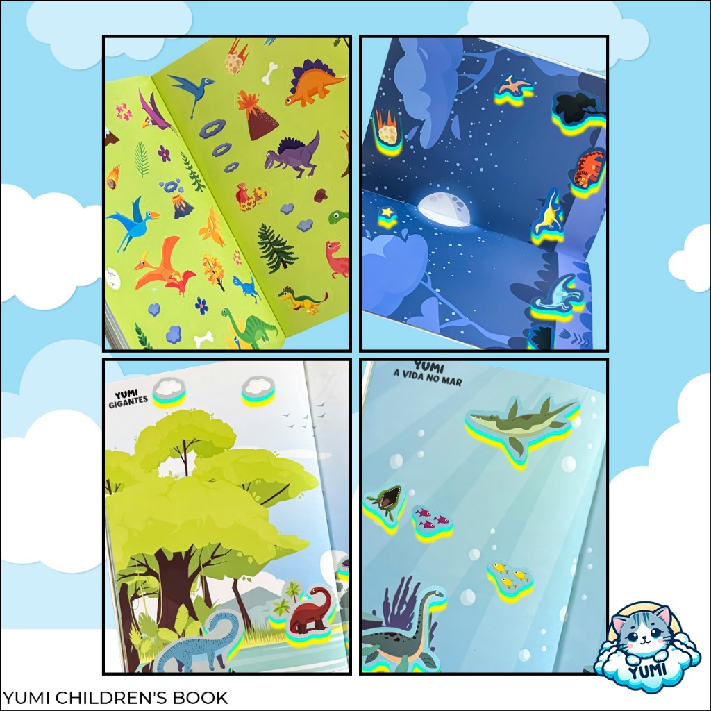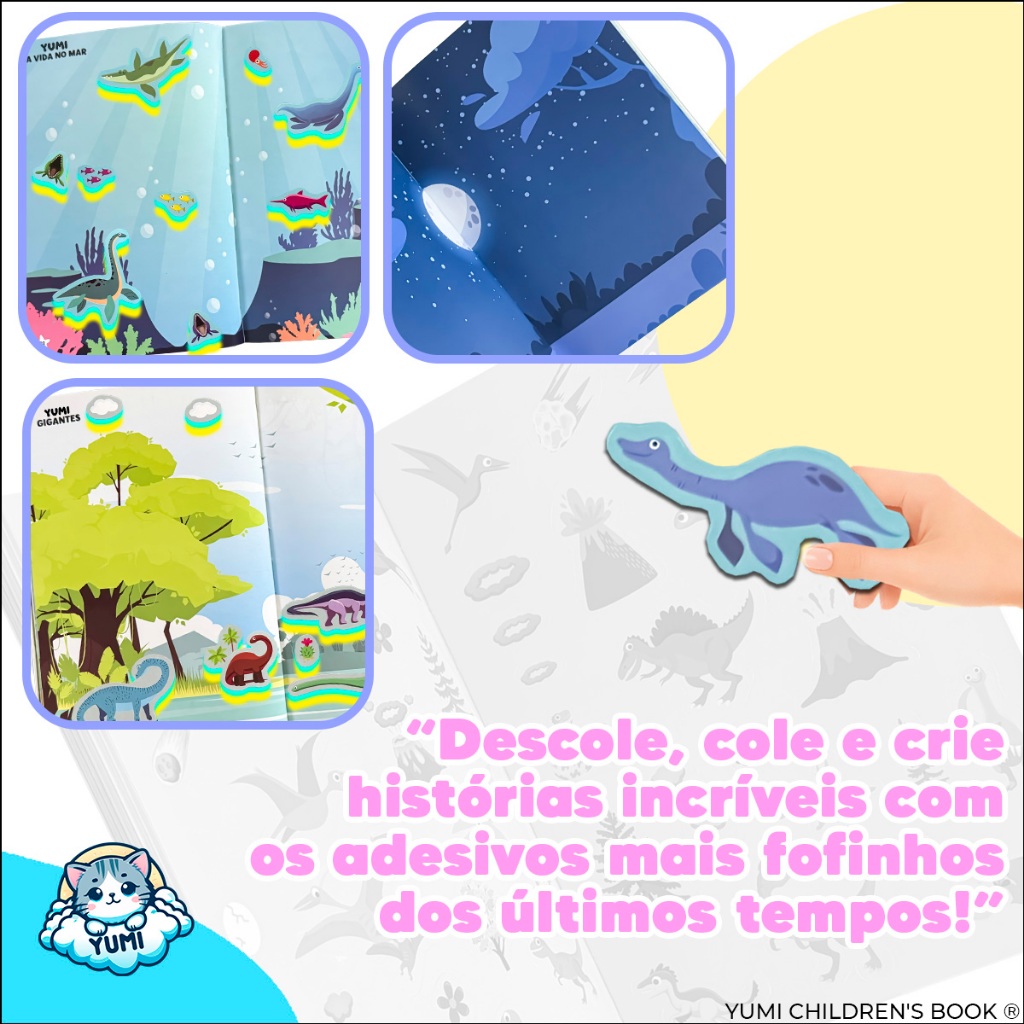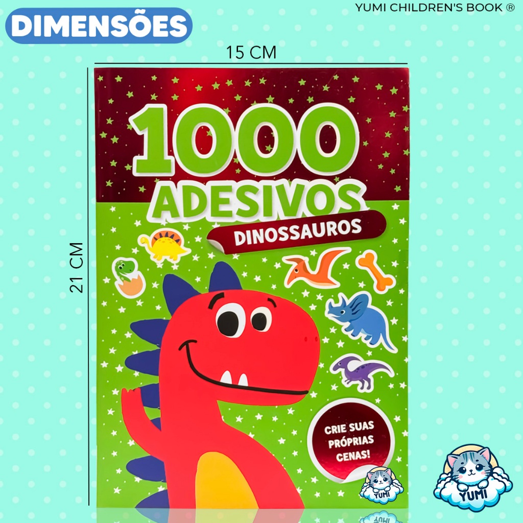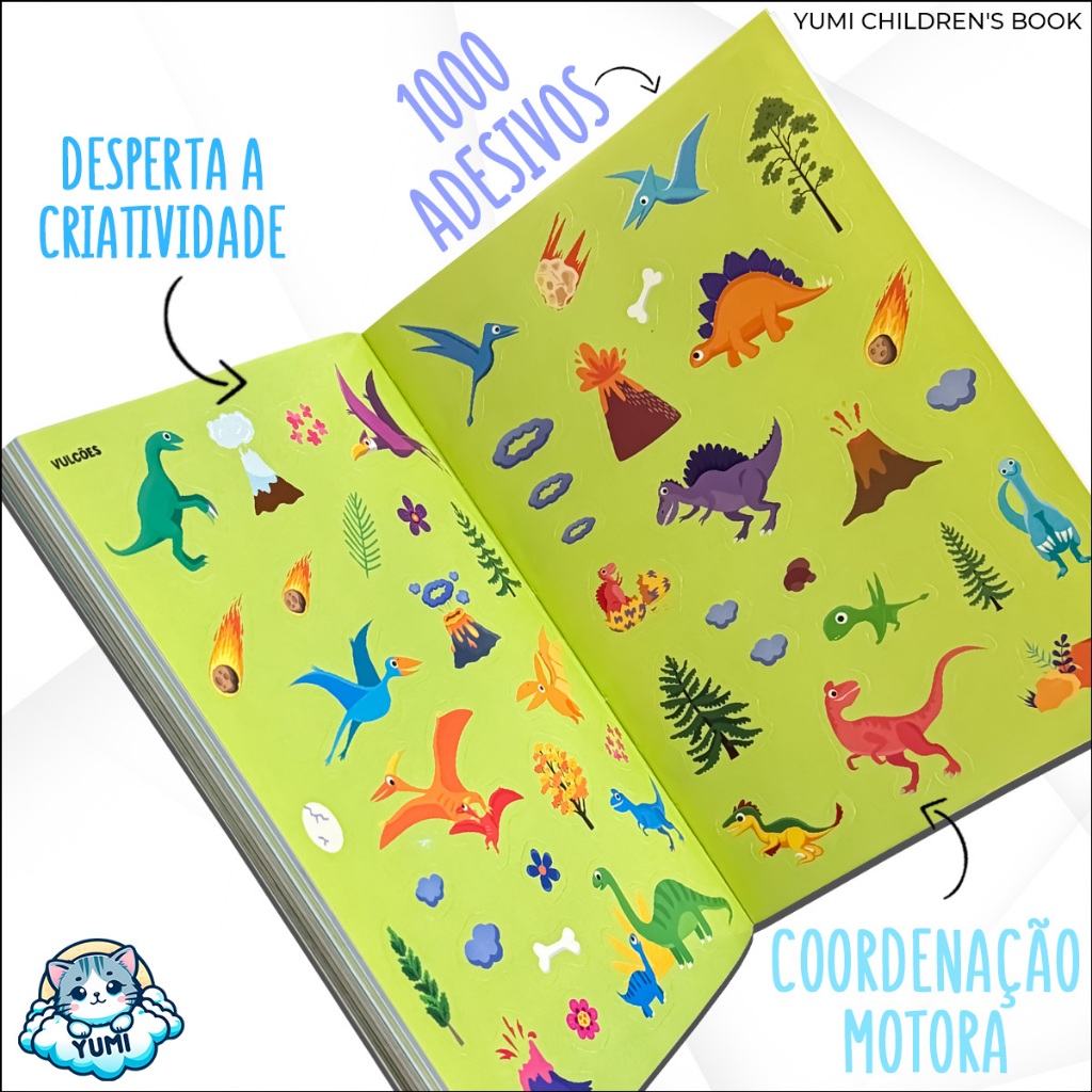 Livro Caderno Adesivos 3d 44 Cenários para Montar e Decorar 1000 Adesivos Fofinhos Dinossauros