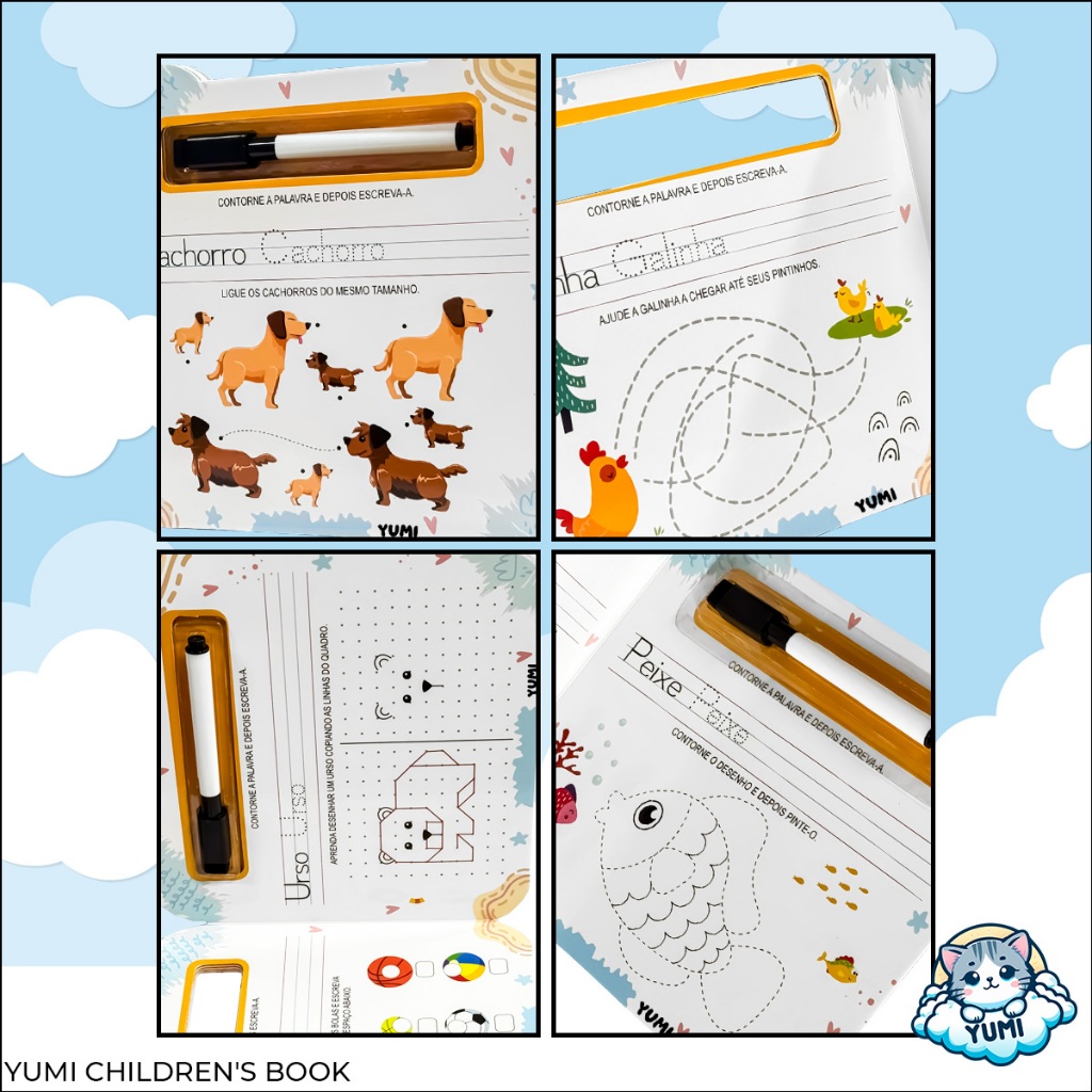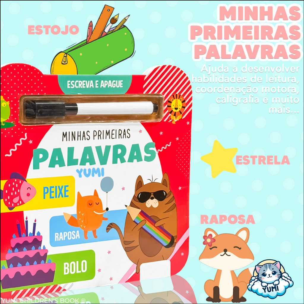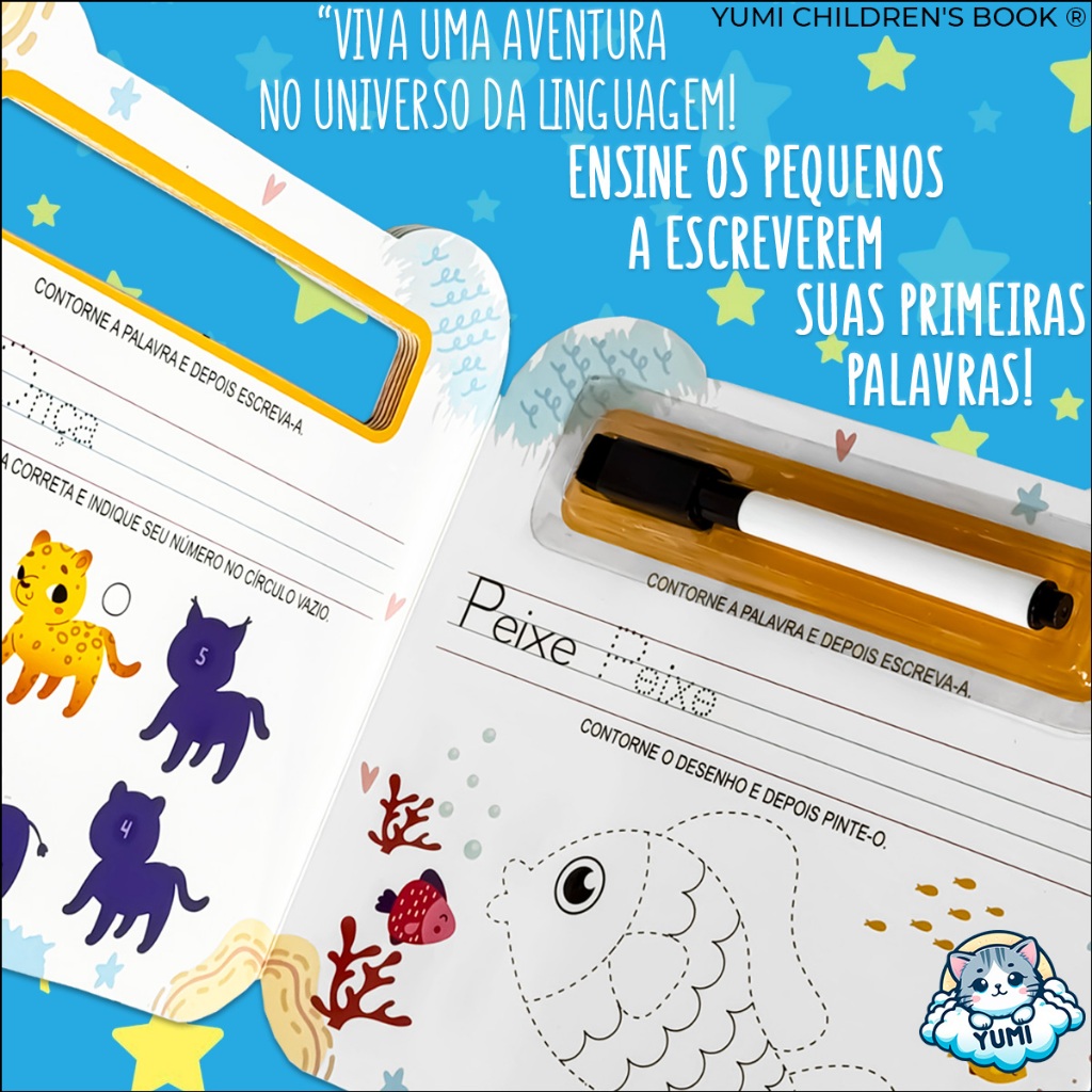 Livro Infantil Primeiras Palavras - Caderno de Caligrafia Infantil Caneta Magica Apagável | Livro Escolar Educativo