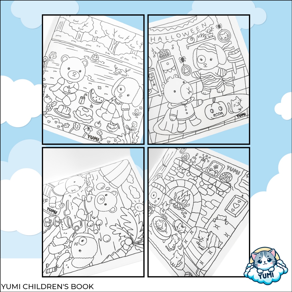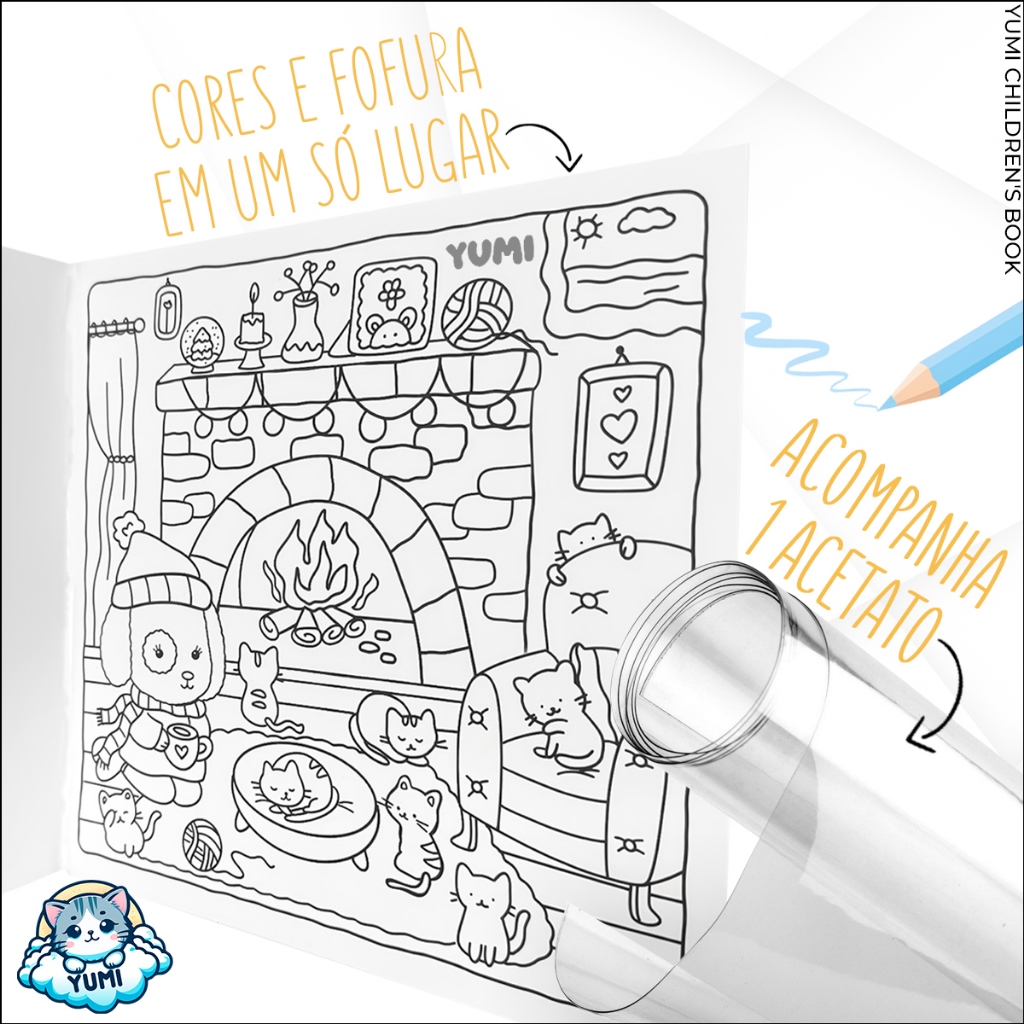 Kit Livro De Colorir Comfy Goods Cute Home Dia Noite + 36 Canetinhas Touch Ponta Dupla Para Colorir