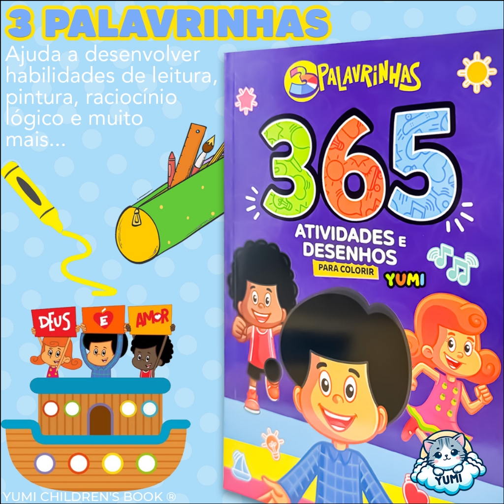 Livro Infantil 365 Atividades E Desenhos 3 Palavrinhas Caderno De Desenhos Colorir Pintura Oficial