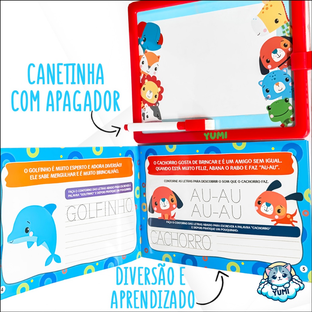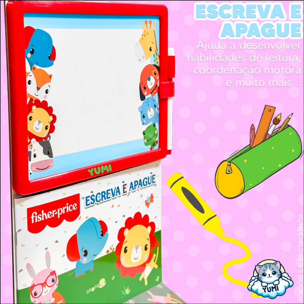 Livro de Caligrafia Apagável Fisher-Price - Alfabetização Com Caneta Mágica e Lousa Infantil Educativo