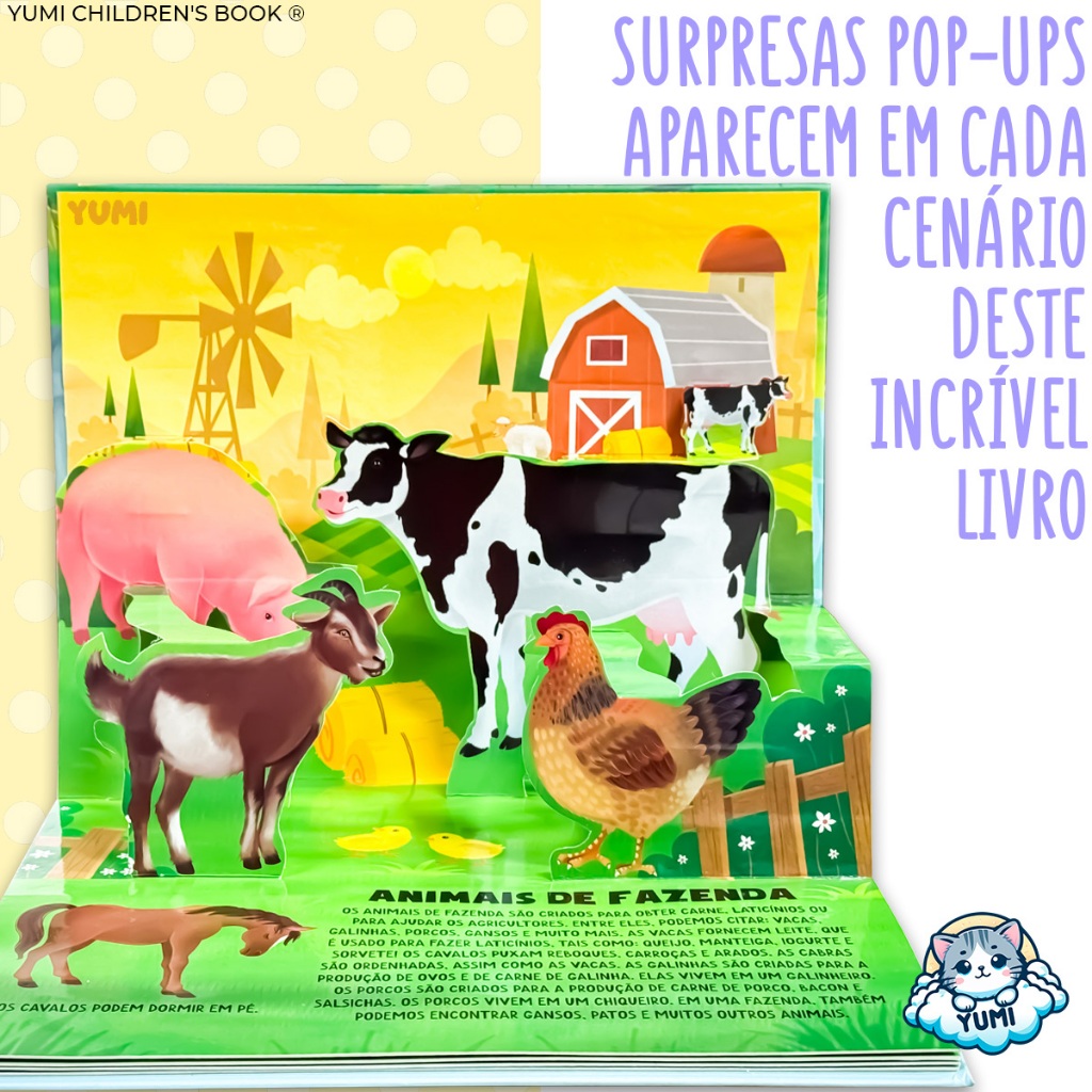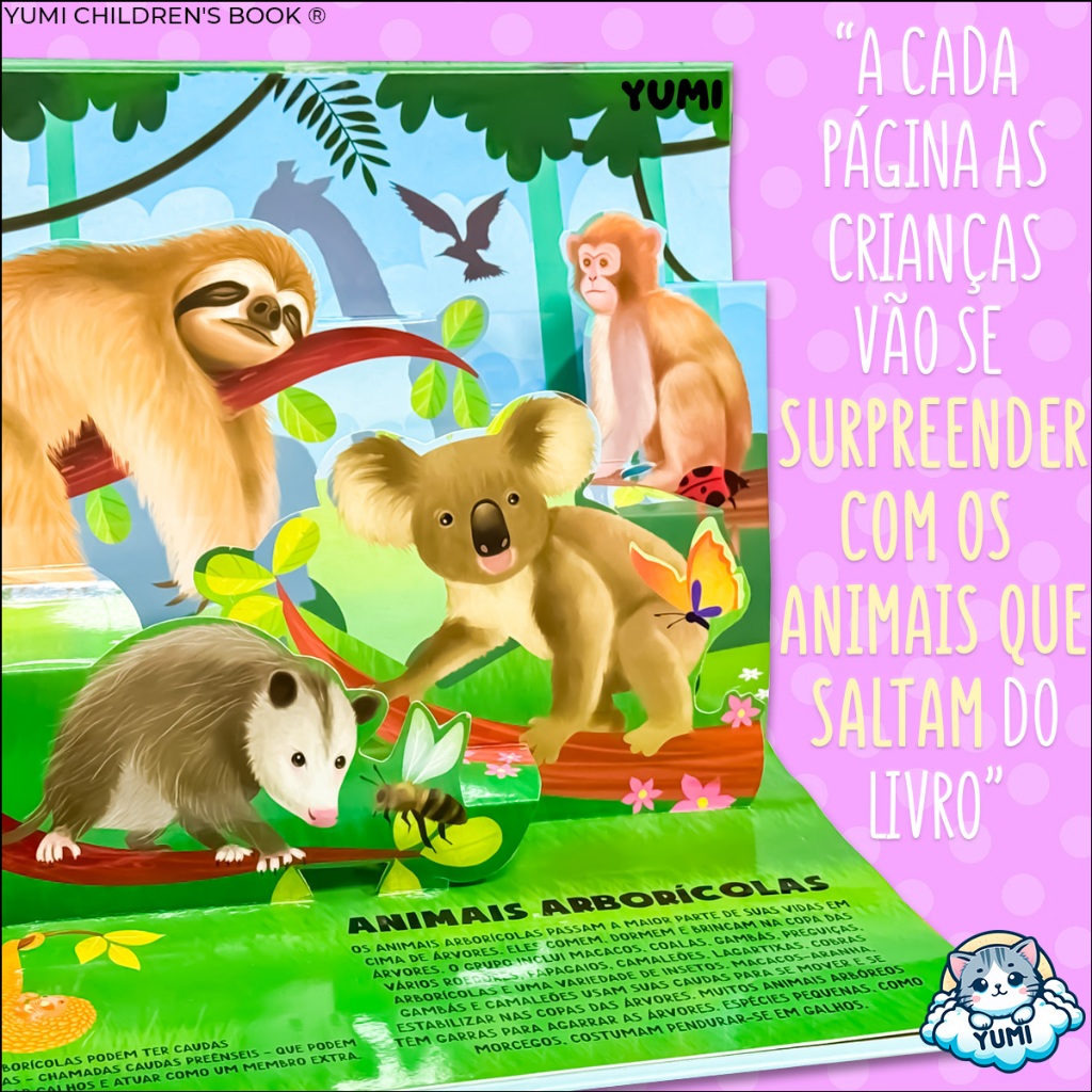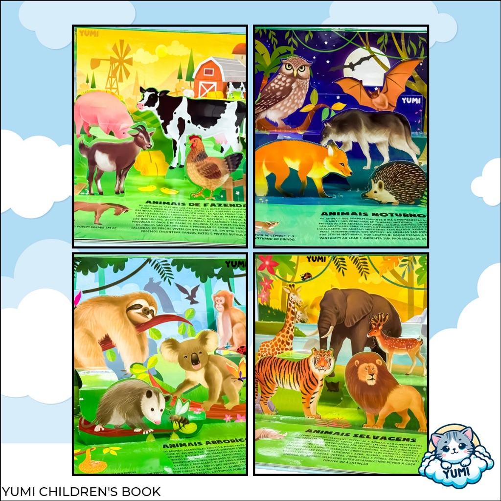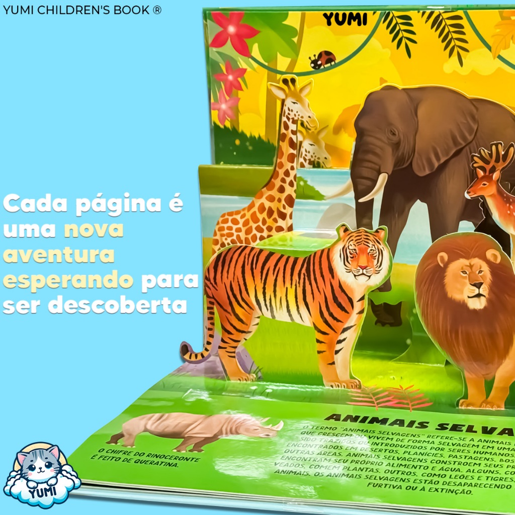 Livro Infantil Pop-up De Animais Em 3d | Animais Interativos | Capa Dura Livro Educativo Colecionável