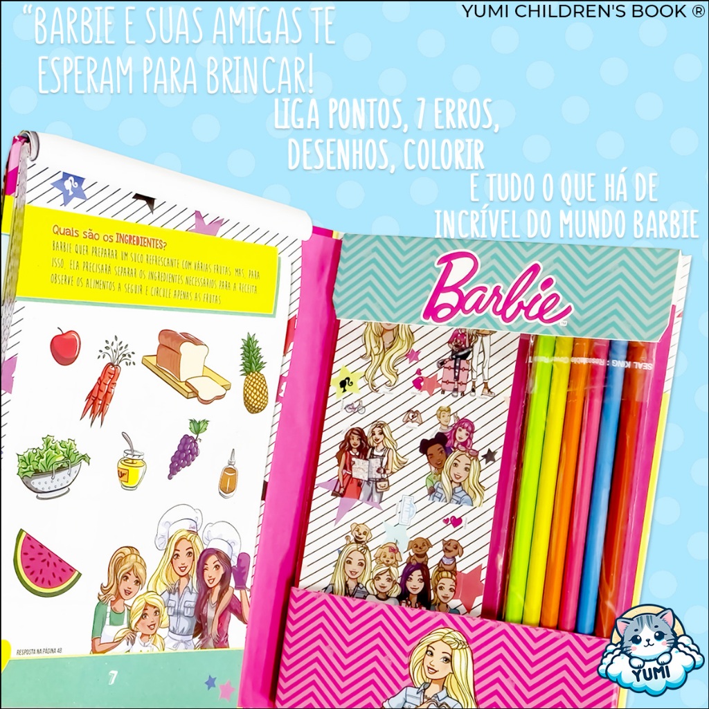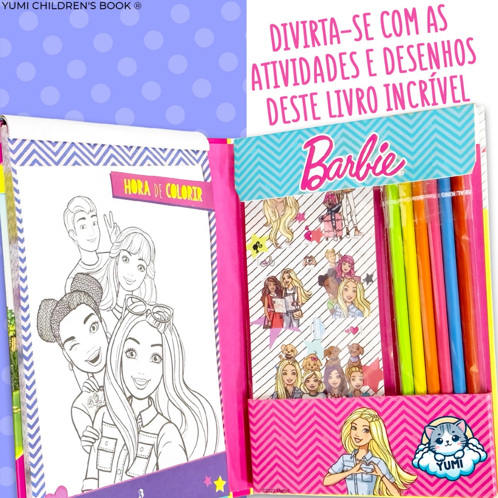 Kit Livro Infantil Desenhos Para Meninas Barbie Desenhos Para Colorir + Lápis de Cor e Adesivos Oficial