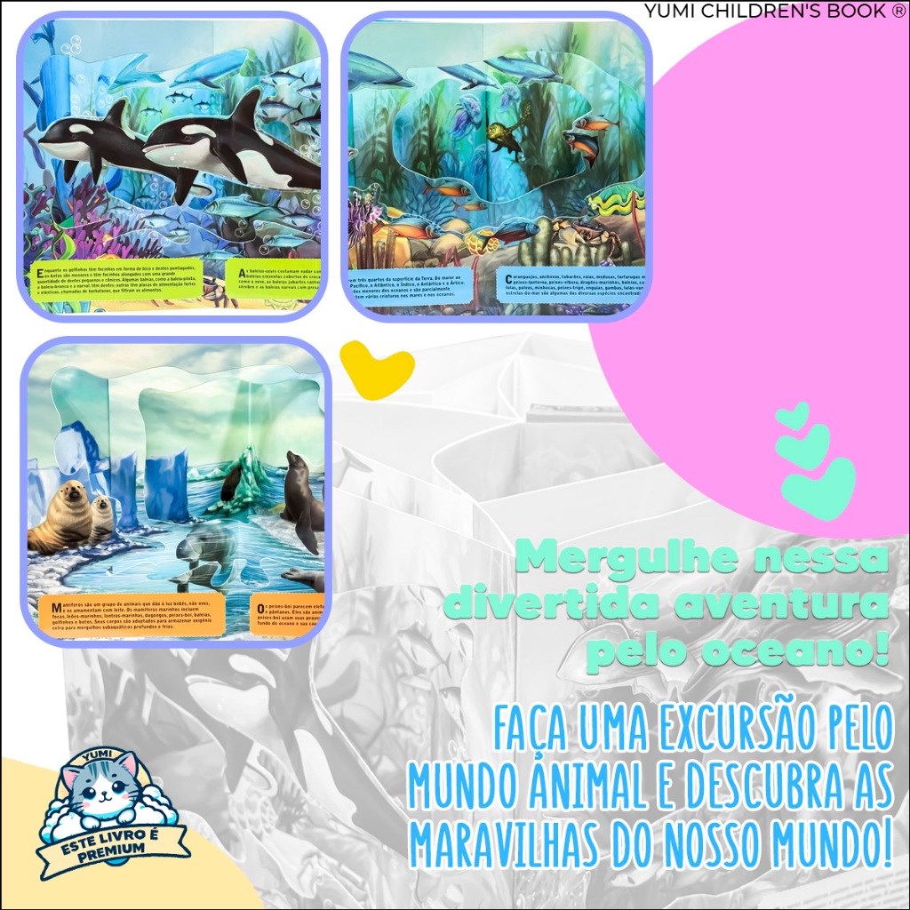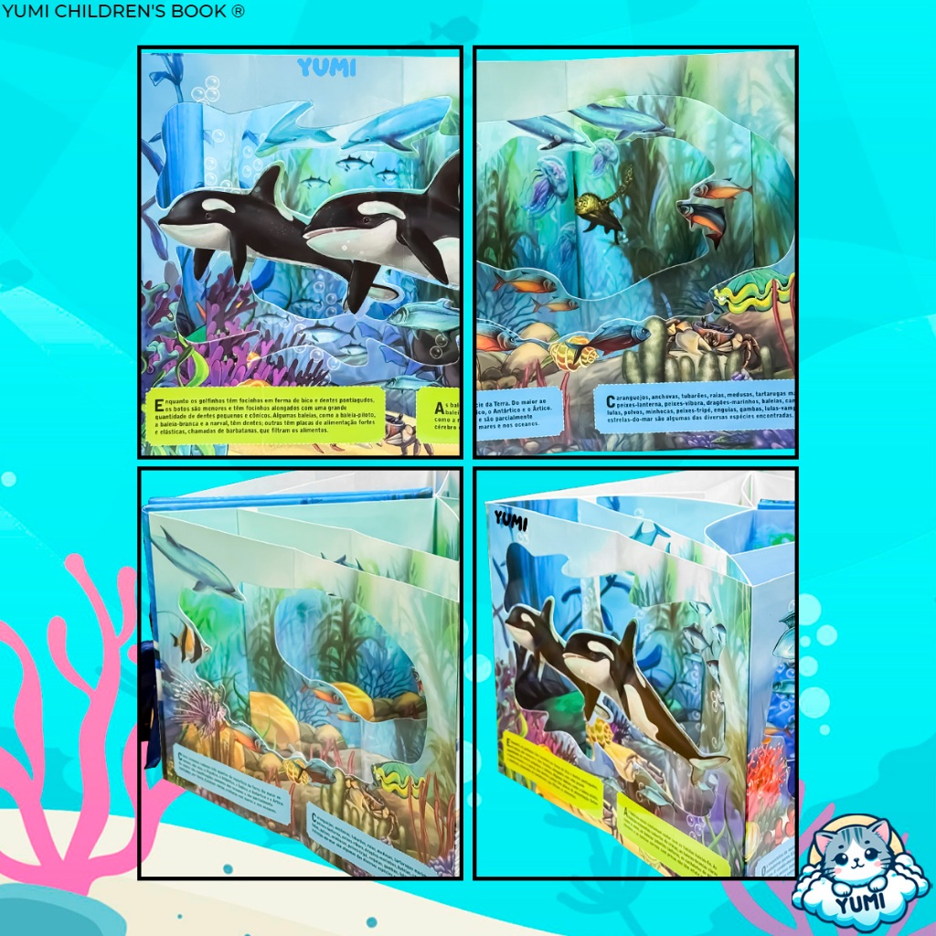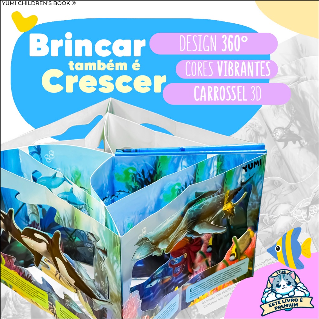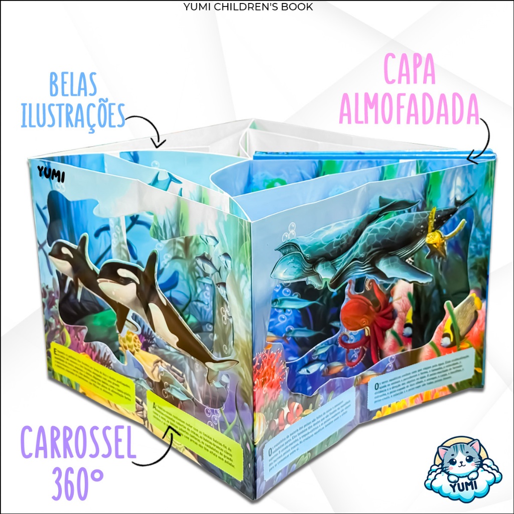 Livro Infantil Oceano Carrossel Gigante 3d | Animais Marinhos Interativos | Capa Dura Livro Educativo