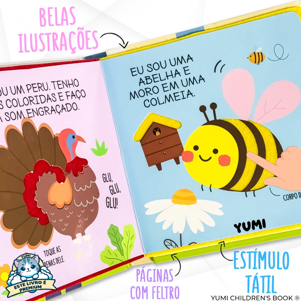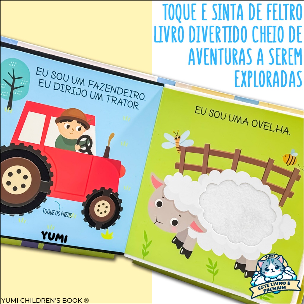Livro Sensorial Toque e Sinta Na Fazenda - Para Bebê 0-1 Ano Texturas Macias de Feltro Capa Dura