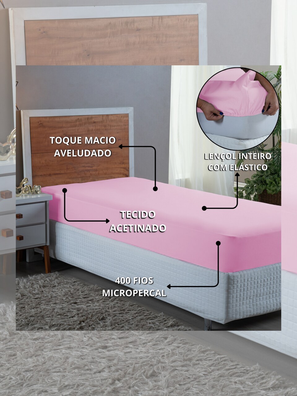 Conjunto Lençol Solteiro 3 Peças 400 Fios Jogo de Cama Box Toque Aveludado