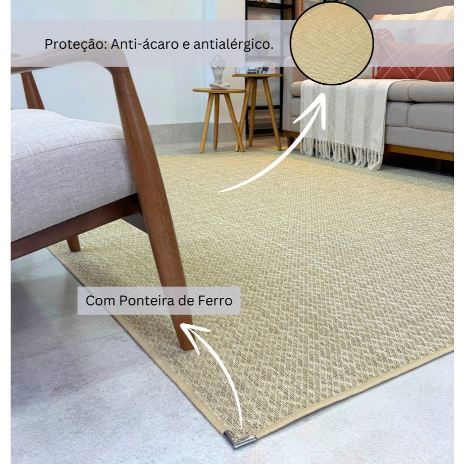 Tapete 300x200 Luxo Sisal sem Pelo para Sala Quarto Decoração