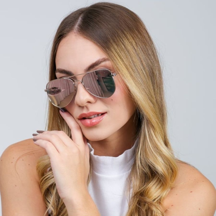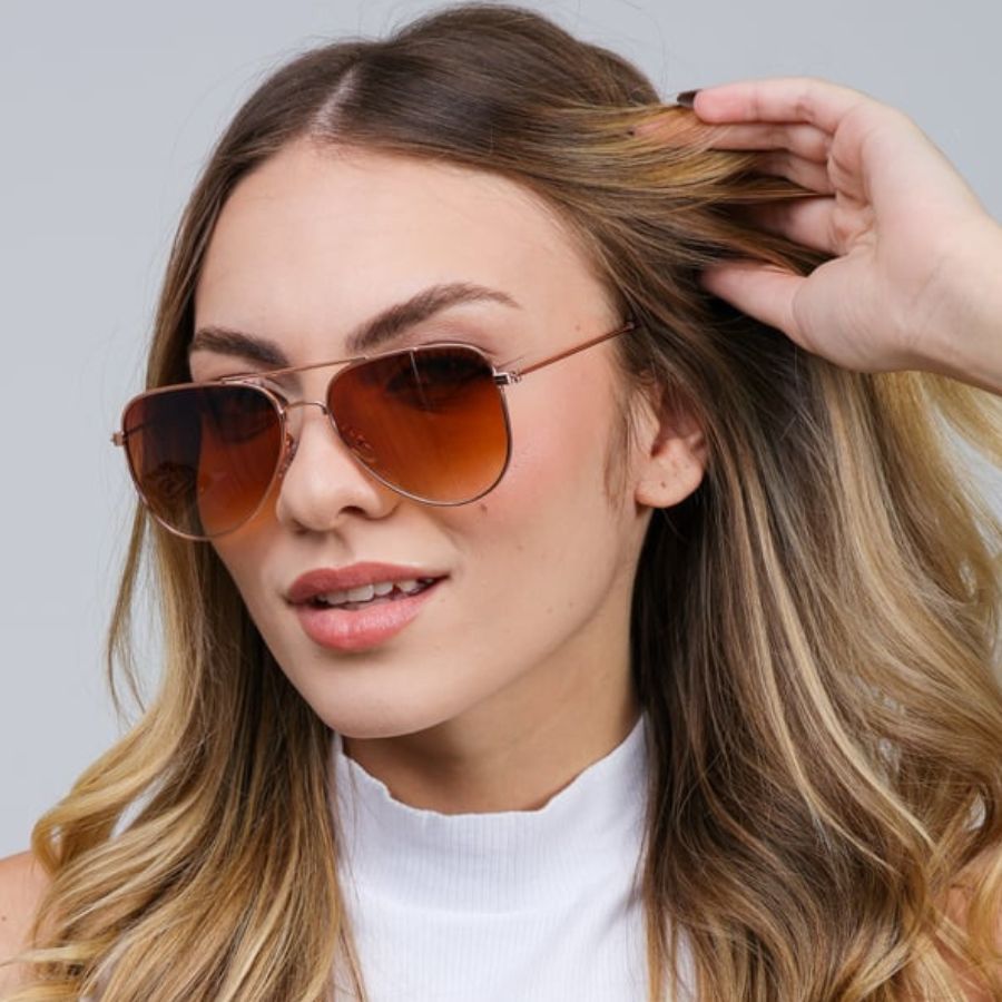 Oculos Piloto Aviador de Sol Oculos Grande Feminino Emborrachado Lentes Flat