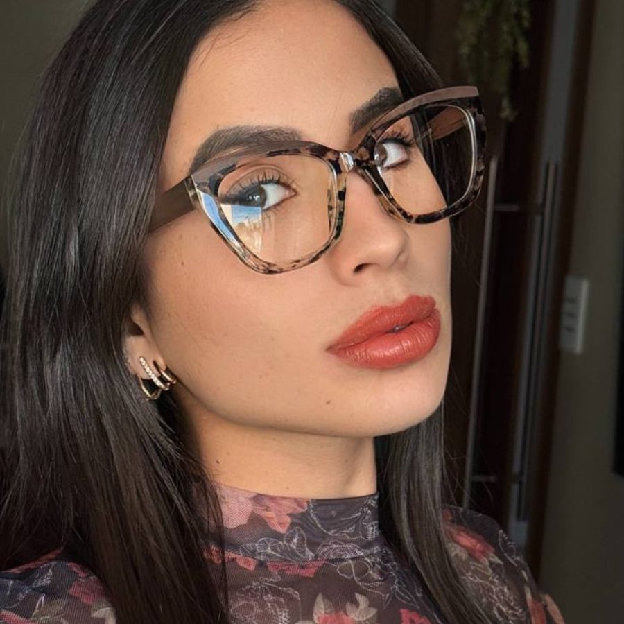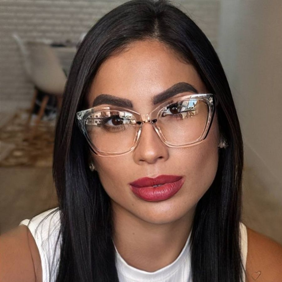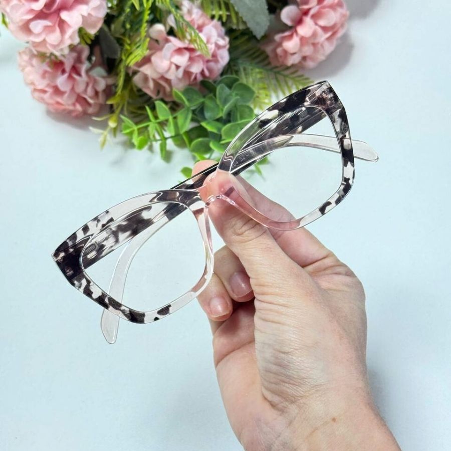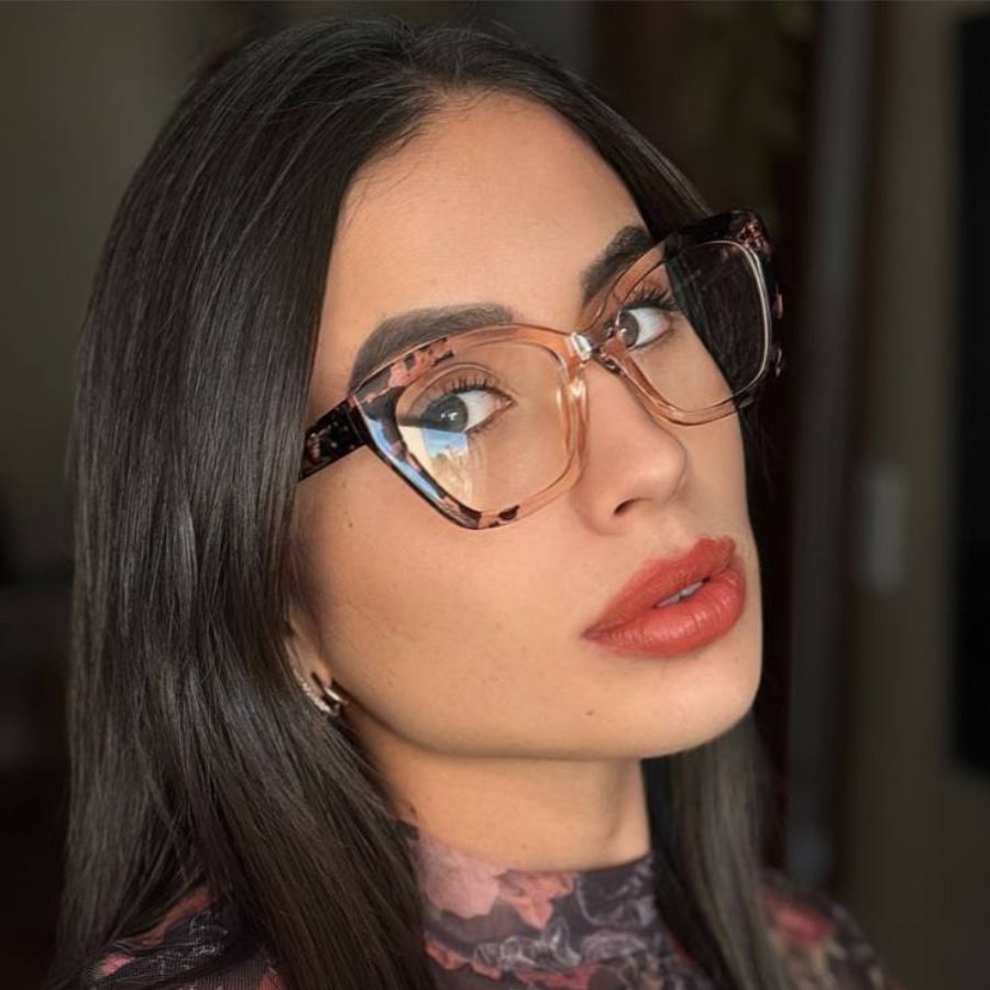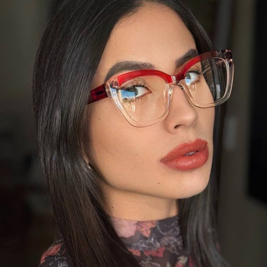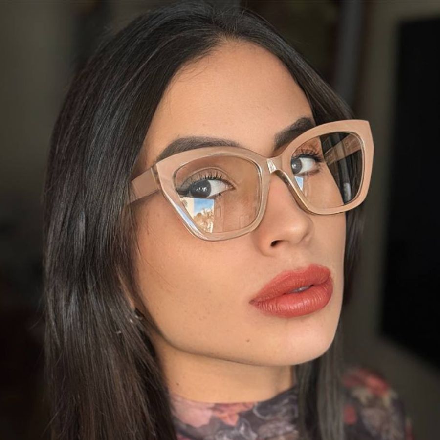 Óculos Armação Feminino Sem Grau Luz Azul Lente Transparente Gatinho Redondo Troca de Lentes Loja x
