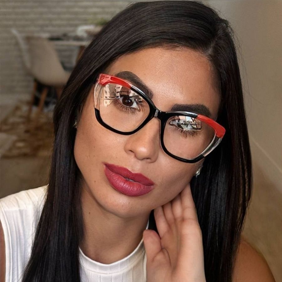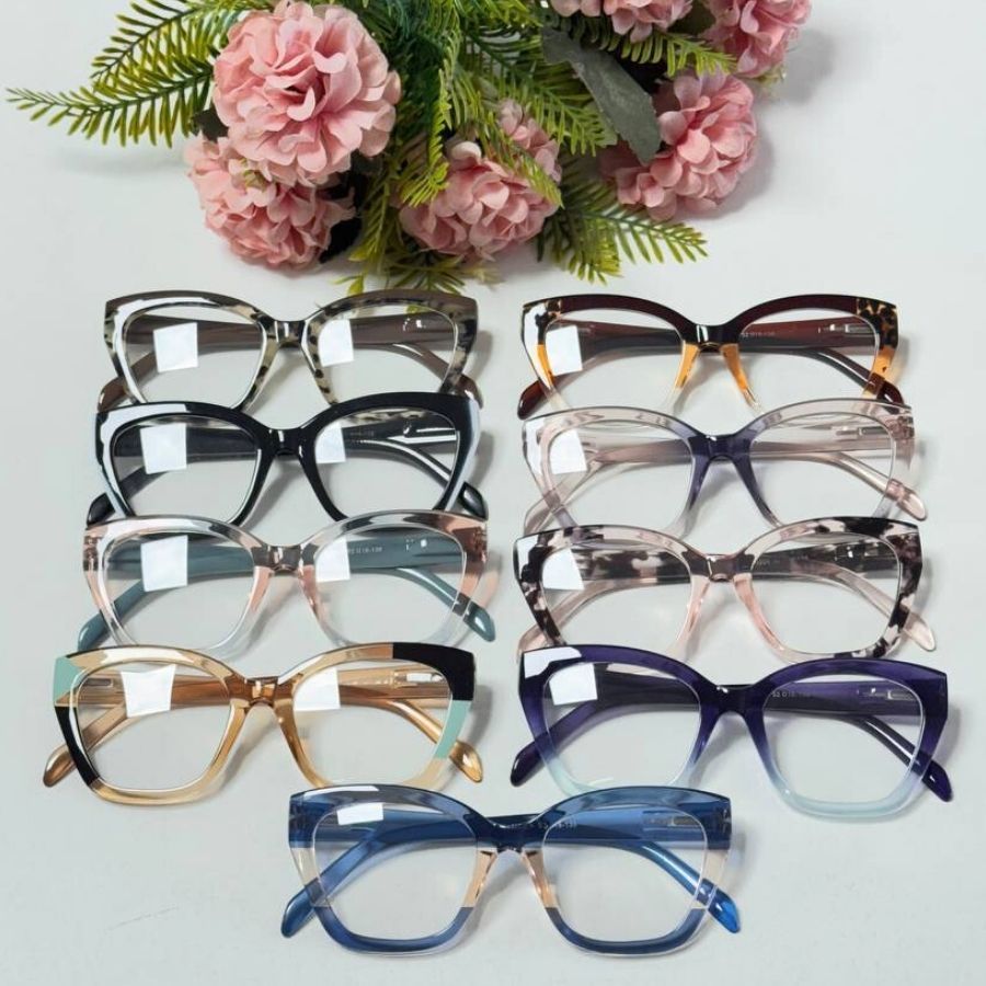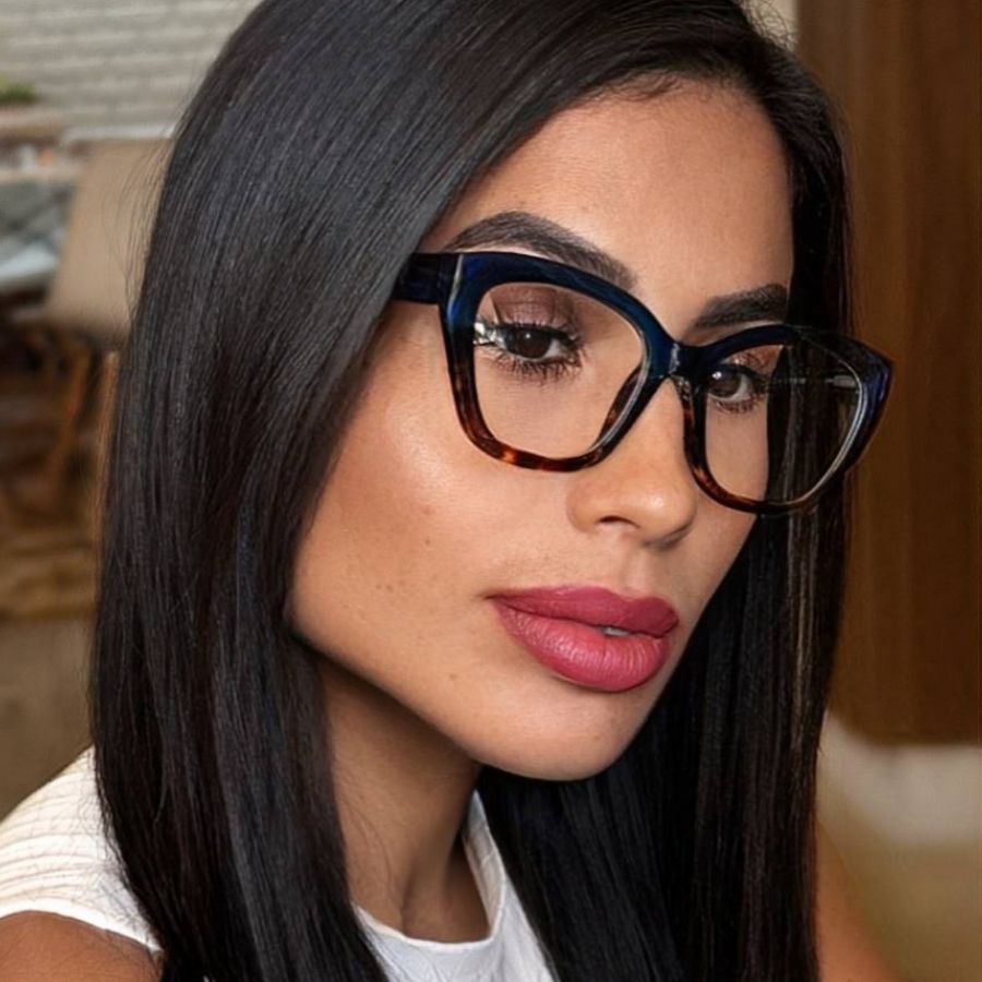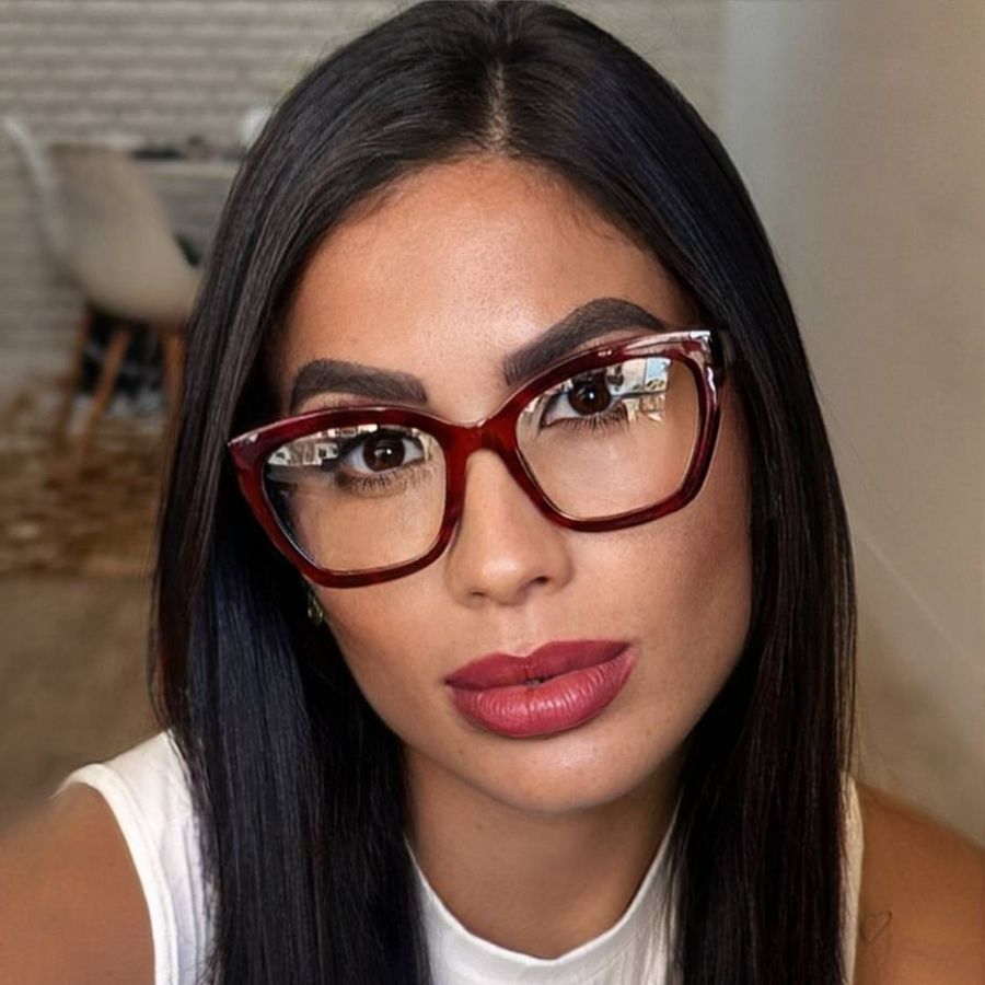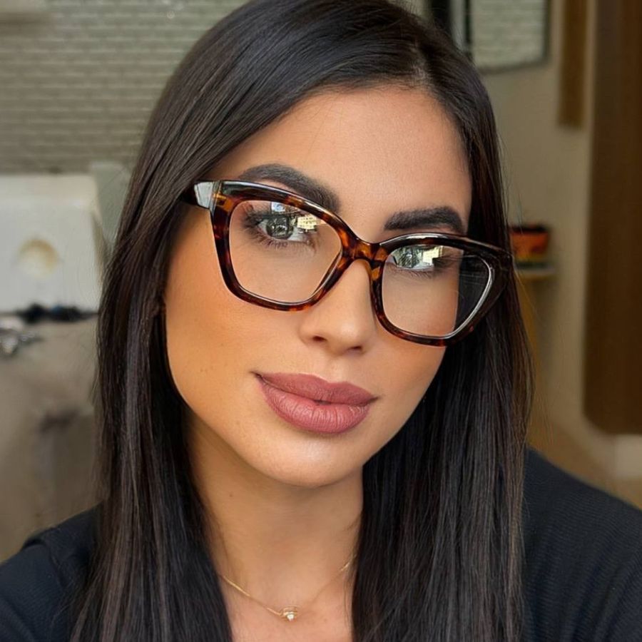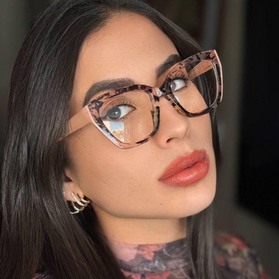 Óculos Armação Feminino Sem Grau Luz Azul Lente Transparente Gatinho Redondo Troca de Lentes Loja x
