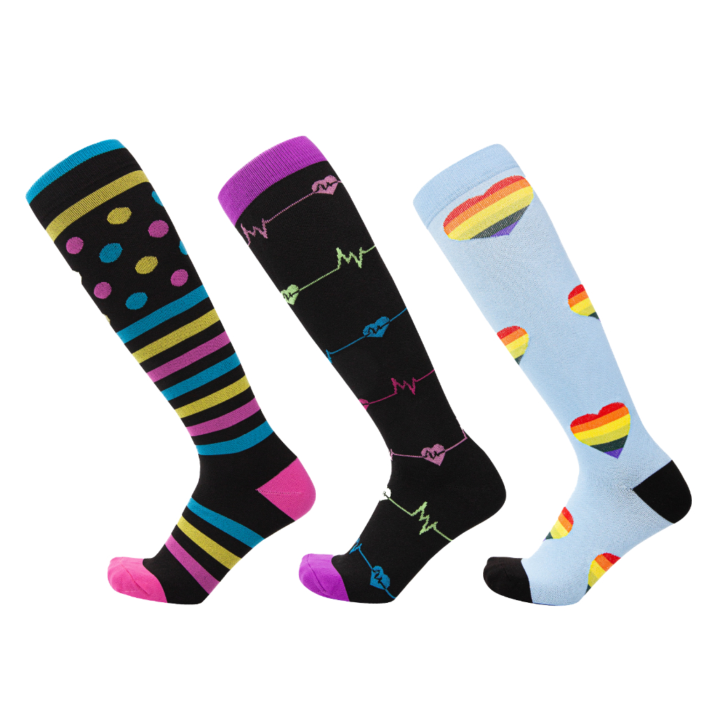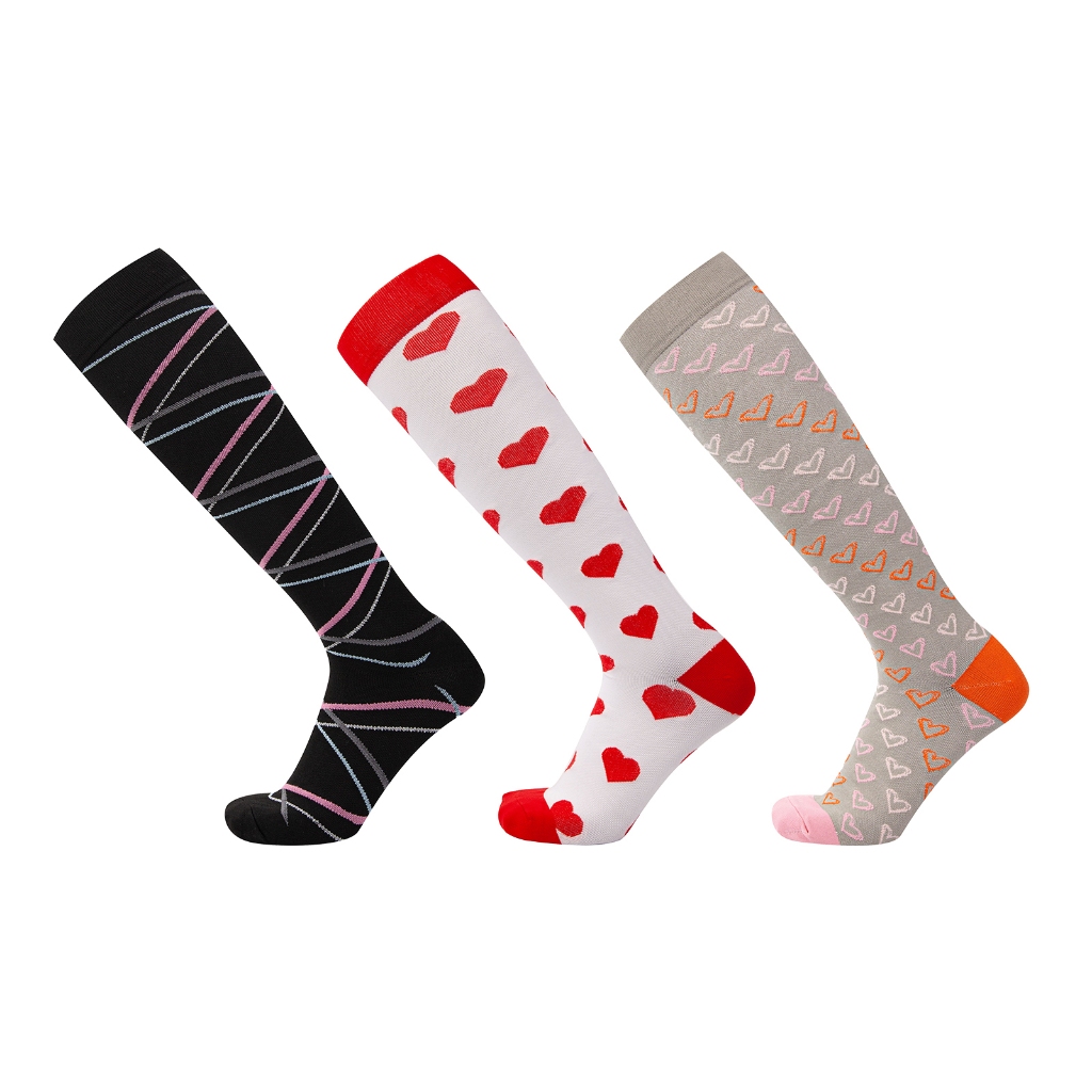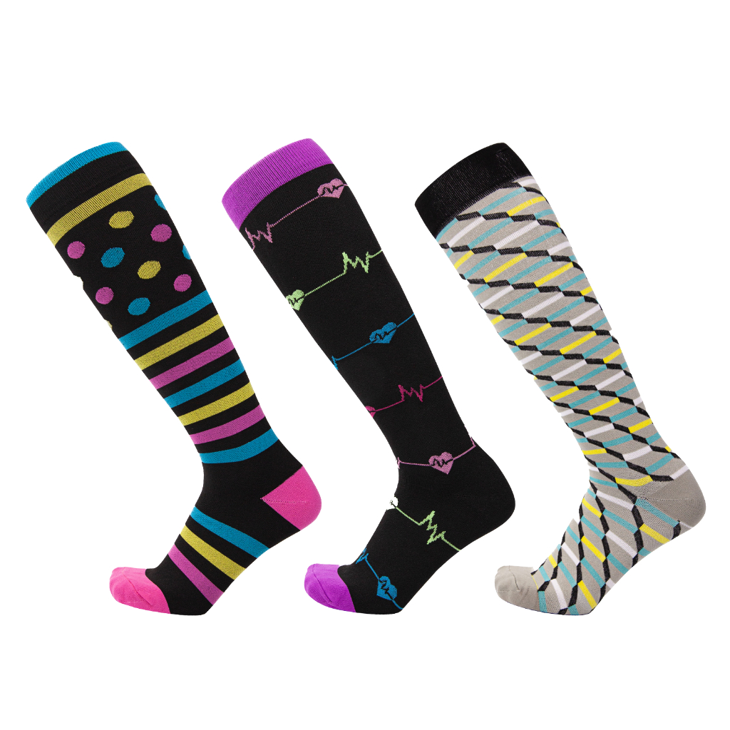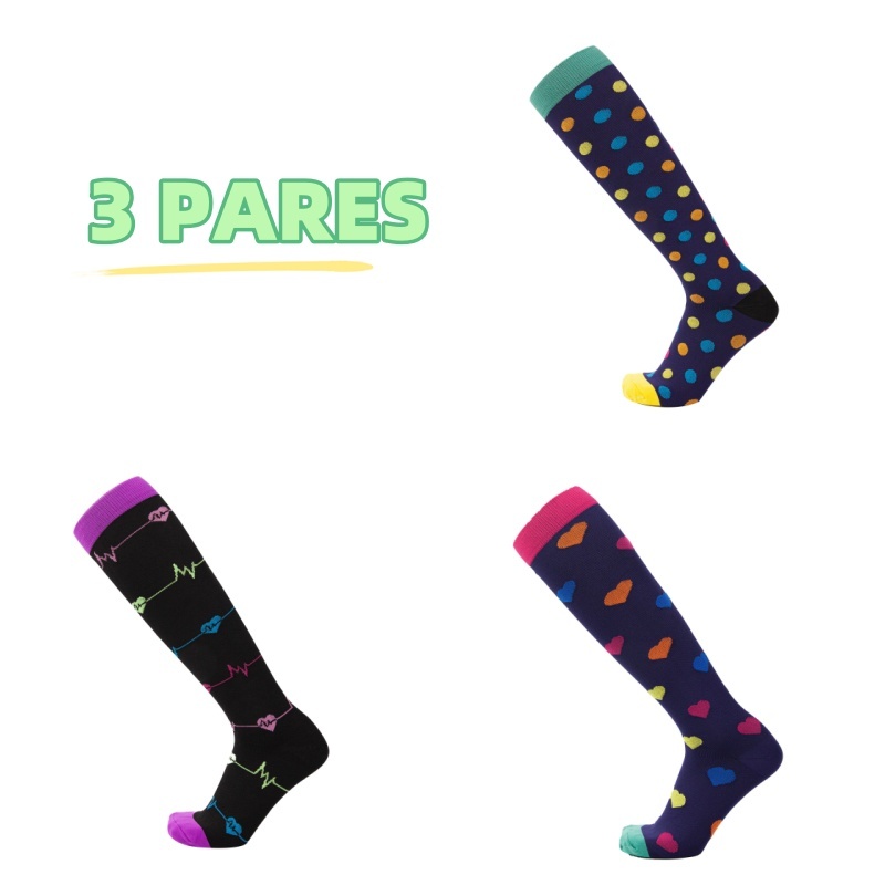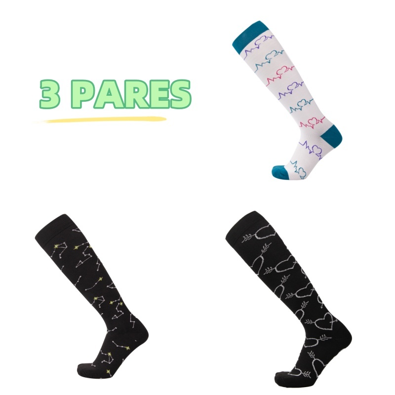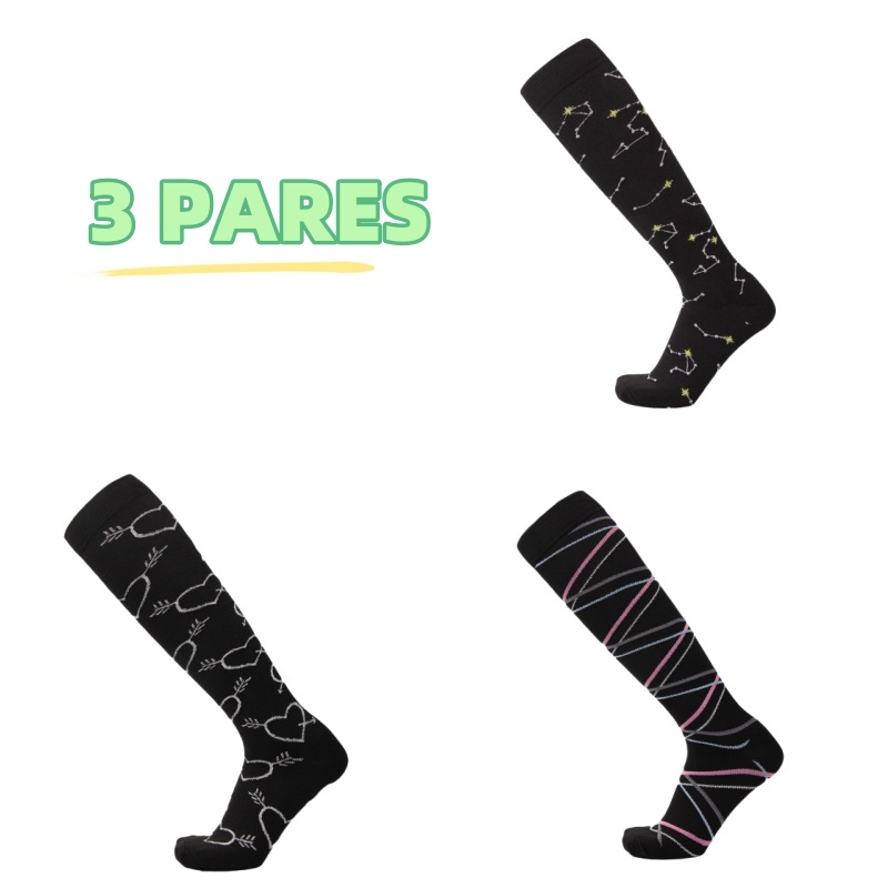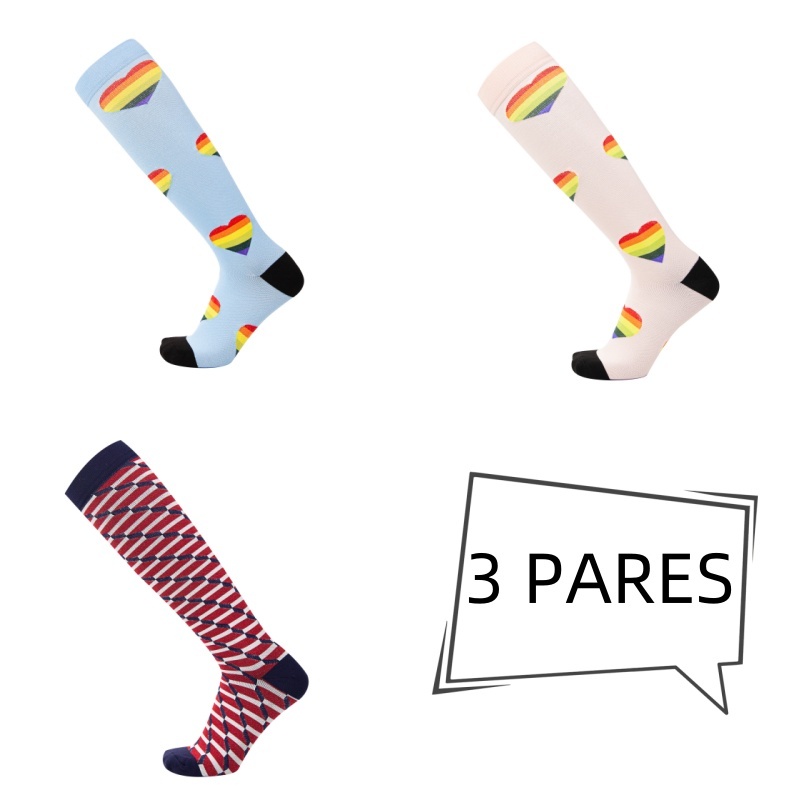 KIT 3 Pares Meias de compressão flores Meias altas Estressar a panturrilha ar livre Secagem rápida Meias de corrid
