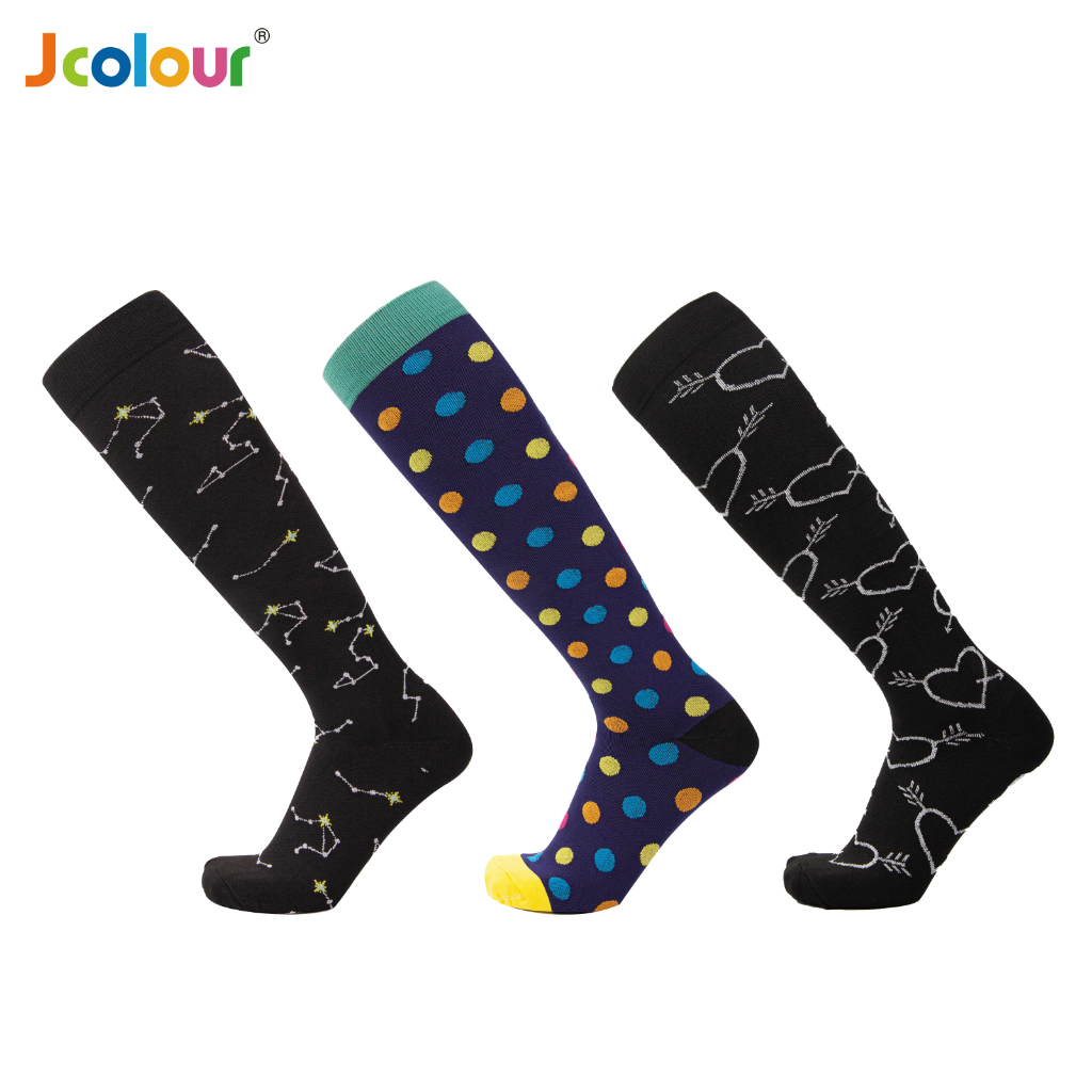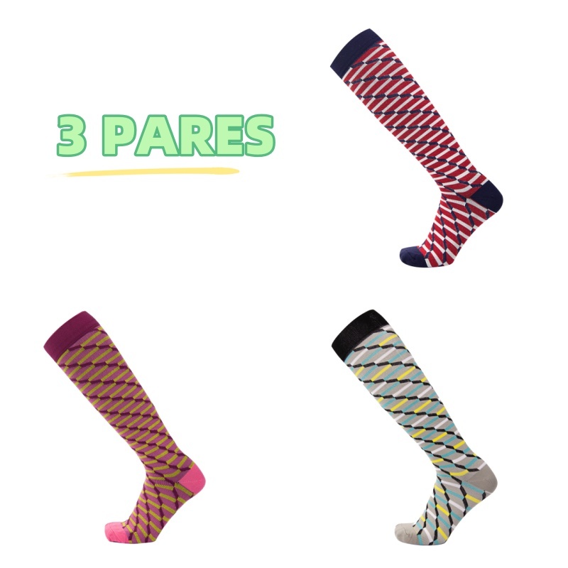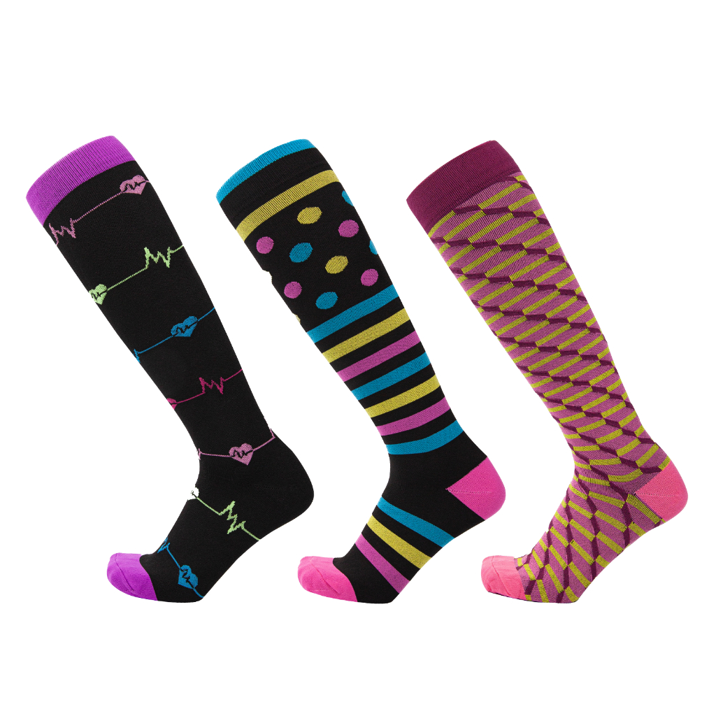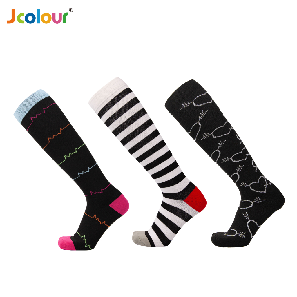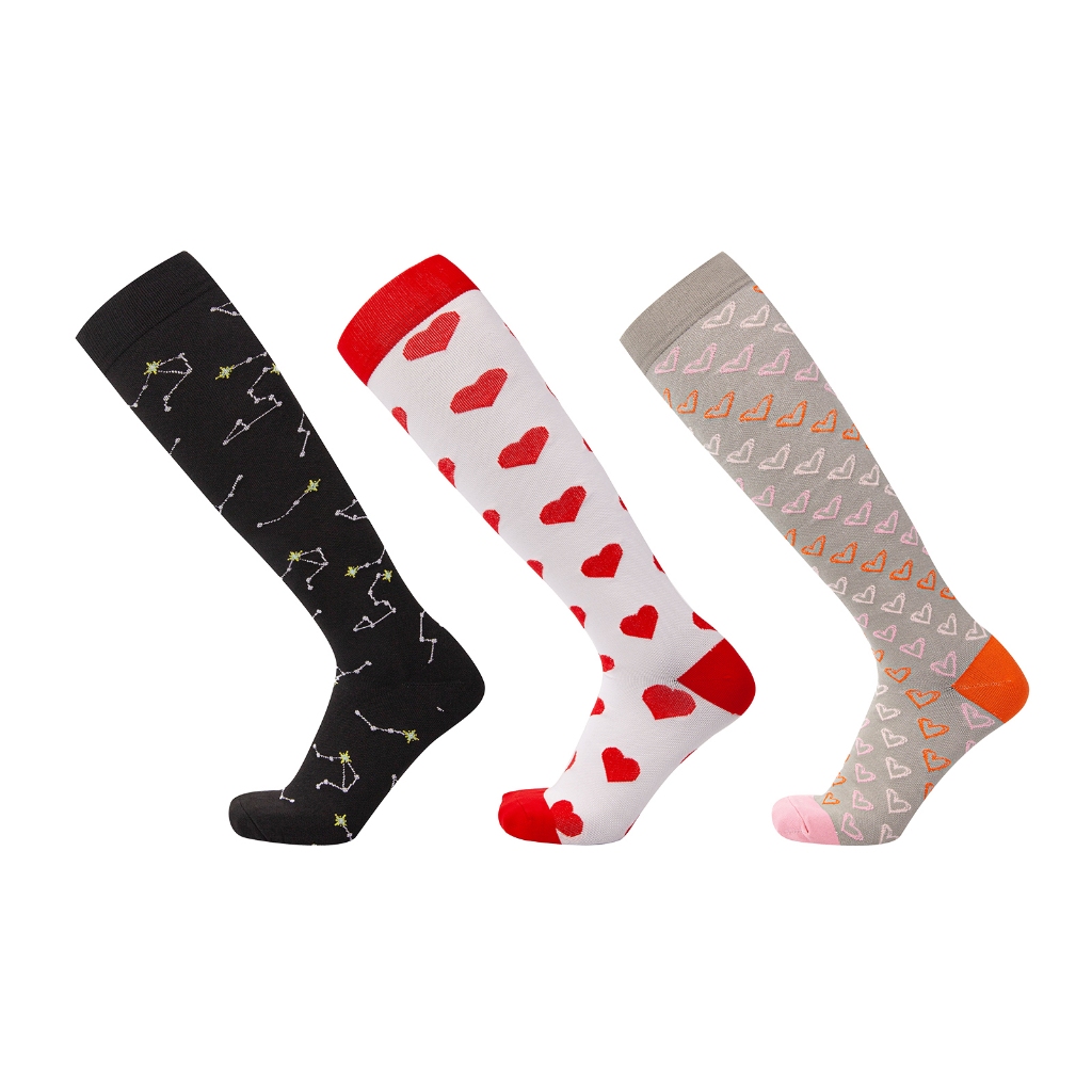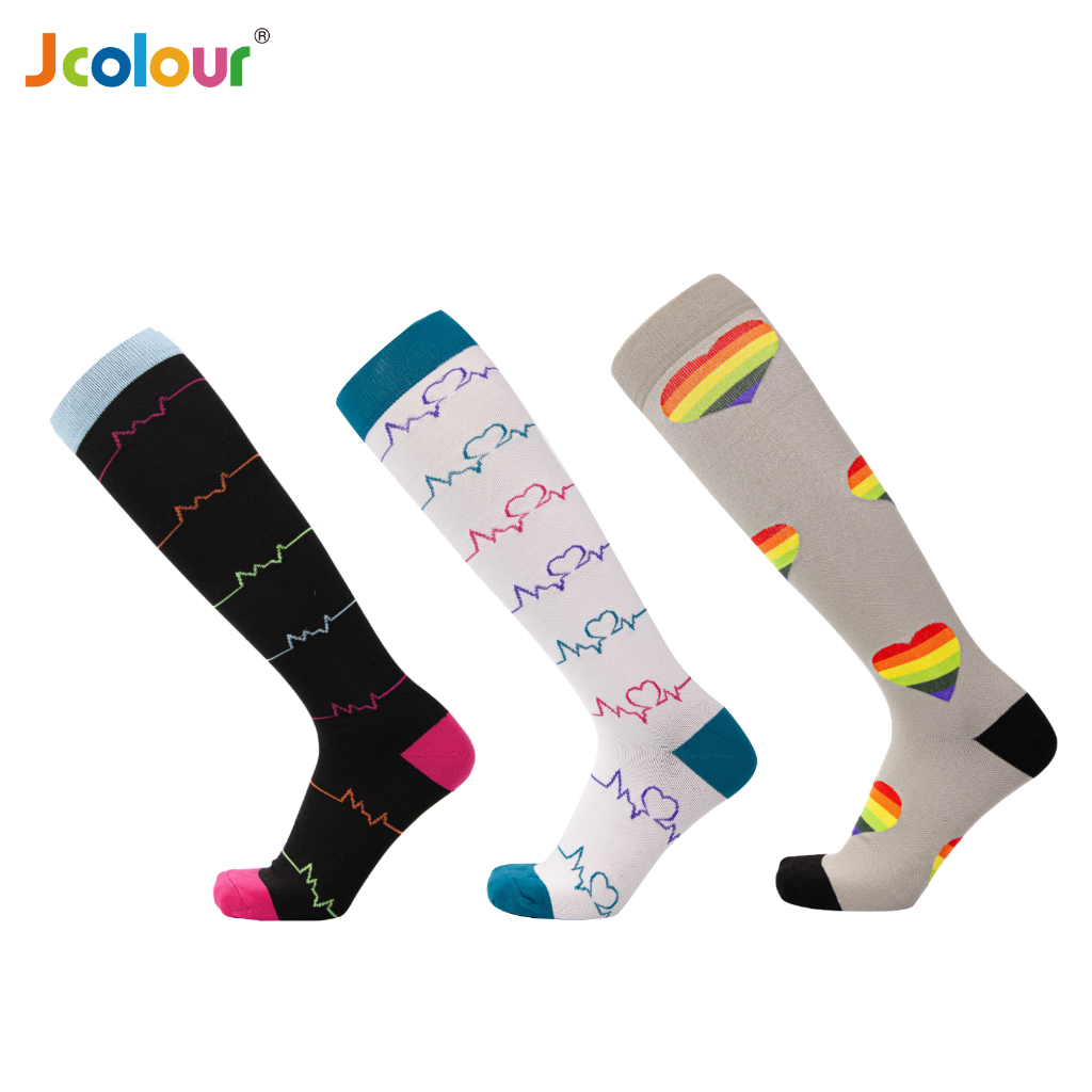 KIT 3 Pares Meias de compressão flores Meias altas Estressar a panturrilha ar livre Secagem rápida Meias de corrid