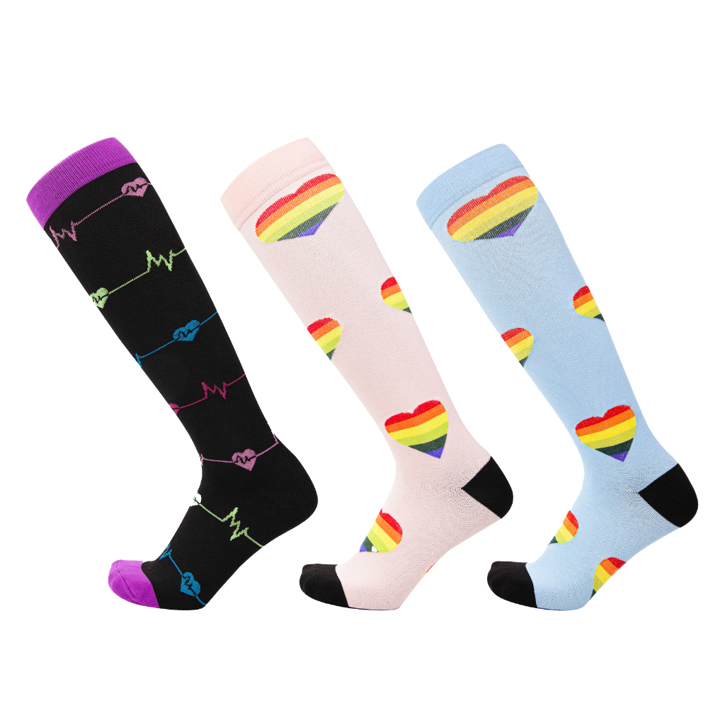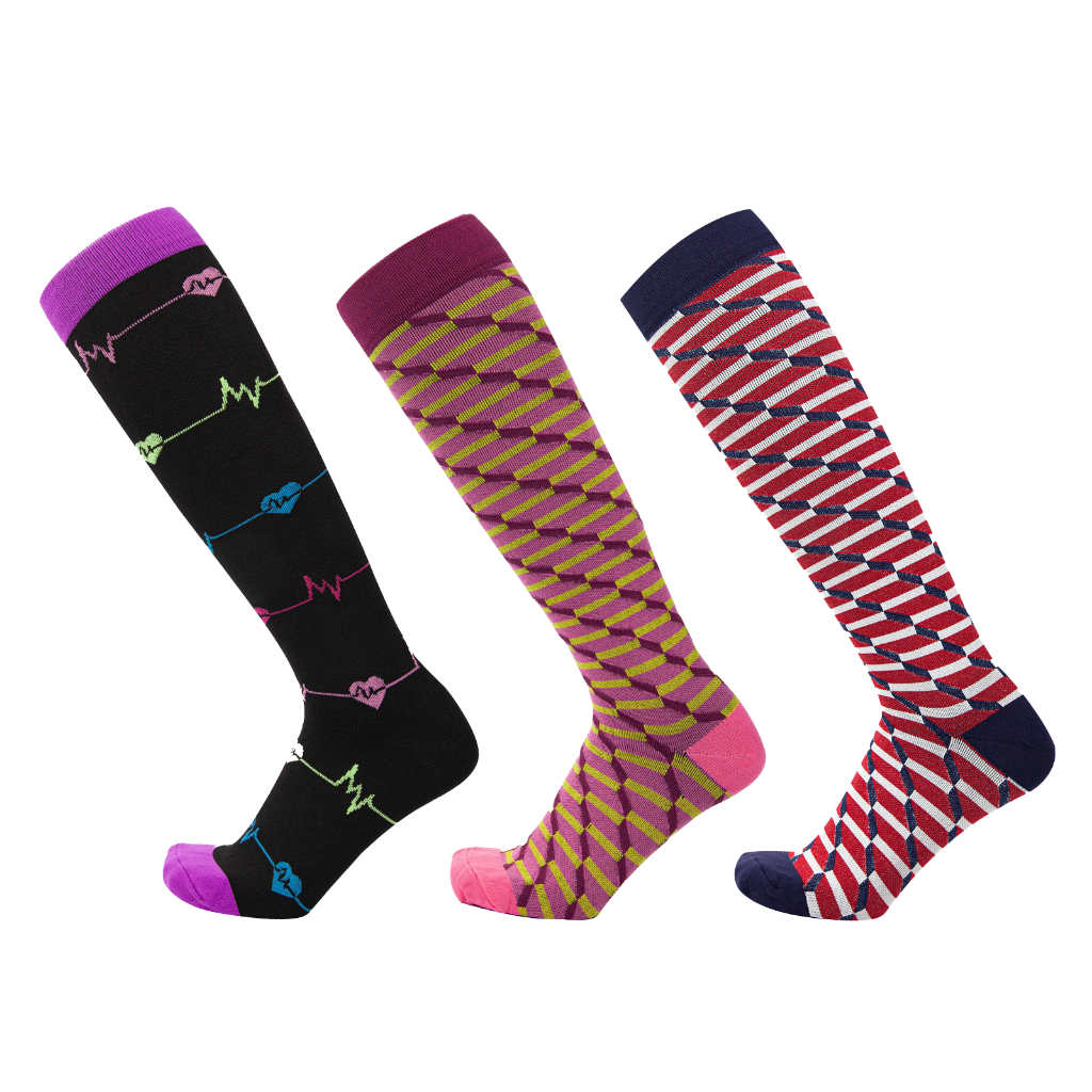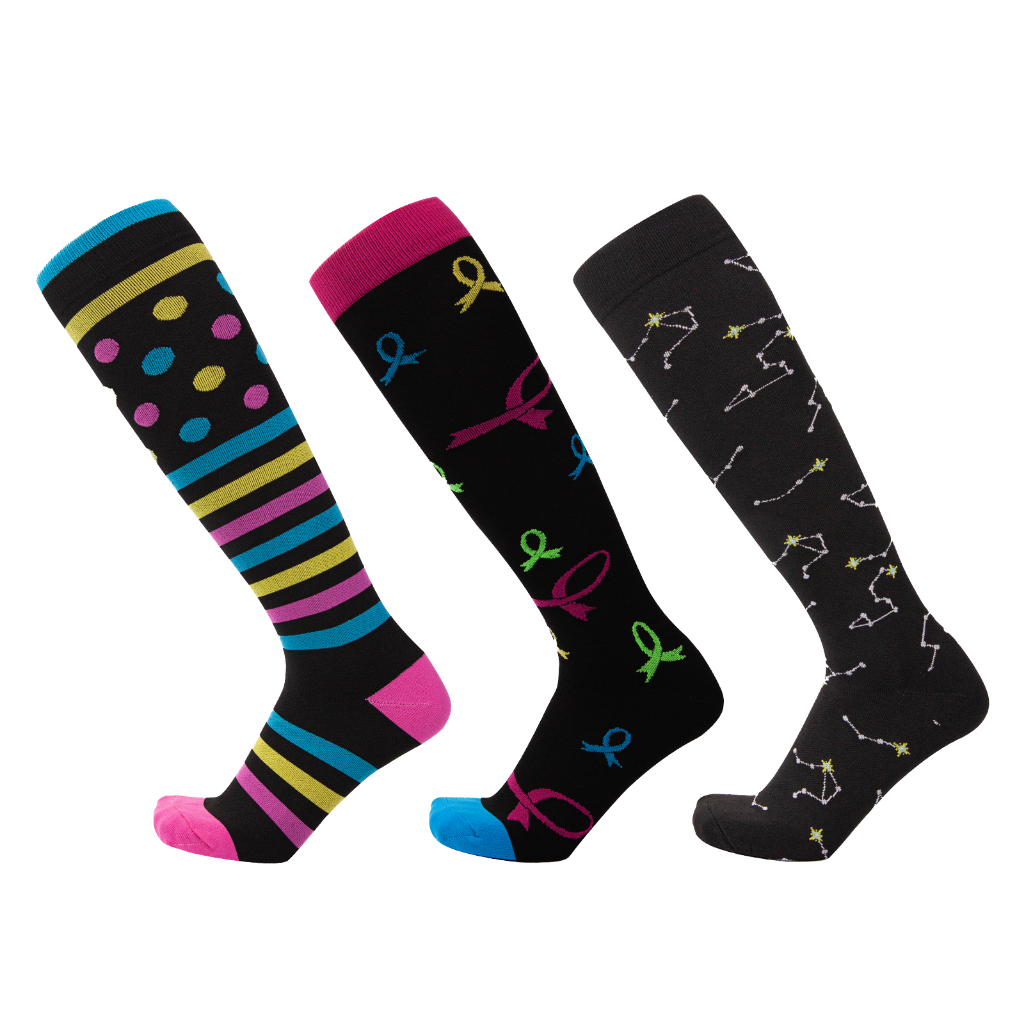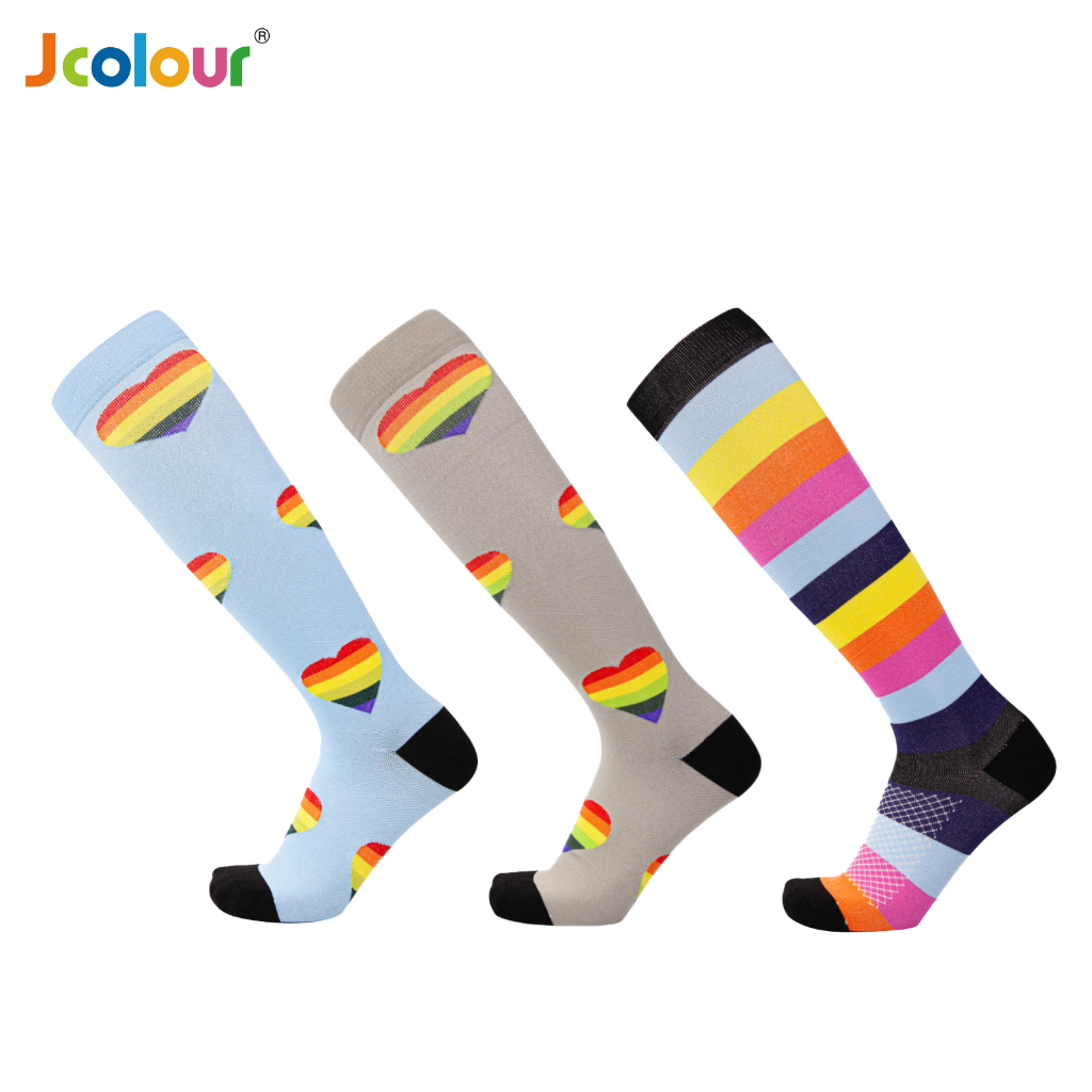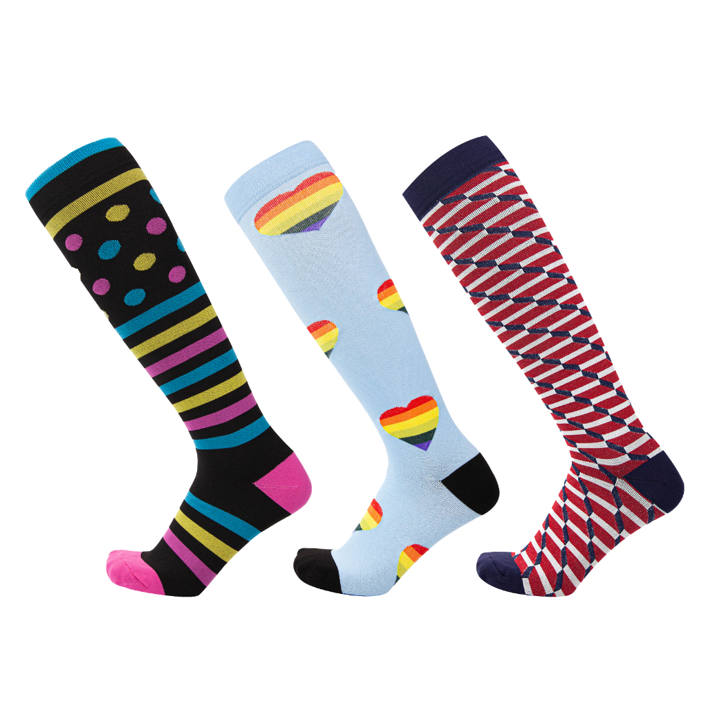 KIT 3 Pares Meias de compressão flores Meias altas Estressar a panturrilha ar livre Secagem rápida Meias de corrid