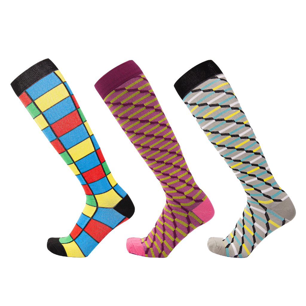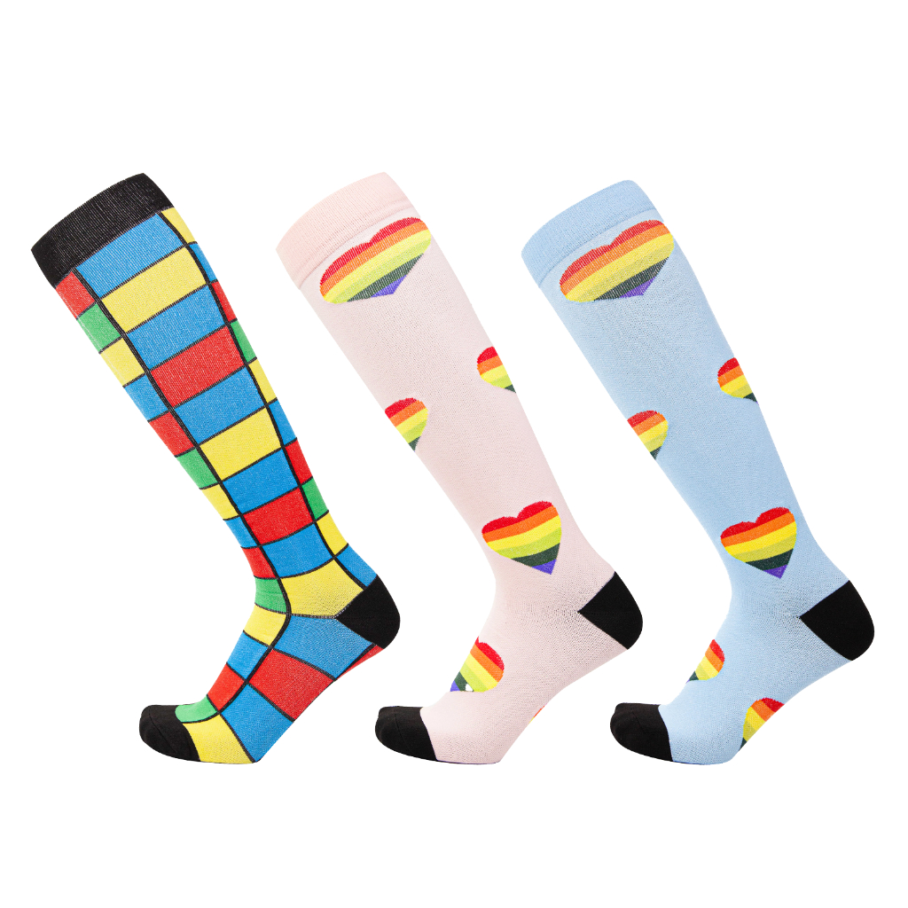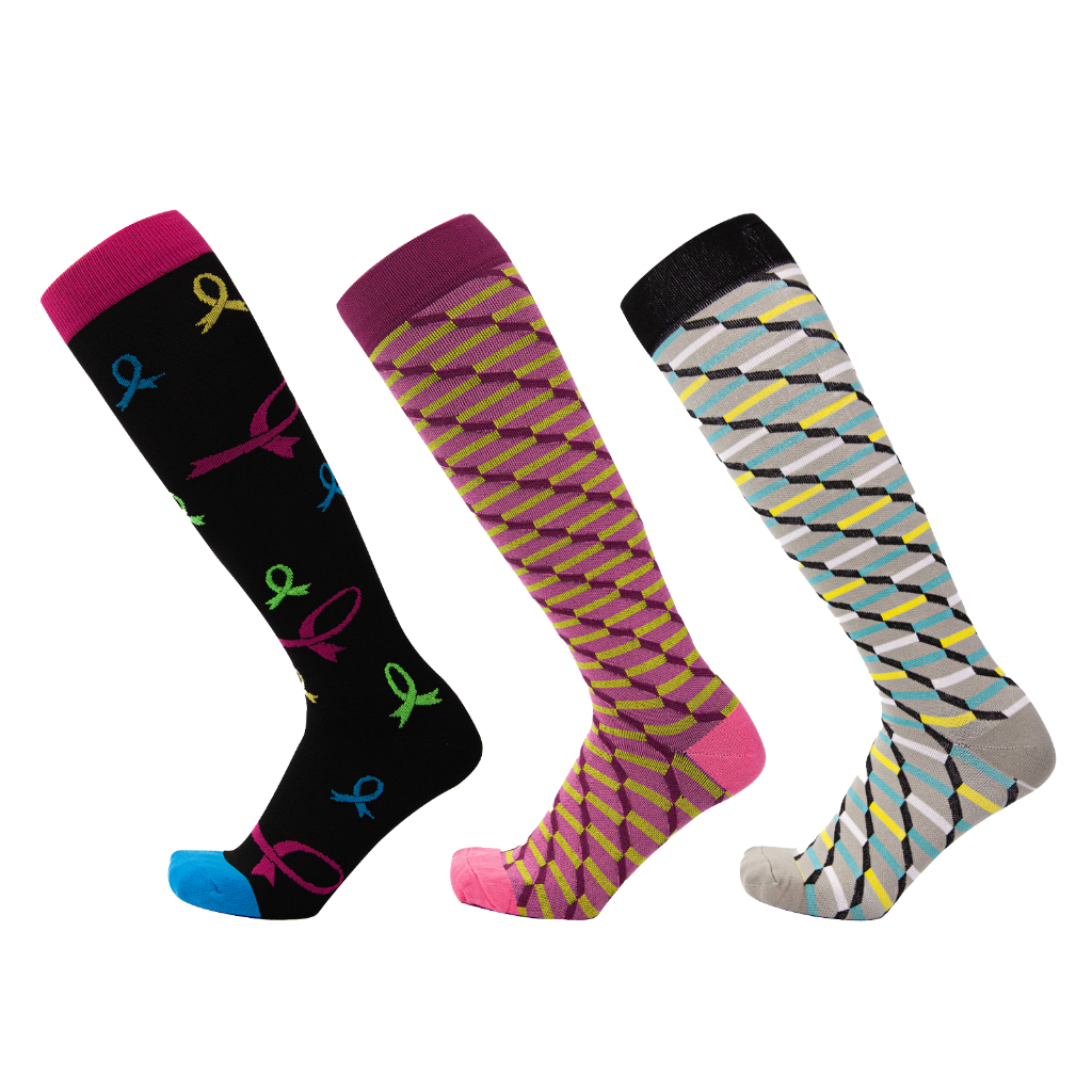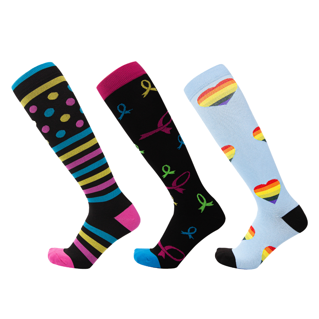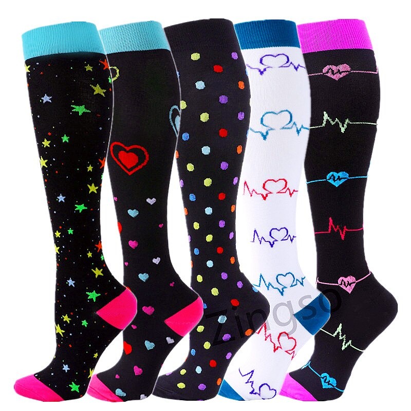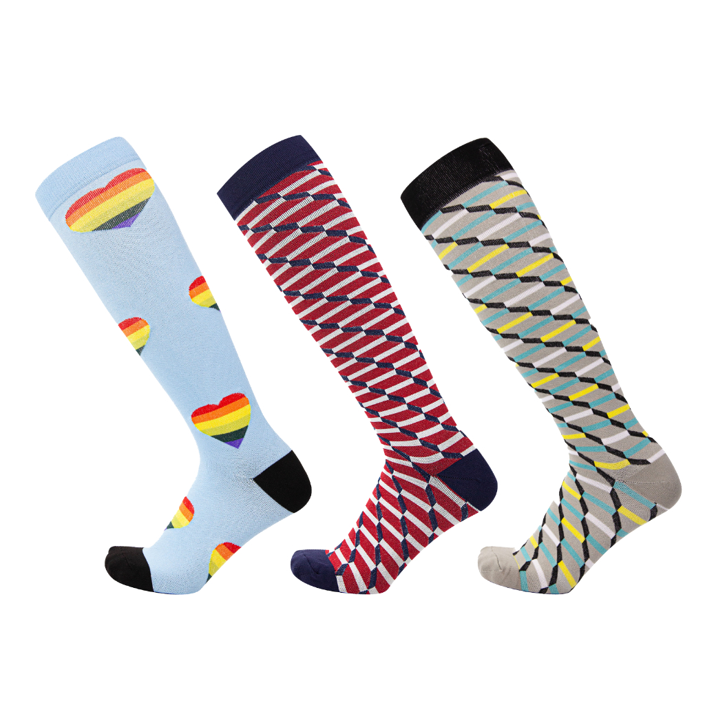 KIT 3 Pares Meias de compressão flores Meias altas Estressar a panturrilha ar livre Secagem rápida Meias de corrid