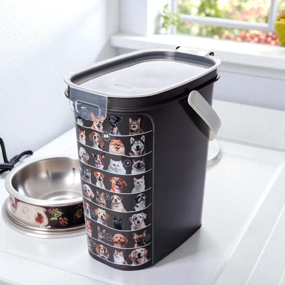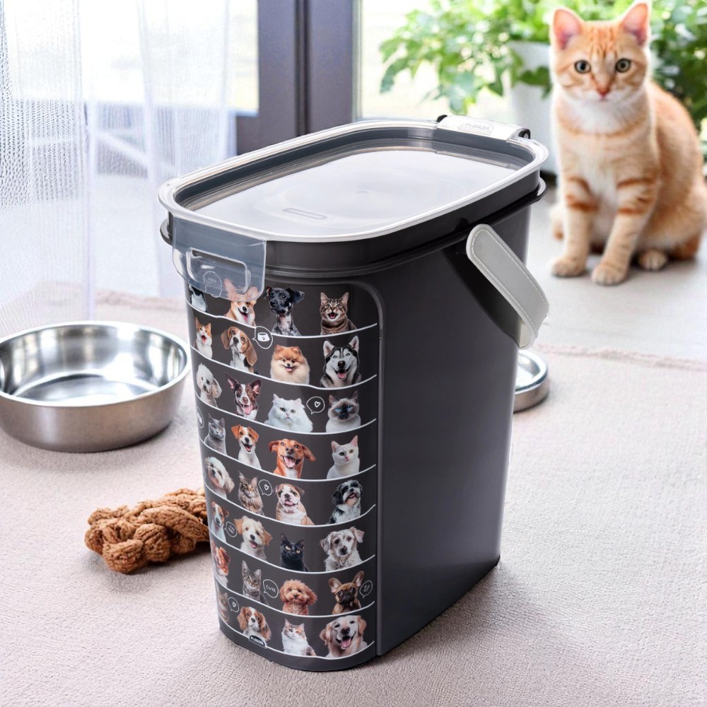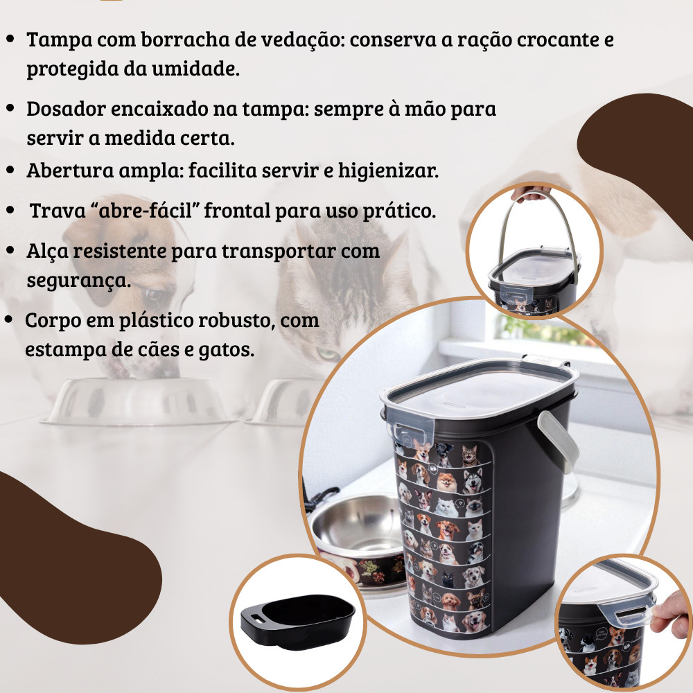 Porta Ração 8,5kg Tampa Hermética Colher Dosadora Cães Gato Preto