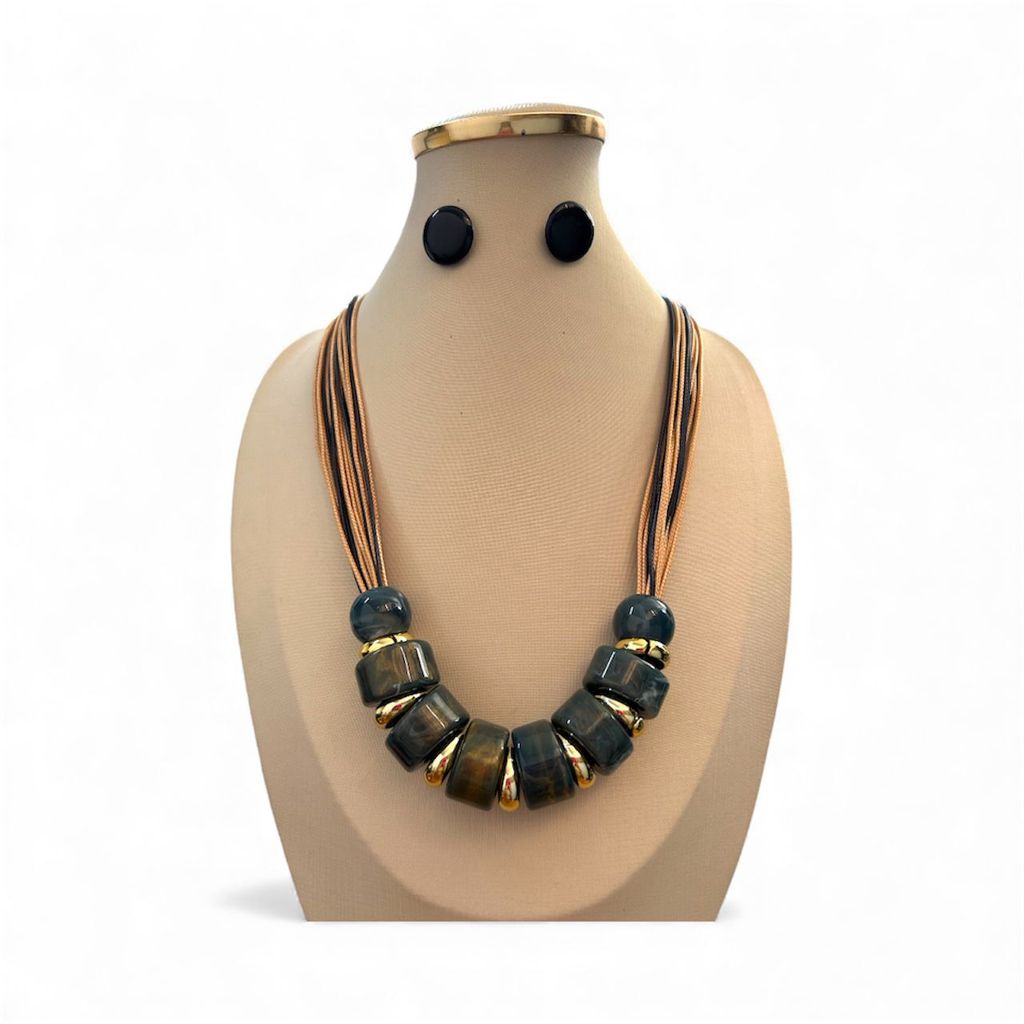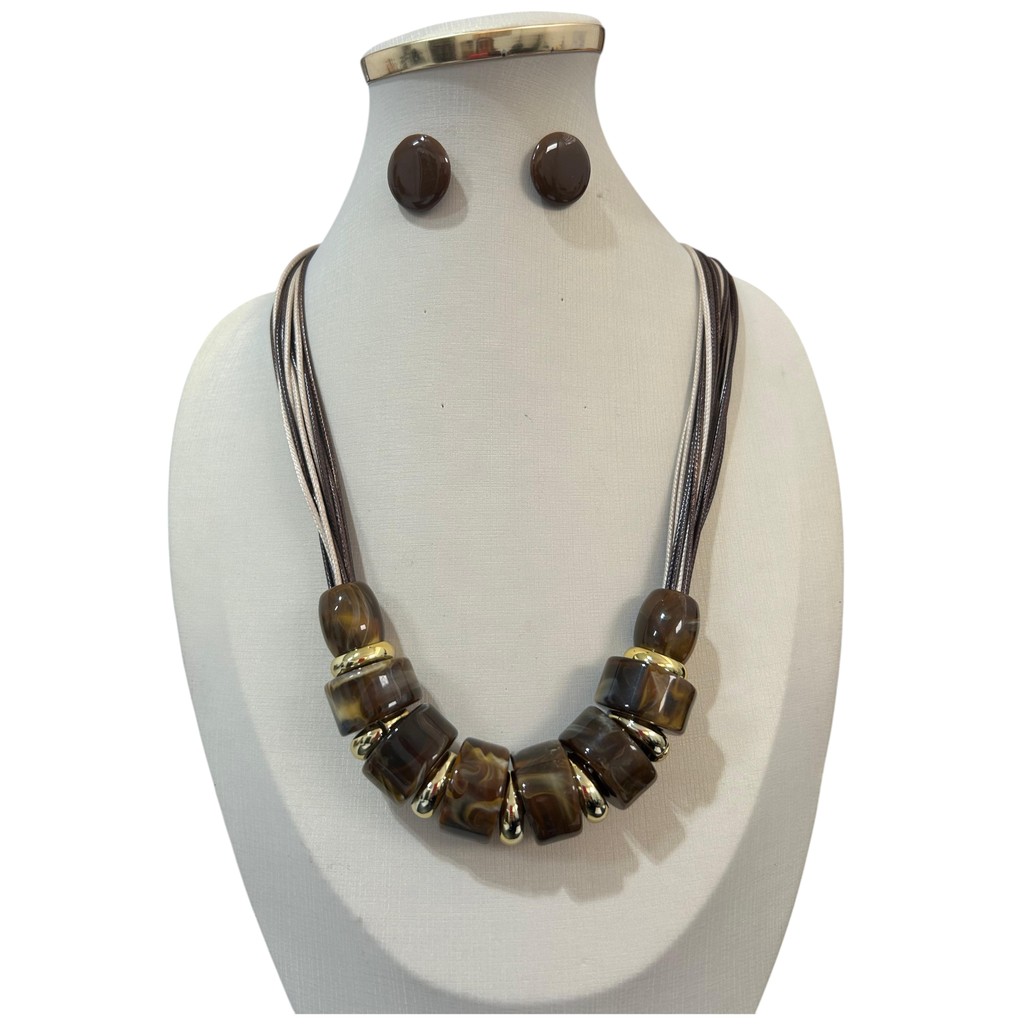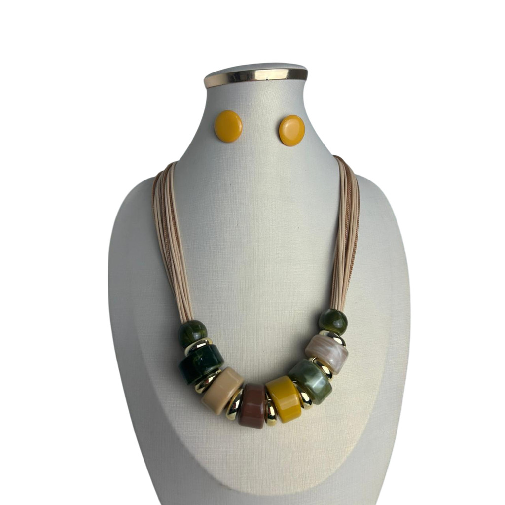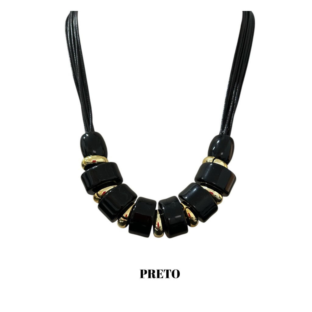 Colar Feminino Com Cordão E Resina Kit Com Brinco Tendência