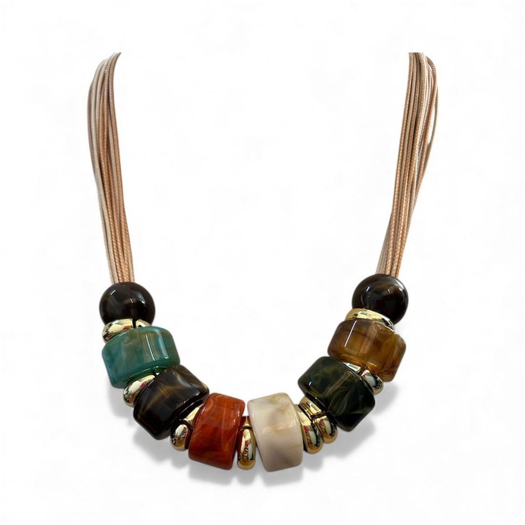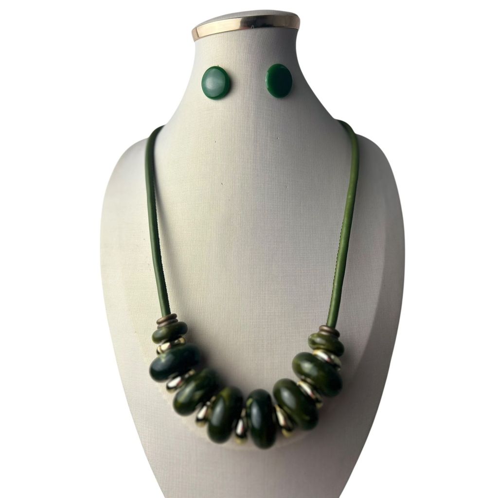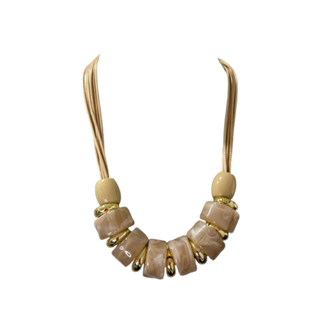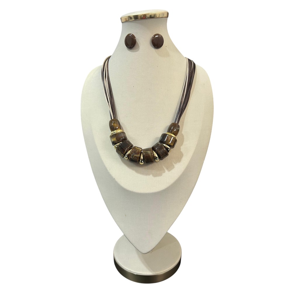 Colar Feminino Com Cordão E Resina Kit Com Brinco Tendência