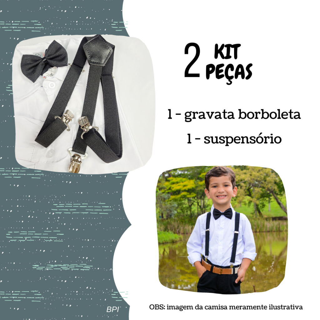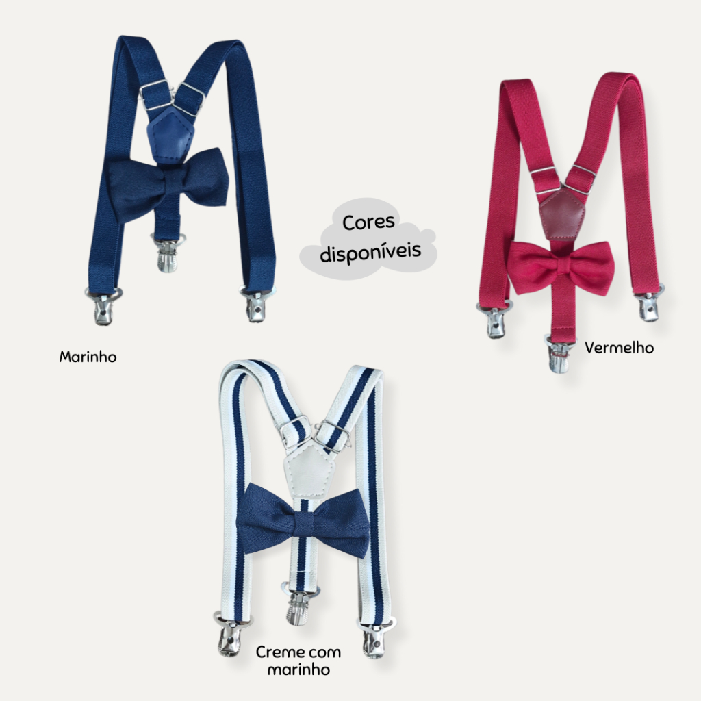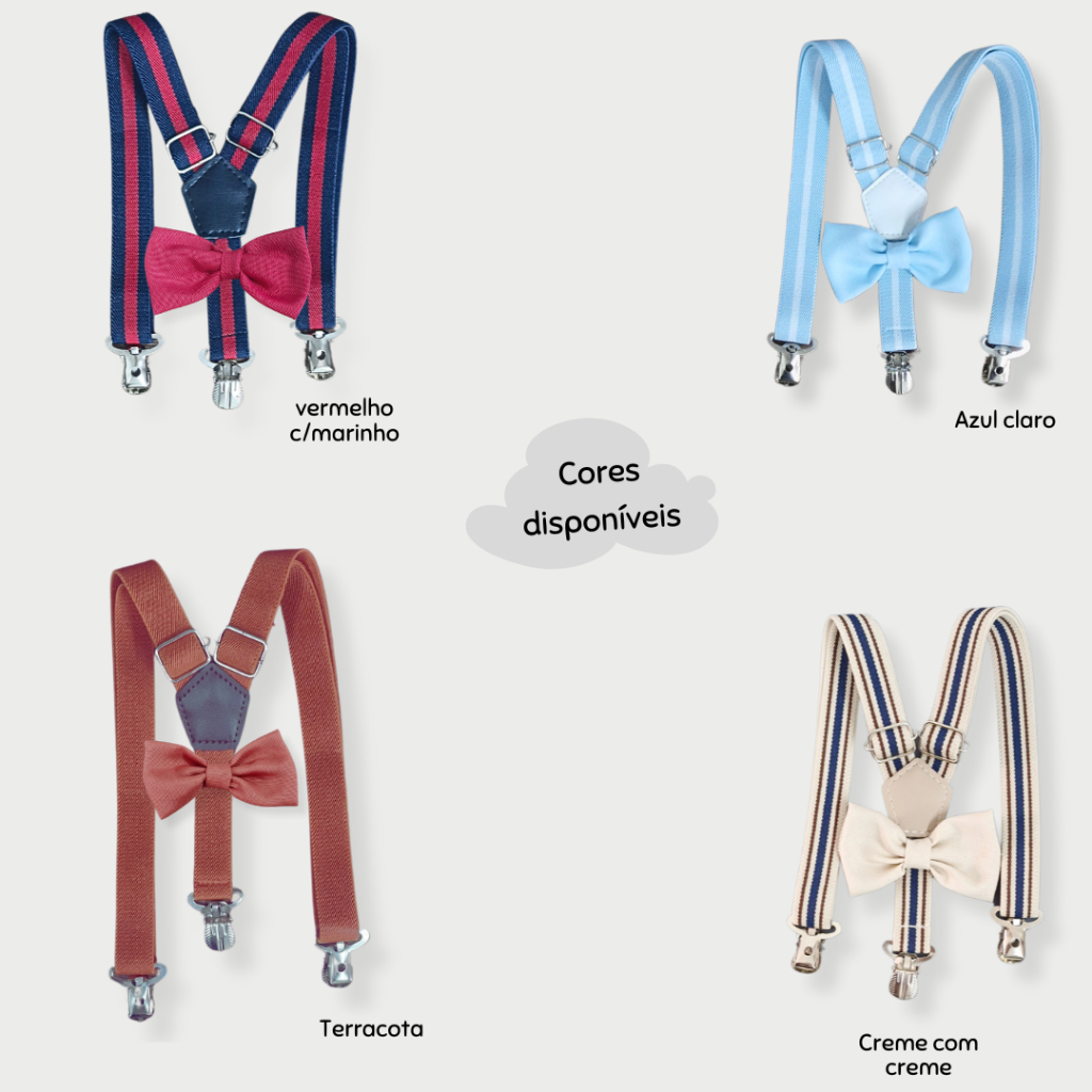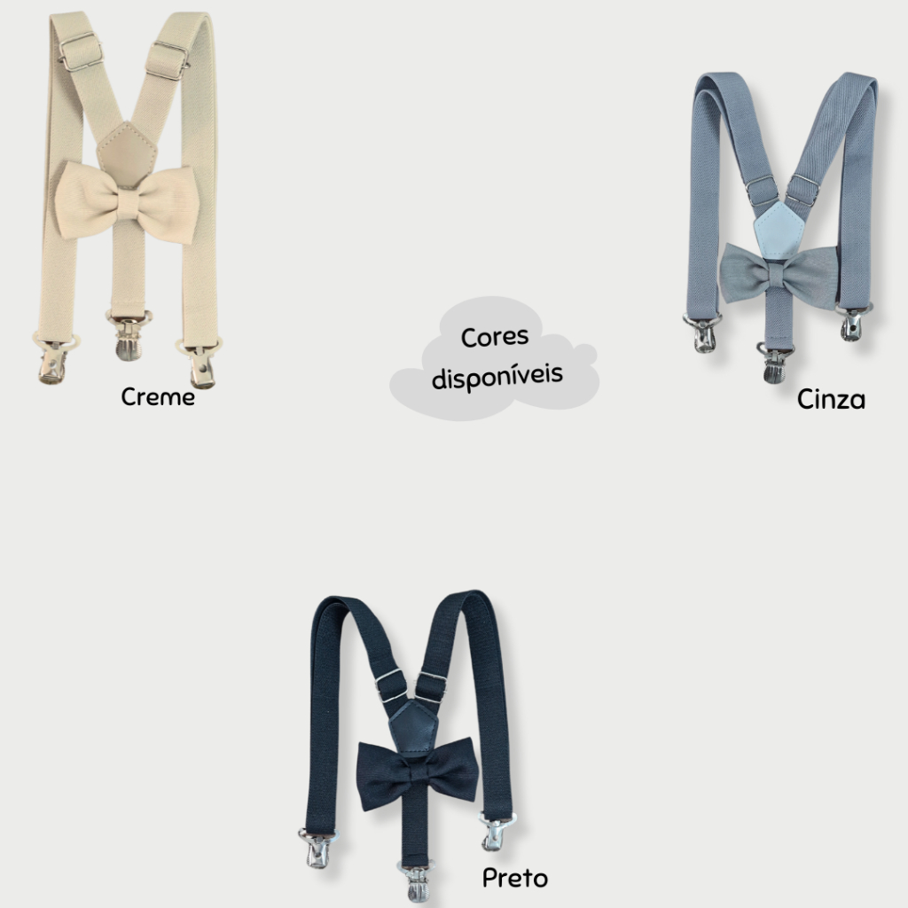 Suspensório e Gravata Borboleta Infantil Menino varias cores