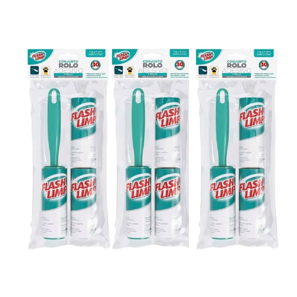 Kit 3 Rolo Adesivo Tira Pelos + 6 Refil - Flash Limp