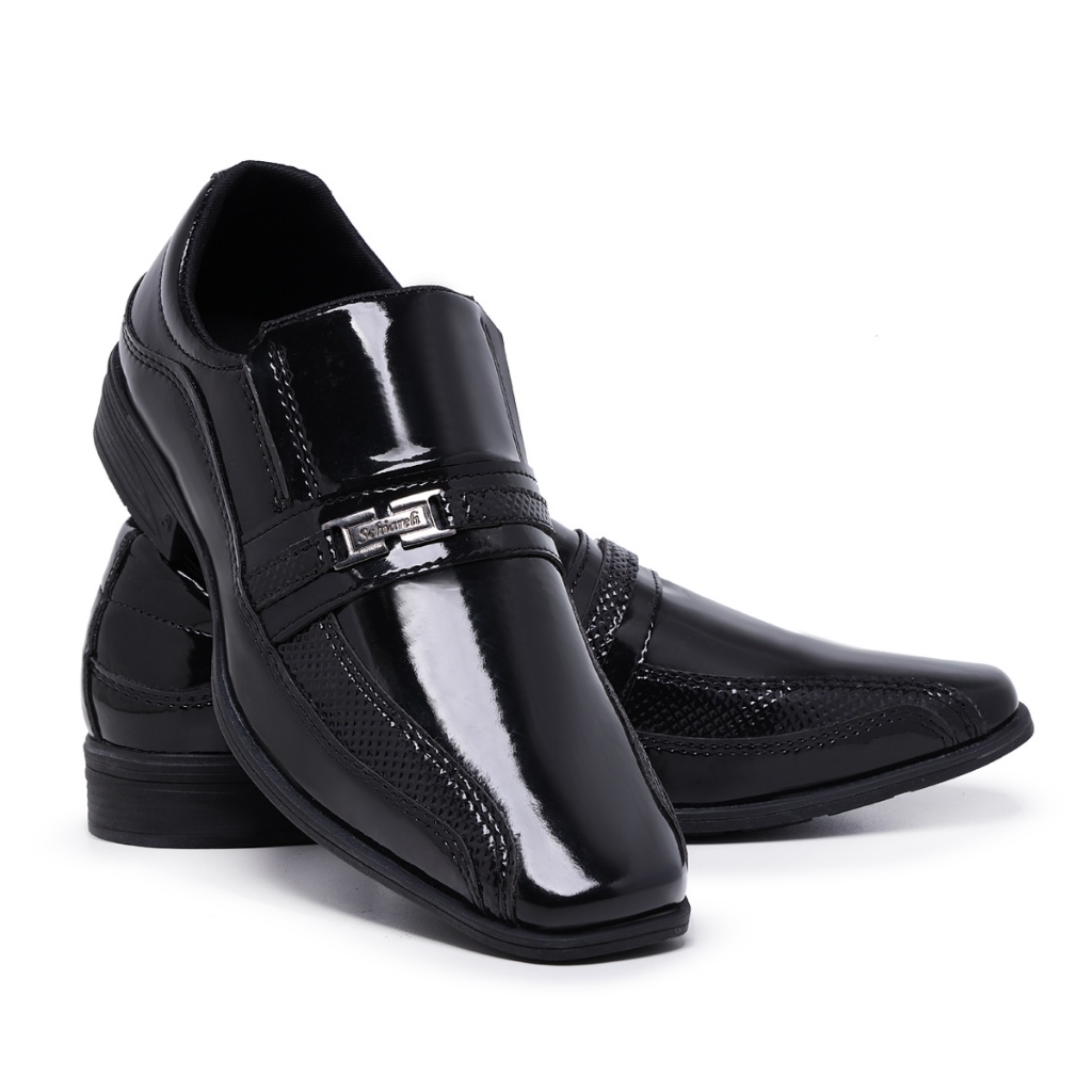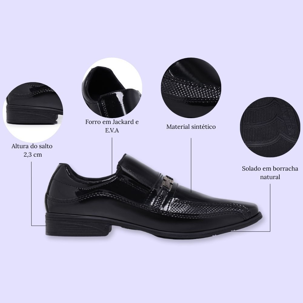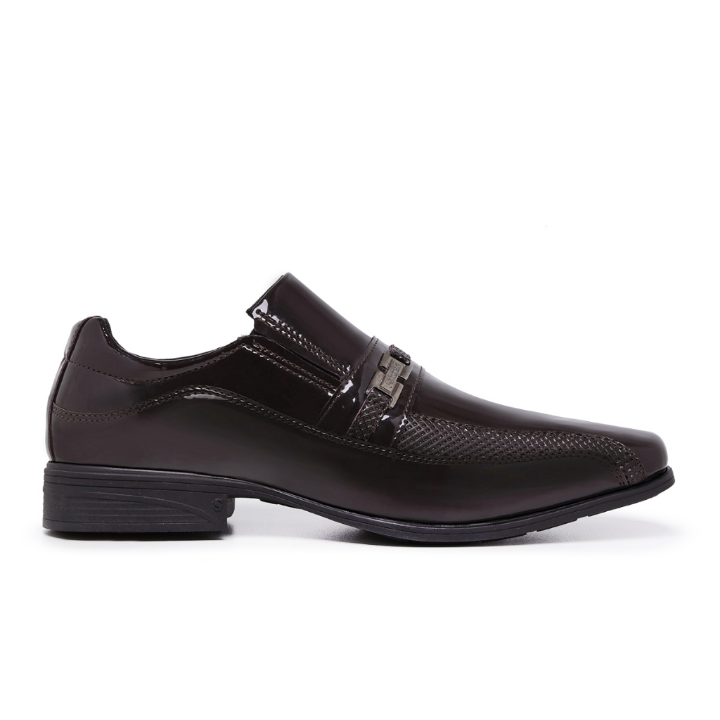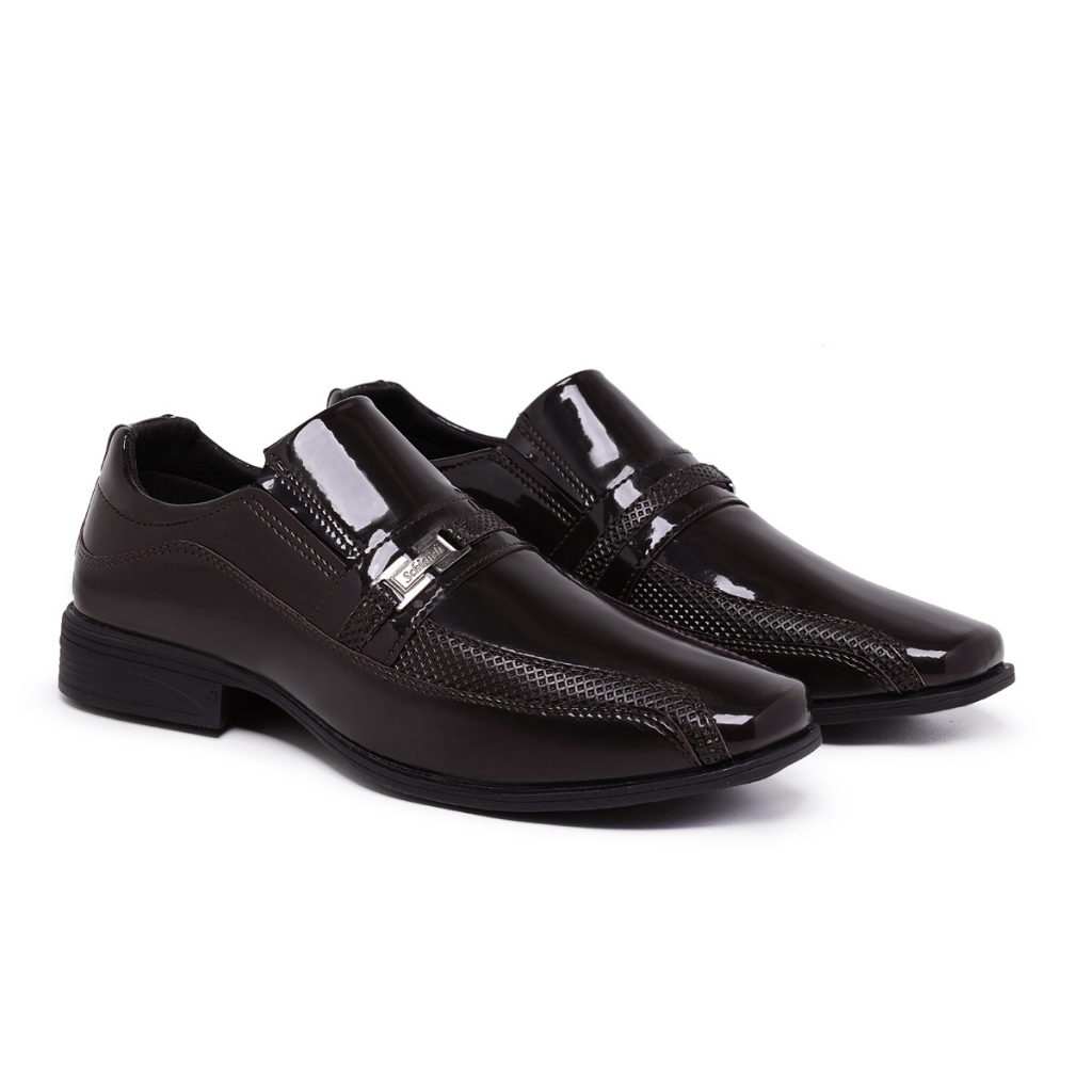 Sapato Social Masculino 836 Marrom e Preto Casamento Uniforme Com Elástico Promoção
