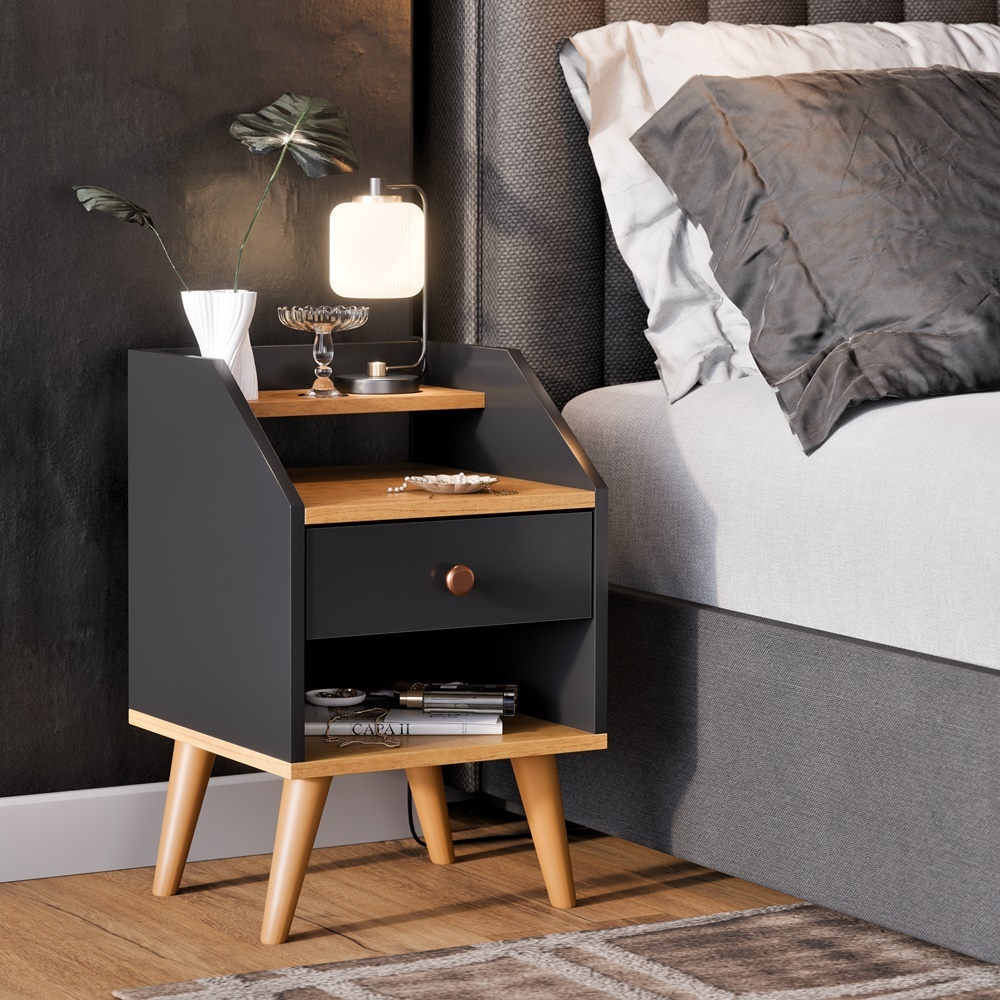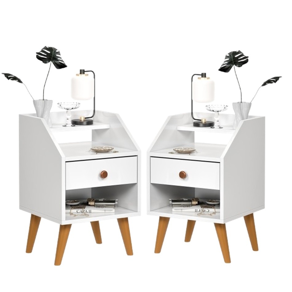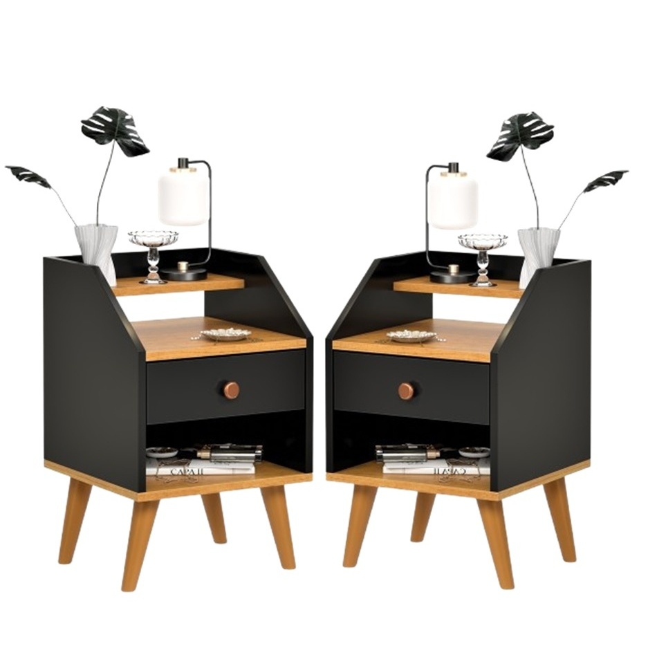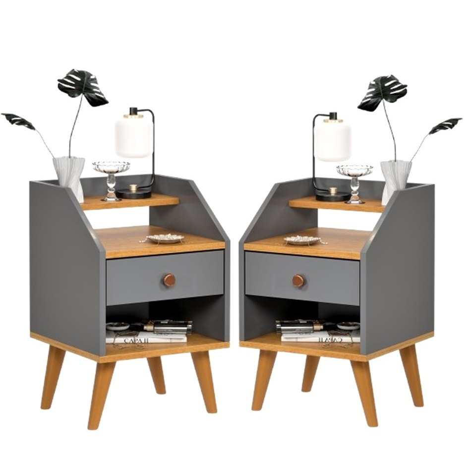 Kit com 2 Mesa de Cabeceira Retrô Com 1 Gaveta Sleep Decor - Cores Diversas