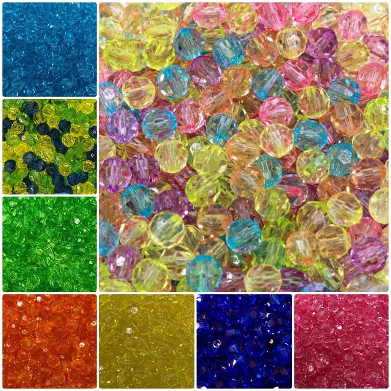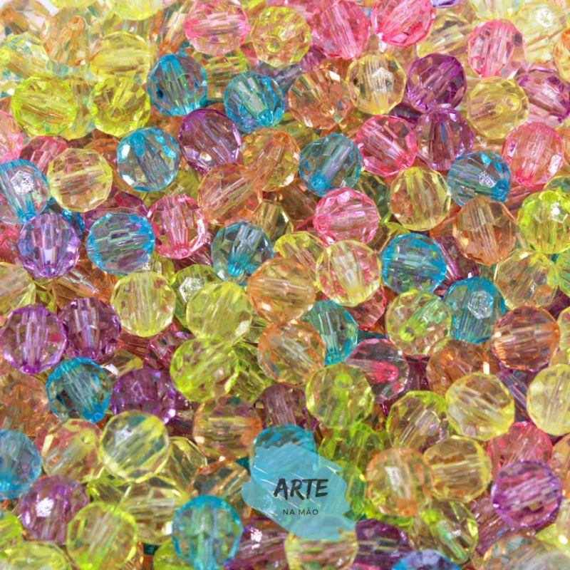 Bola Sextavada Facetada Acrílica Média 8mm - 180 Unidades ou 360 Unidades