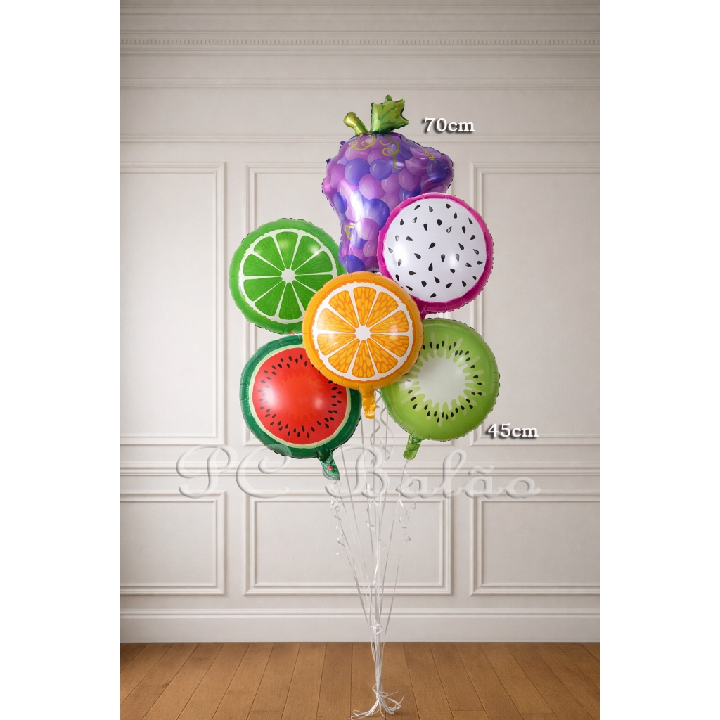 kit 6 Balão Metalizado Frutas aniversário Festa Decoração 6 Frutas 45cm + 1 Fruta GRANDE
