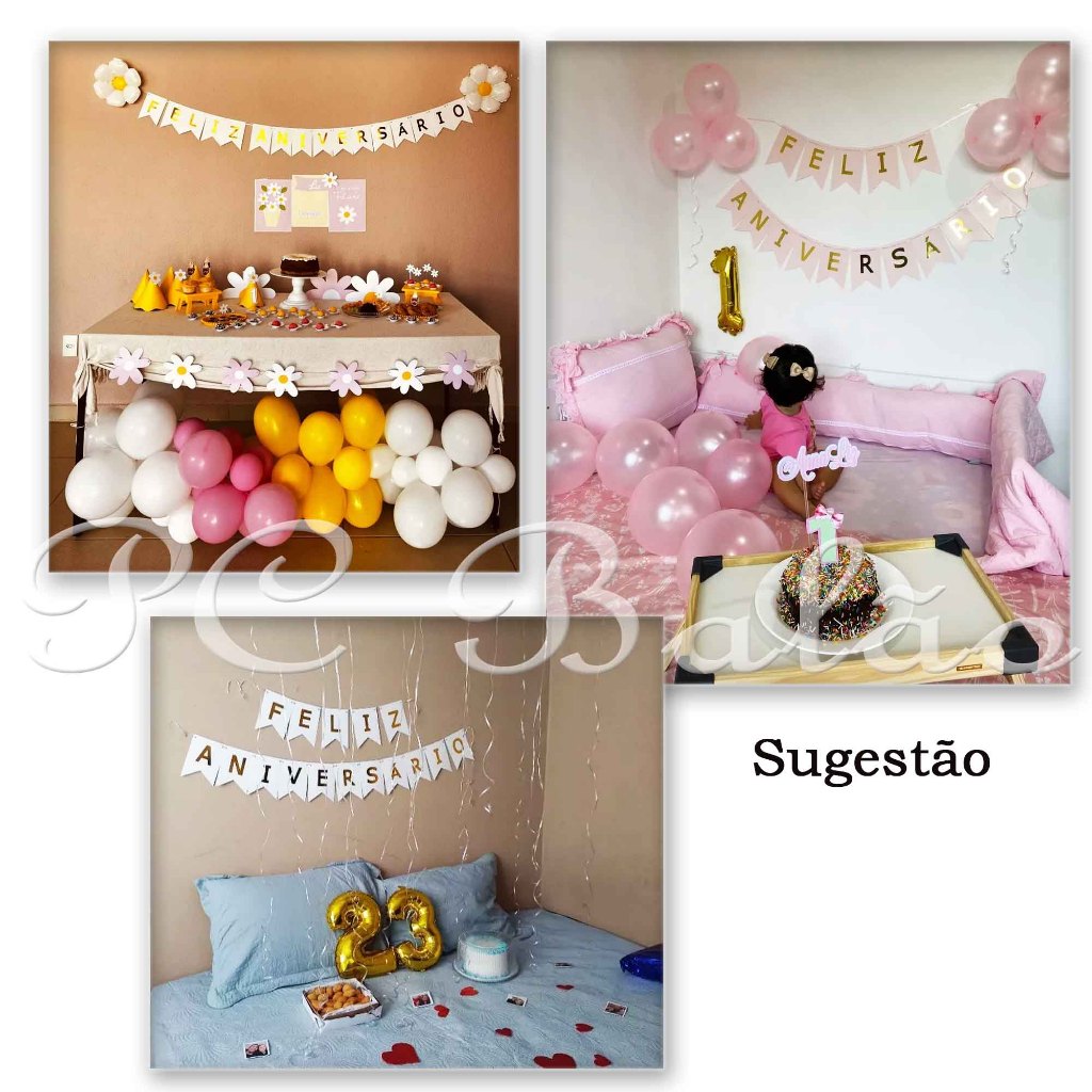 Faixa Varal De Letras Papel Feliz Aniversário Bandeirinhas Decoração De Festa