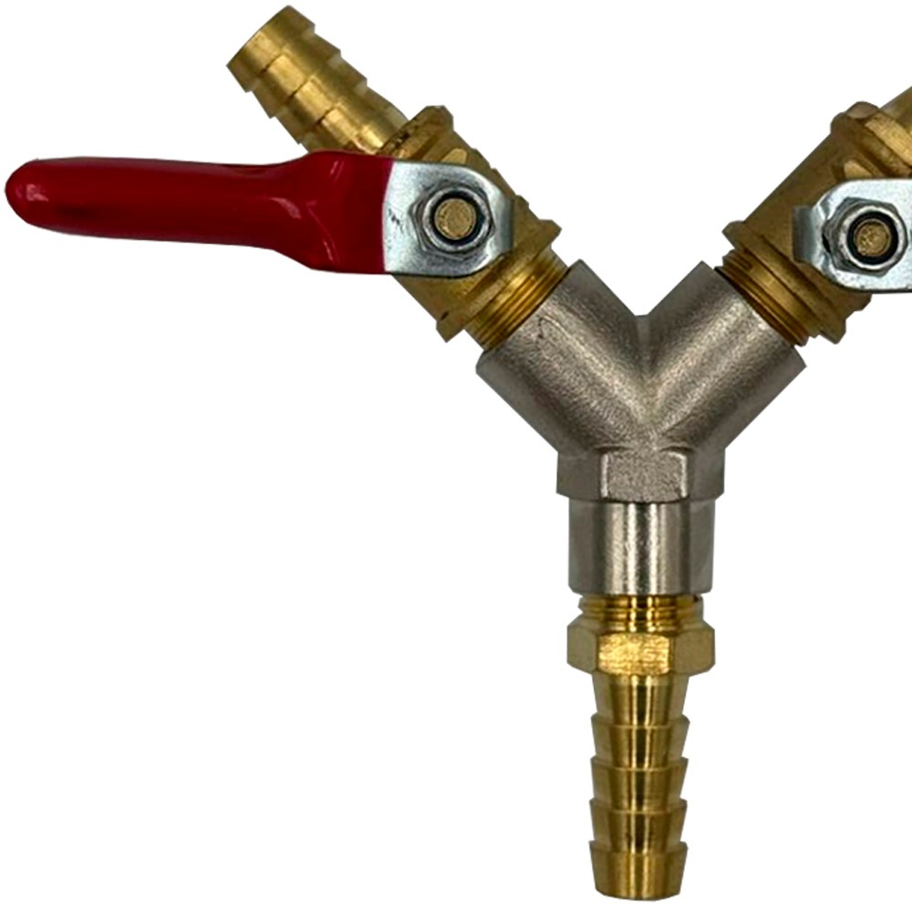 Adaptador para Gás Duplo C/ 2 Registro 3/8 Bm com Saída 3/8 Mangueira Comum