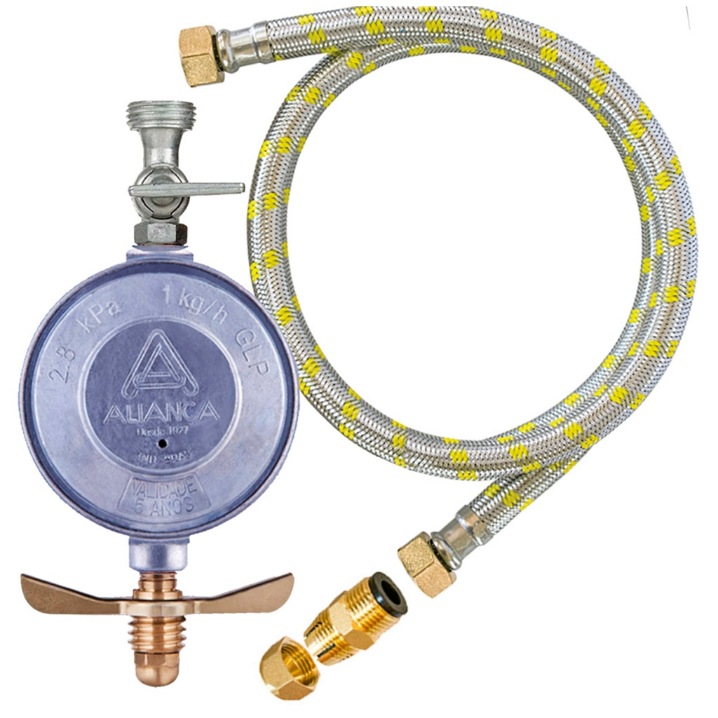 Regulador de Gás Aliança 1kg/h + Mangueira + Adaptador tipo Dako para Fogão e Cooktop
