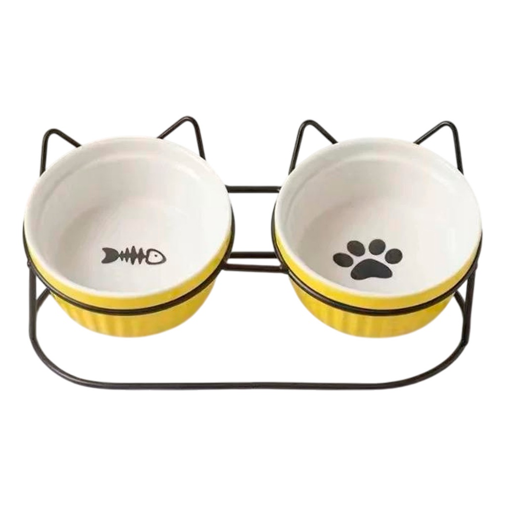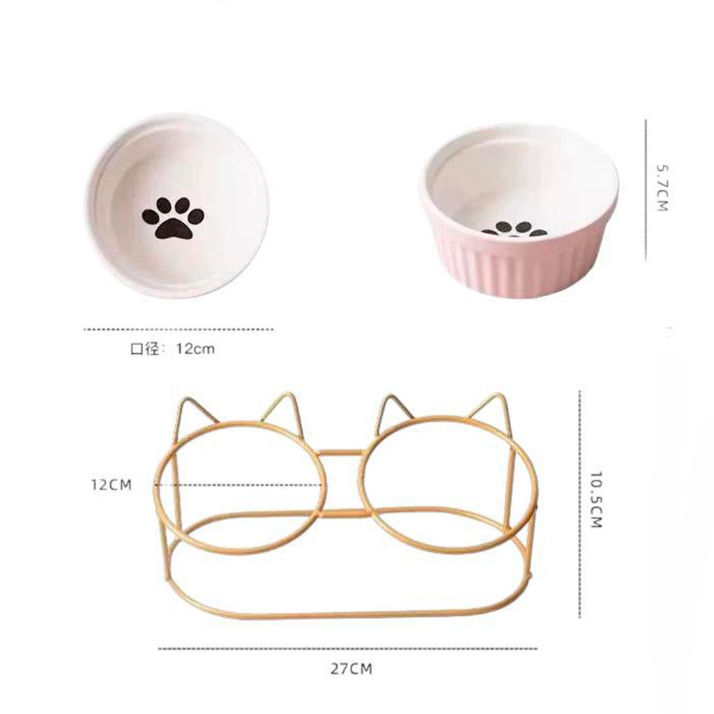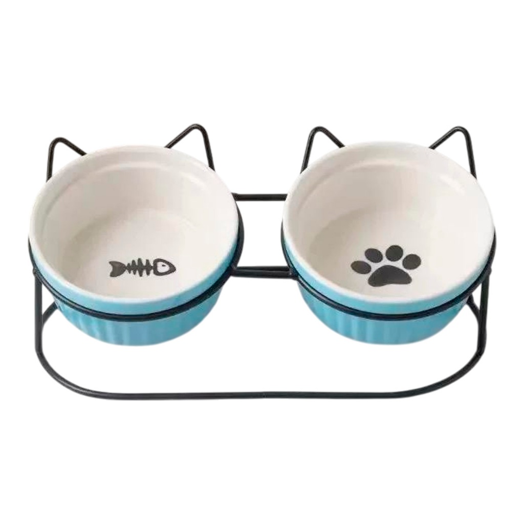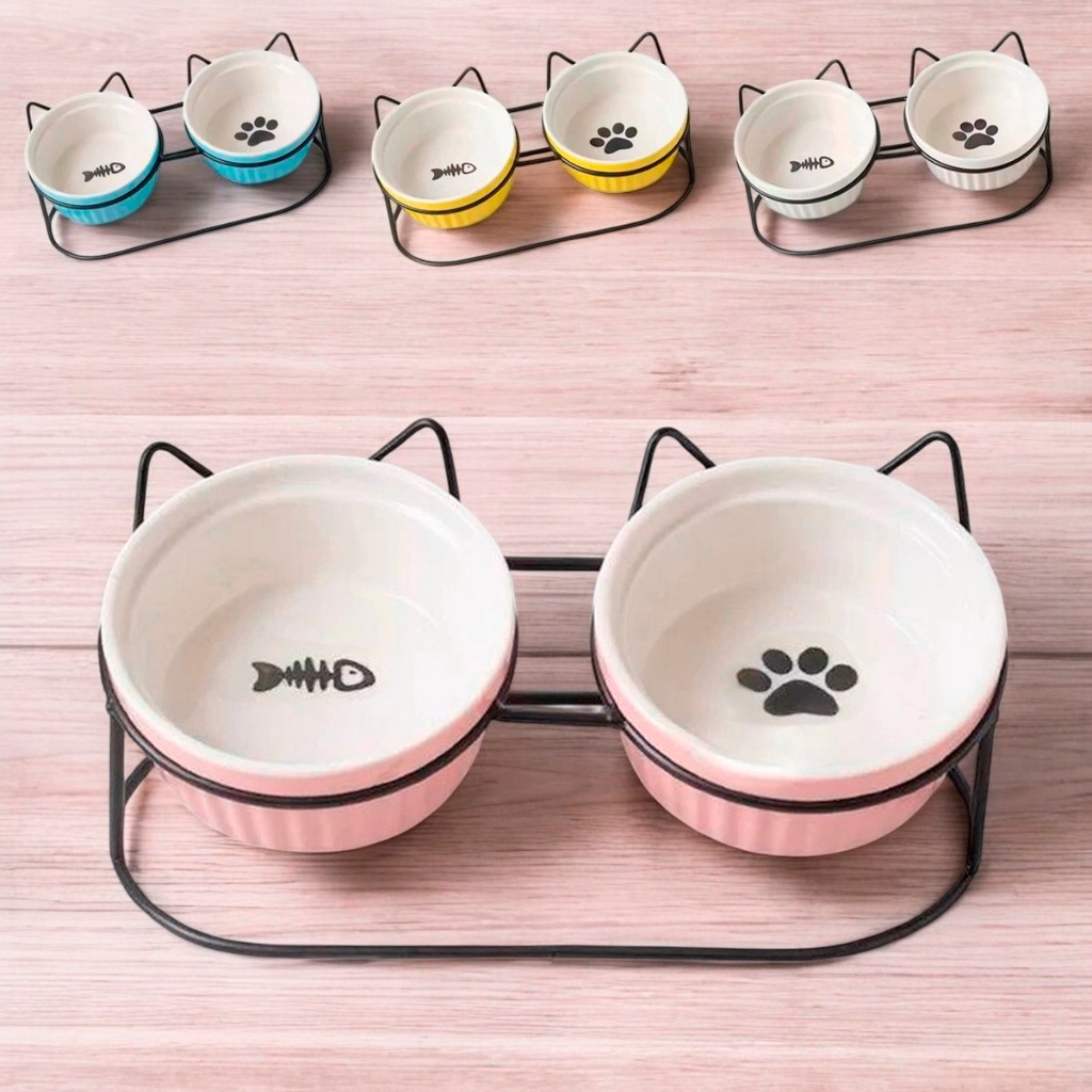 Comedouro e Bebedouro Duplo Elevado Cerâmica Gatos Pet Cão Luxo