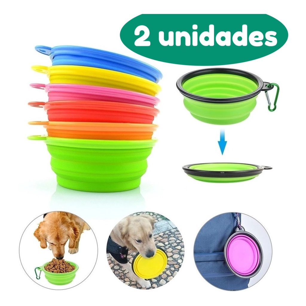 Kit Comedouro Pote Retrátil Bebedouro Portátil Pet 2 Unidades