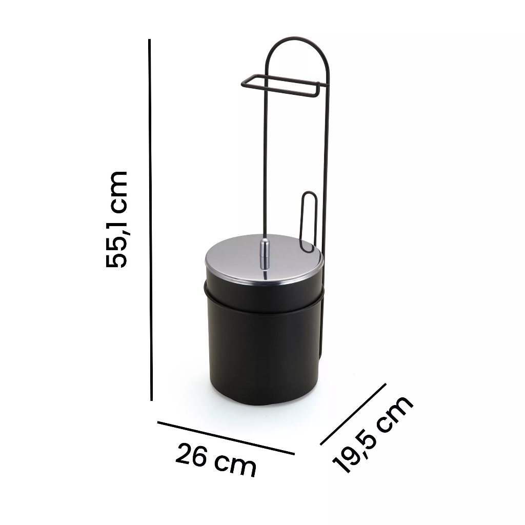 Porta Papel Higiênico + Lixeira de Chão Tampa Inox Black Luxo Banheiro Pia