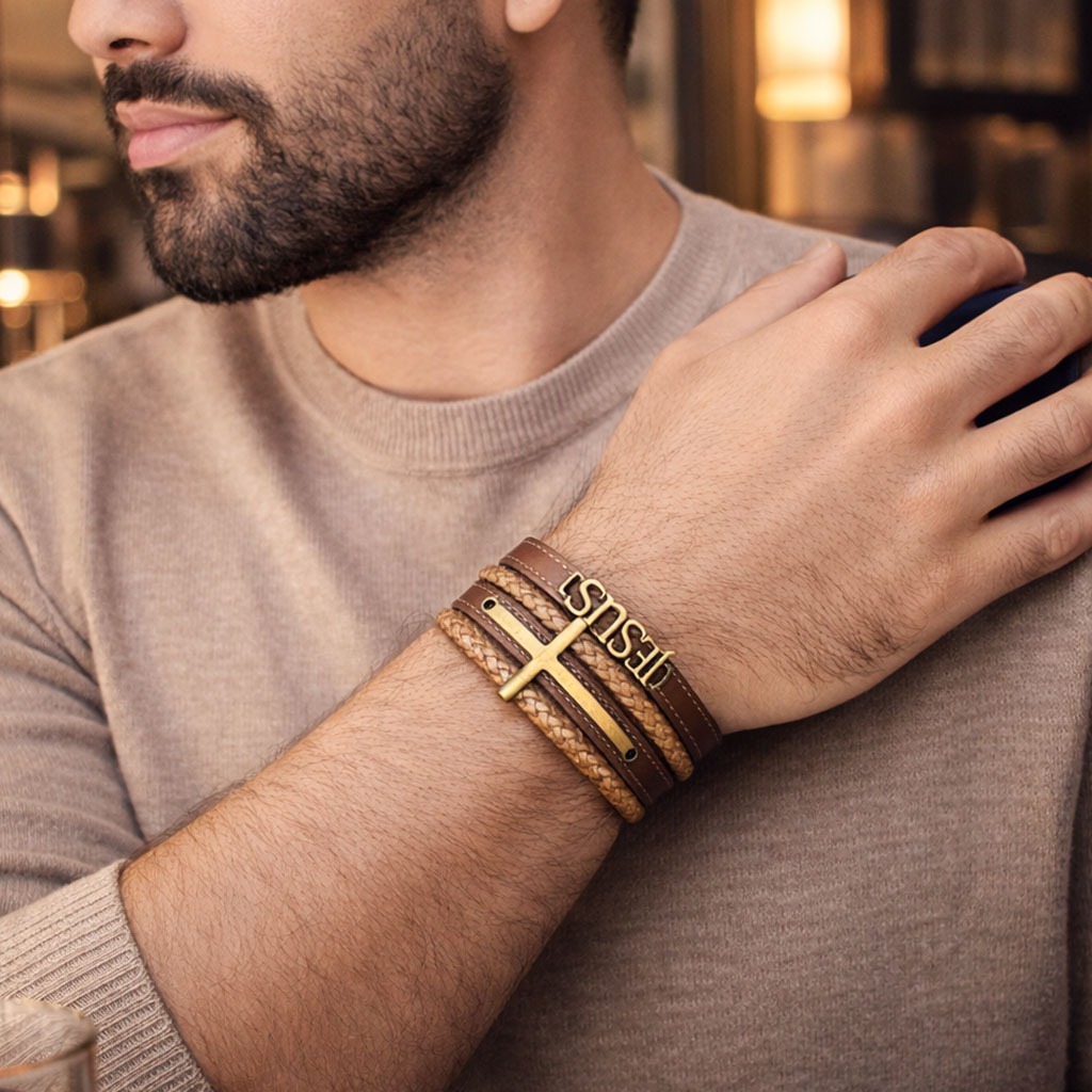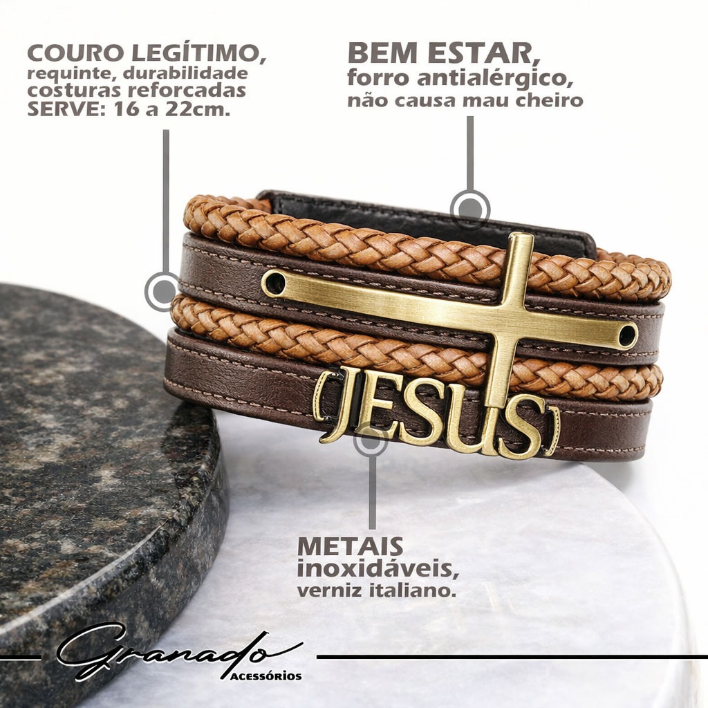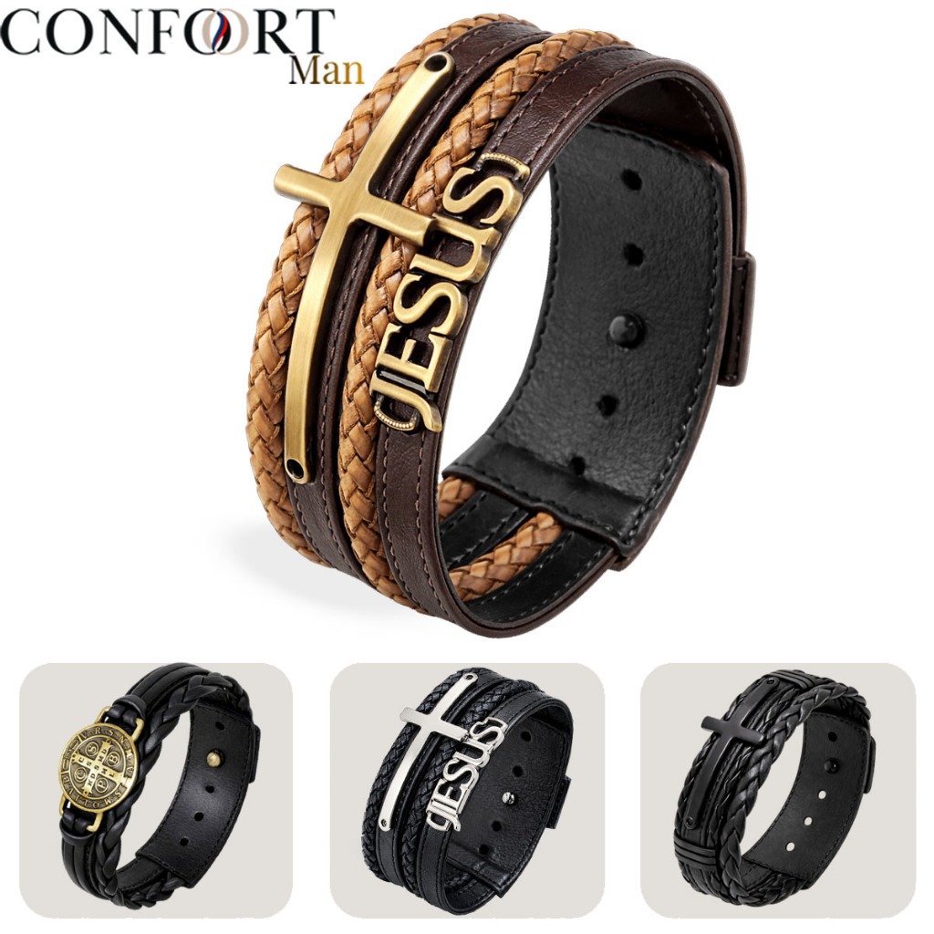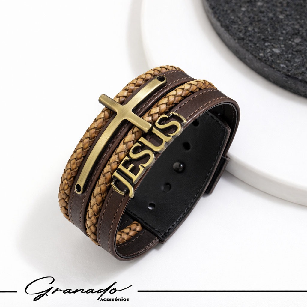 Pulseira Ajustável De Couro Masculina Jesus Cruz Proteção Gratidão - 10 Modelos Incríveis