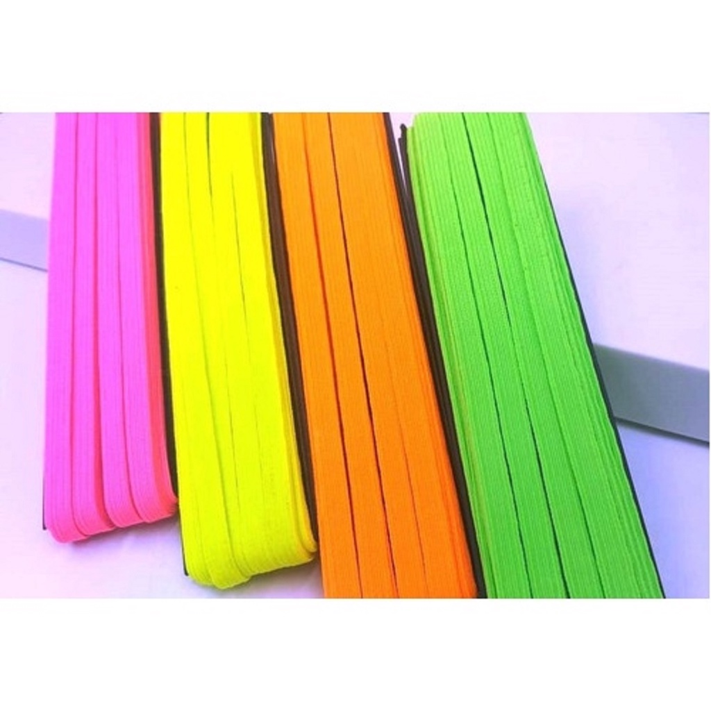 8 metros de Elástico 7 mm Flúor Cítrico Chato pode ser 2 metros de cada cor