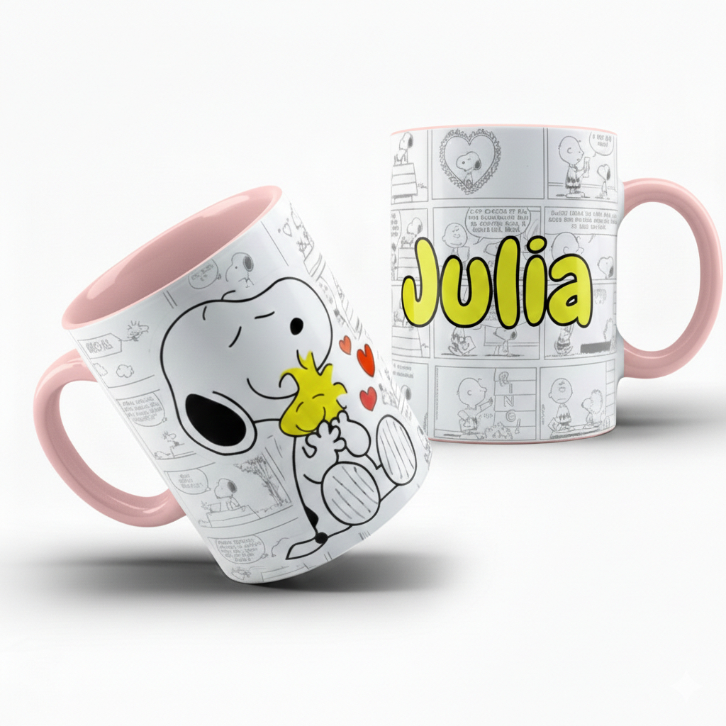 Caneca Personalizada Snoopy com Nome – Presente Criativo de Cerâmica com Tema Snoopy – Ideal para Café, Chá e Fãs