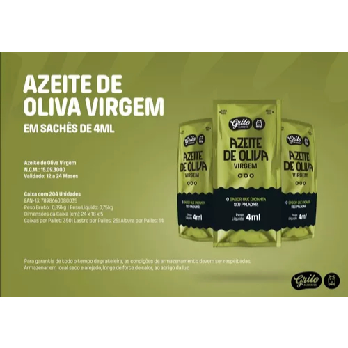 Azeite De Oliva Virgem Em Sachês 4 Ml Grilo 25-30-40-50-100