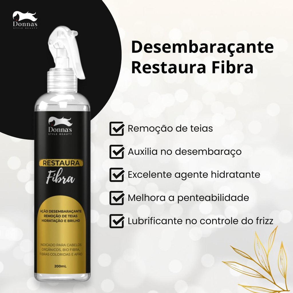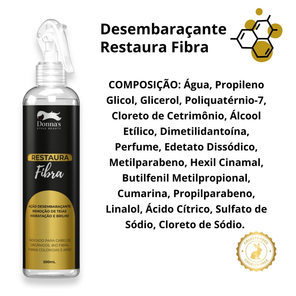 Desembaraçante Restaura Fibra Para Cabelos Orgânicos Bio Fibra Apliques Black e Cachos 200ml Donna's