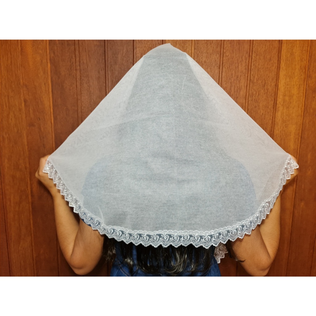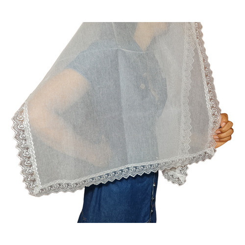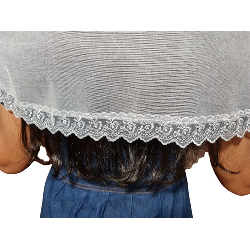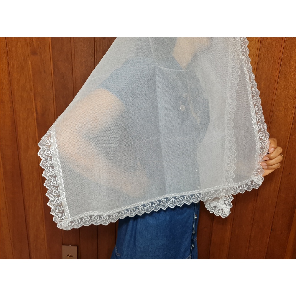 Véu Ccb Renda Guipir Bordada Delicada Redondo ou Quadrado Ncrl02