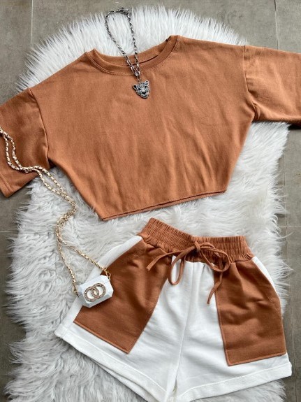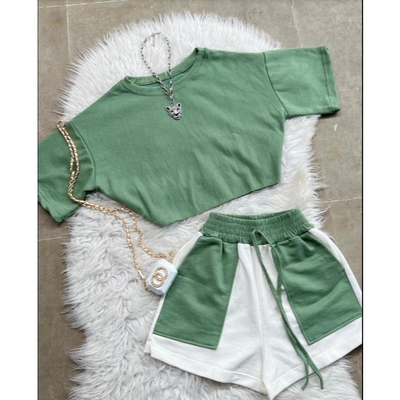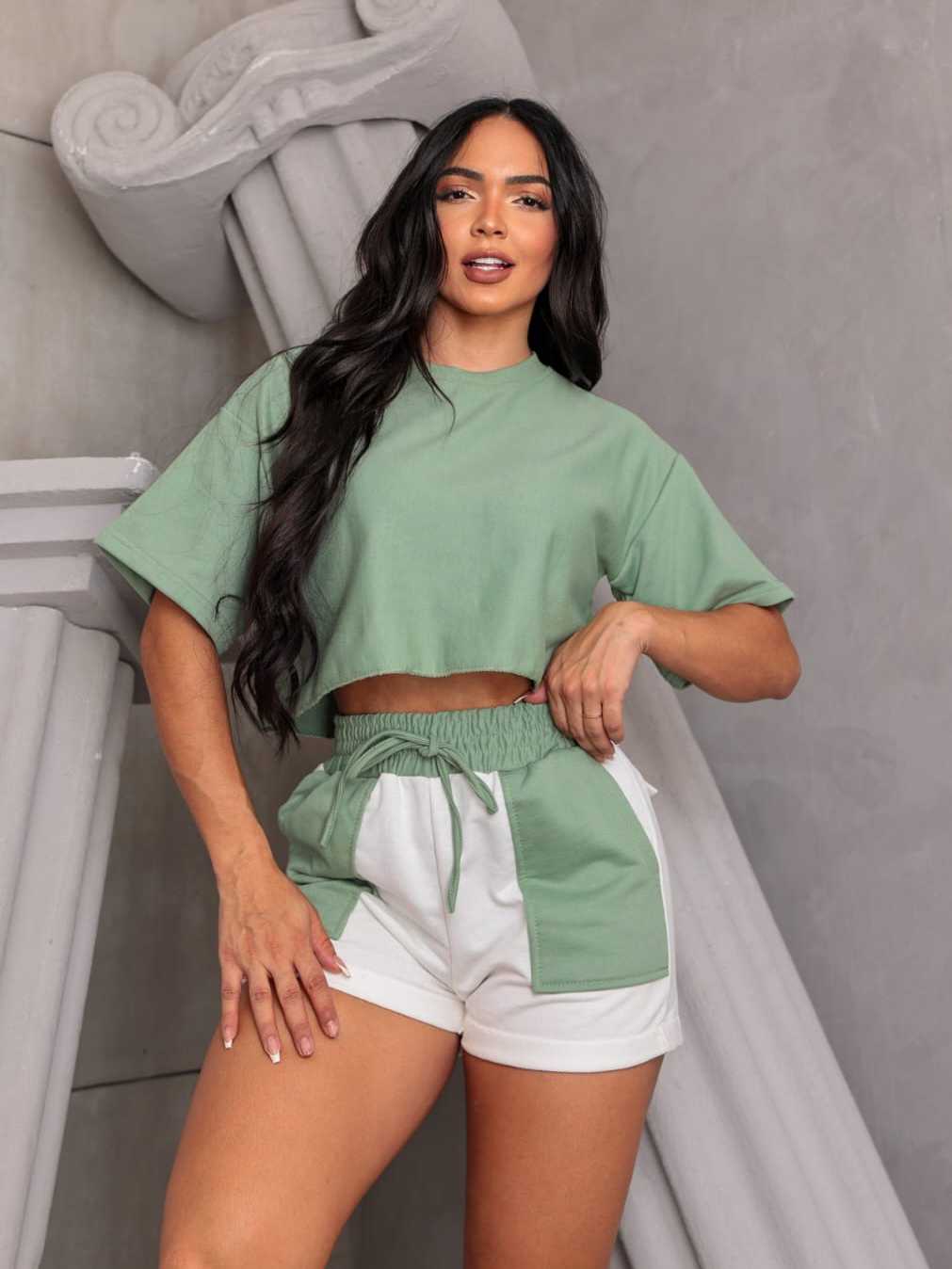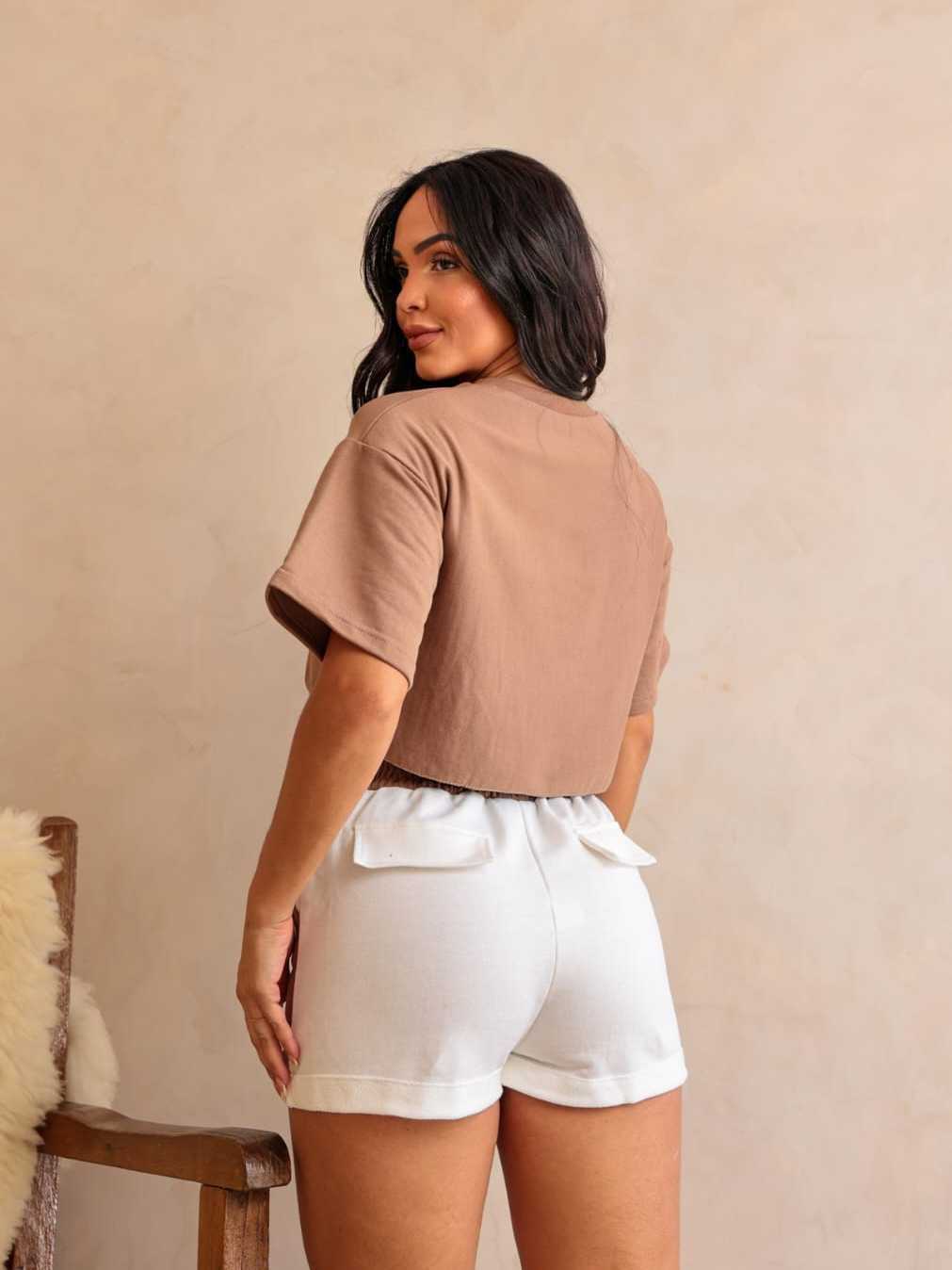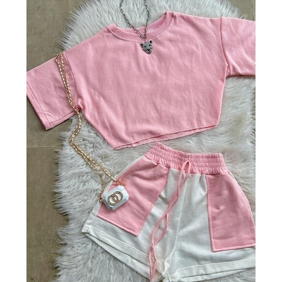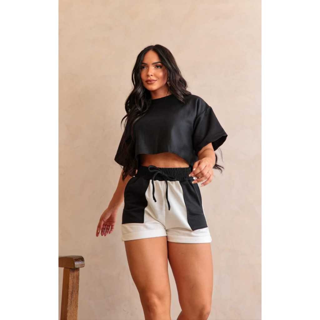 Conjunto Alfaiataria Feminino Moletinho Short e Blusinha manga Curta